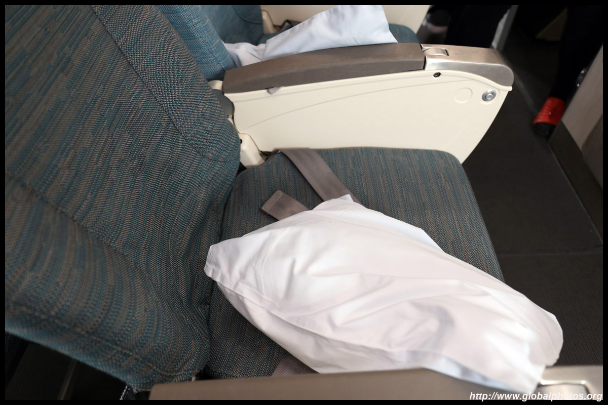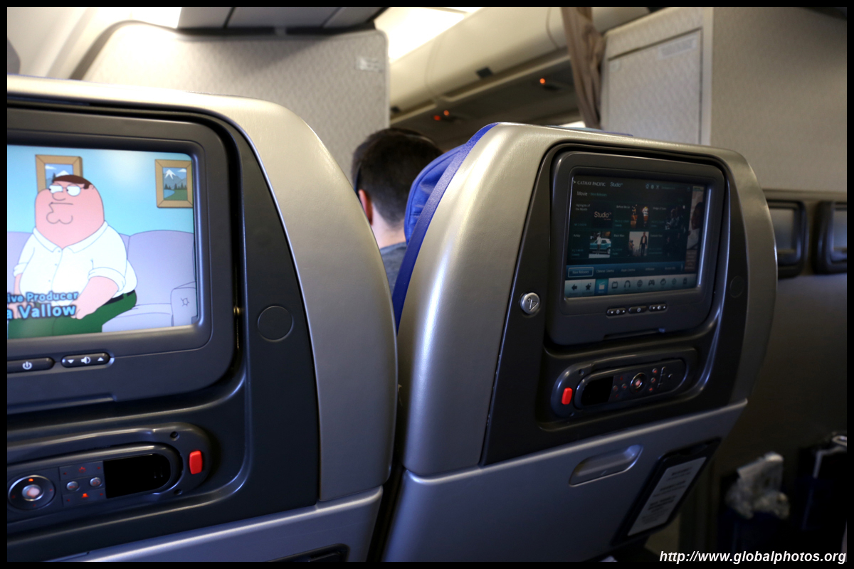 Today's aircraft is much nicer with a long-haul configuration as the flight would continue to San Francisco after Hong Kong. The seats were more comfortable and the IFE much more usable. Disposable headphones were already placed at each seat this time.