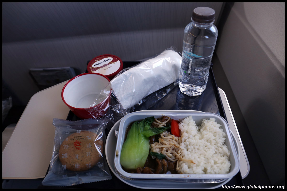Lunch is served. The beef rice was a little spicy since too much pepper was used. But I was surprised at the premium ice-cream. For a 2-hour flight, I was satisfied with the hot meal.