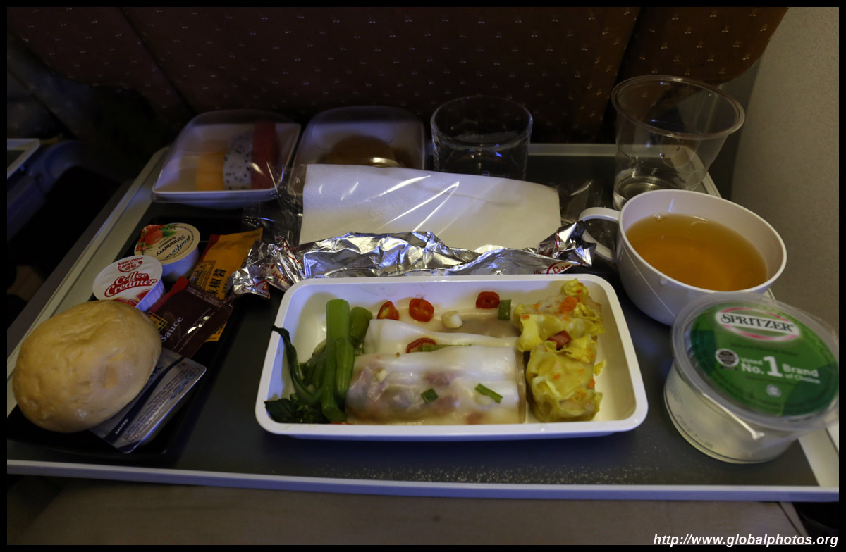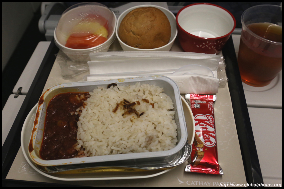 Food is never a highlight in Economy Class. This includes premium carriers such as Cathay. Where are the vegetables in my dinner?