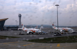 We made a long approach to land and looped back at Indonesia to come in from the south. I captured a few shots of the airport but the skyline was a bit far to see clearly.