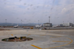 Plane spotting is difficult here since the waiting lounges are enclosed past the security X-rays. It took some time to find a few windows in the public area.