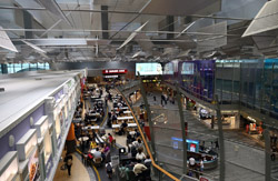 Dragonair's check-in counters are at one end of the terminal. There were several tour groups gathering, but no line for the check-in agent. My luggage was tagged and boarding pass printed efficiently, and the agent asked me to wait for the results as the bag went in for a scan. Very soon, I was done and ready to explore the massive terminal.