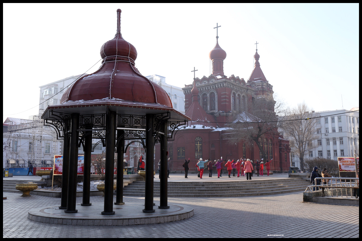 The Russians were once here to build a railroad from Vladivostok, and some of their architectural legacy remains. Kudos to those women who can still do their morning exercises outside.