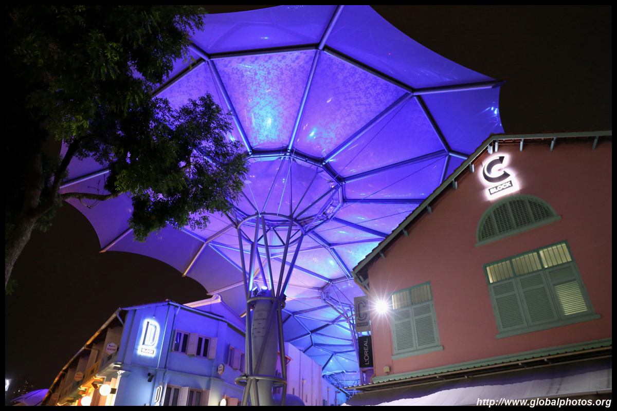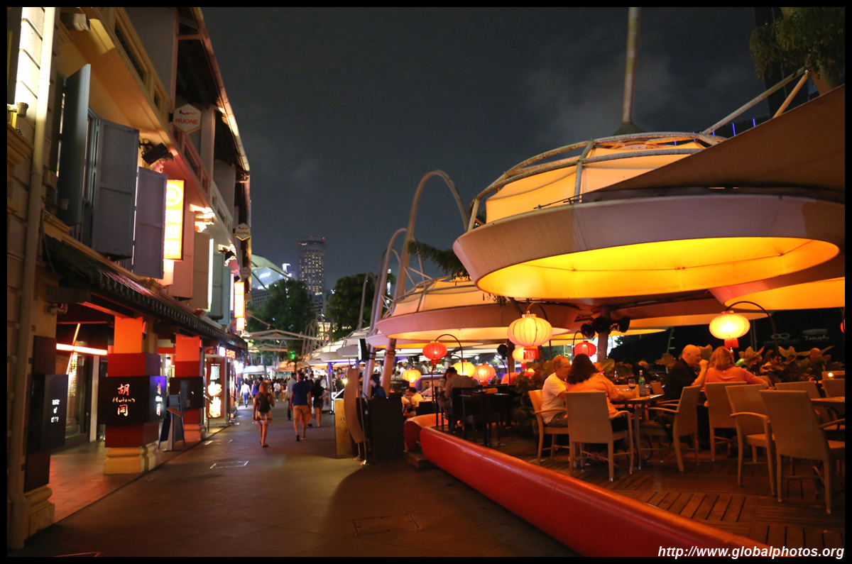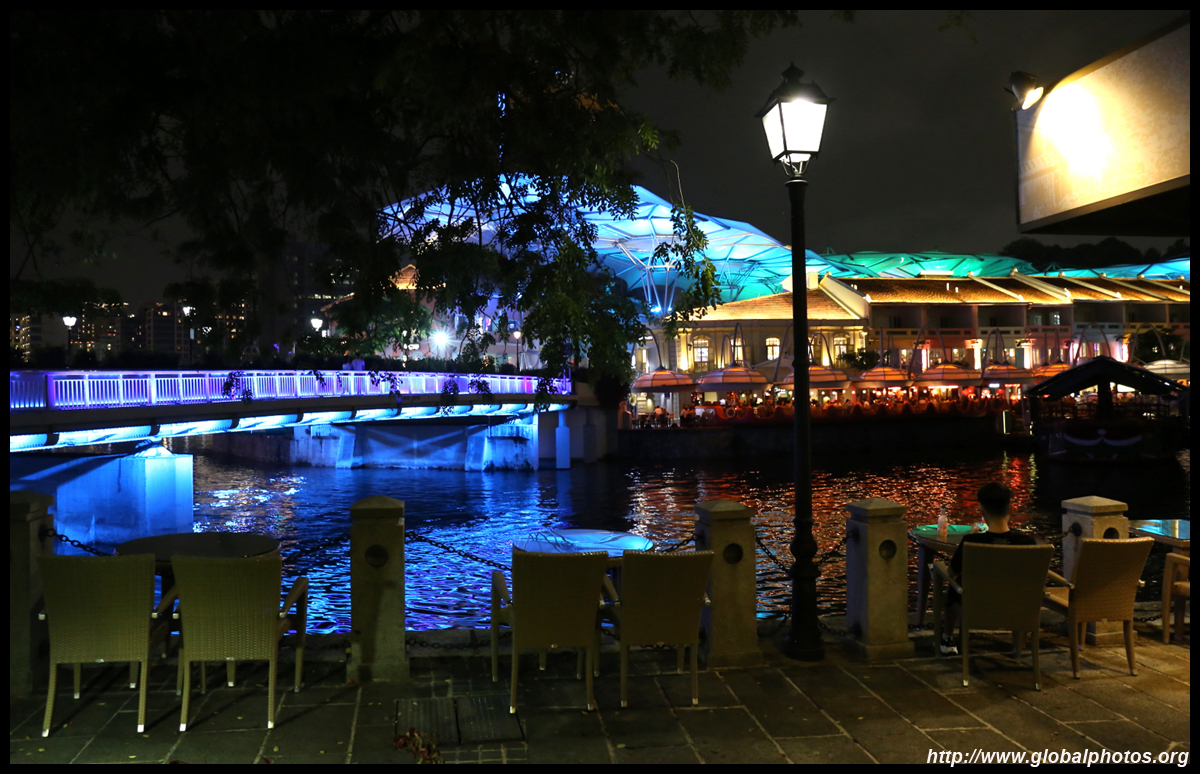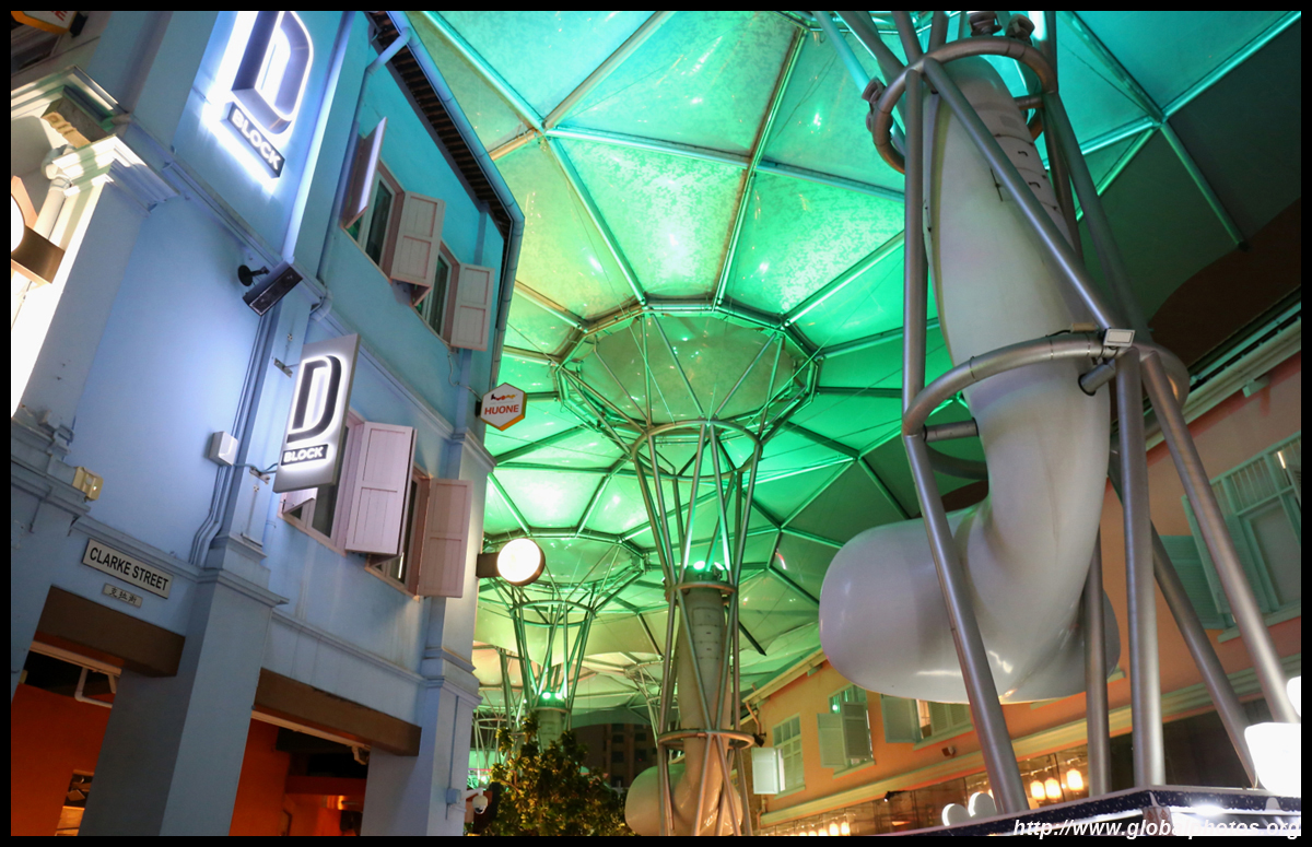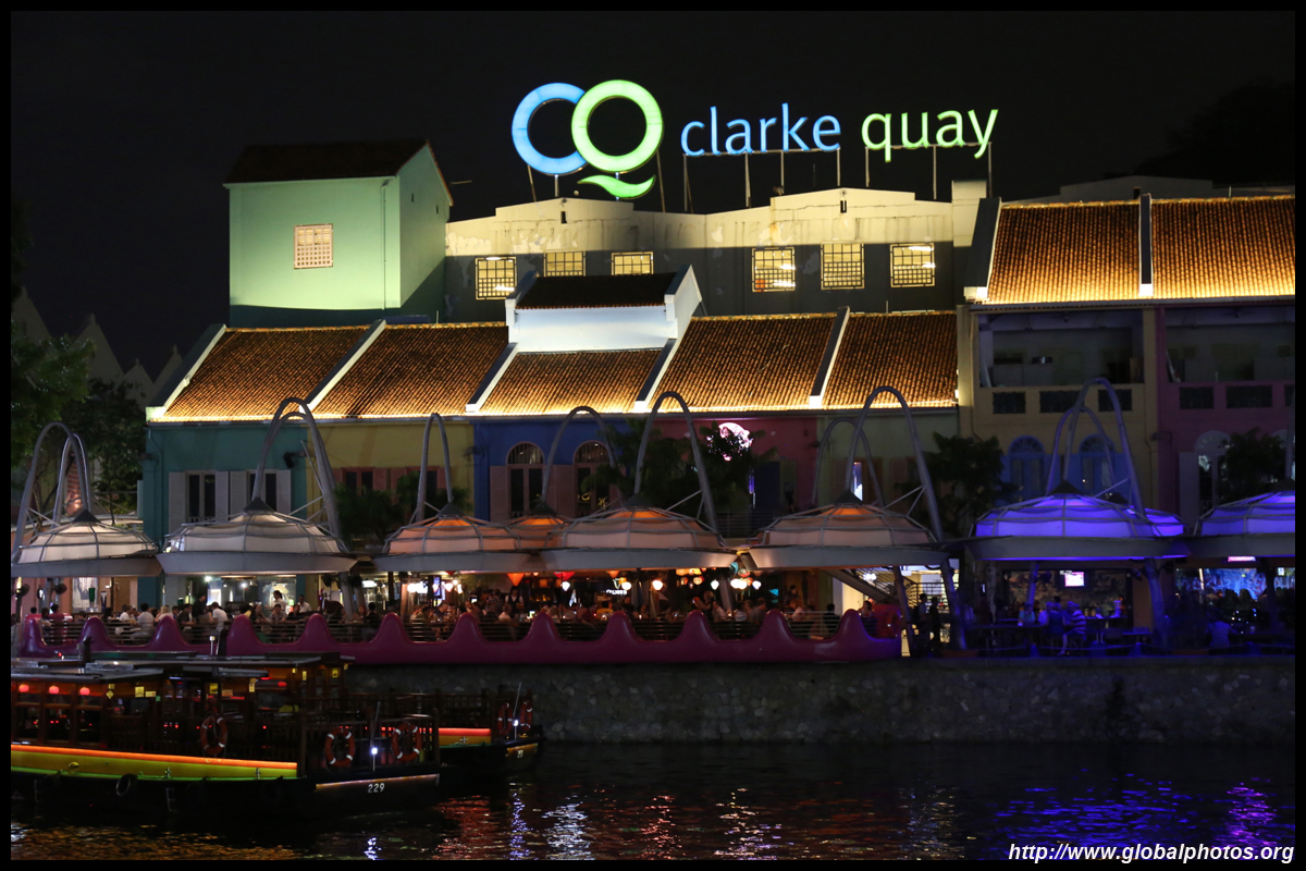 Clarke Quay's dining areas are wrapped under interesting canopies suspended above the river.
