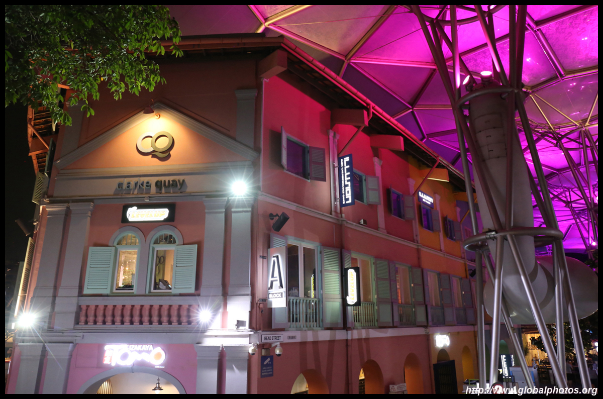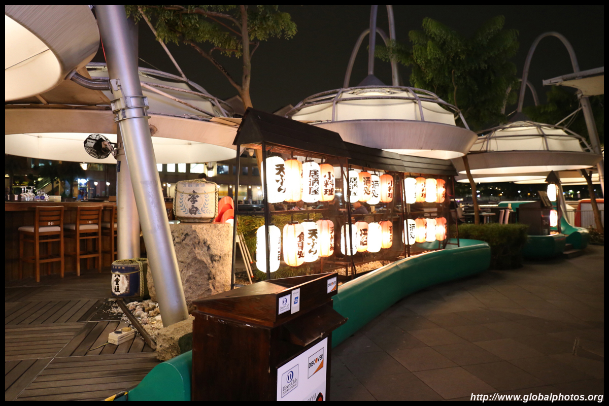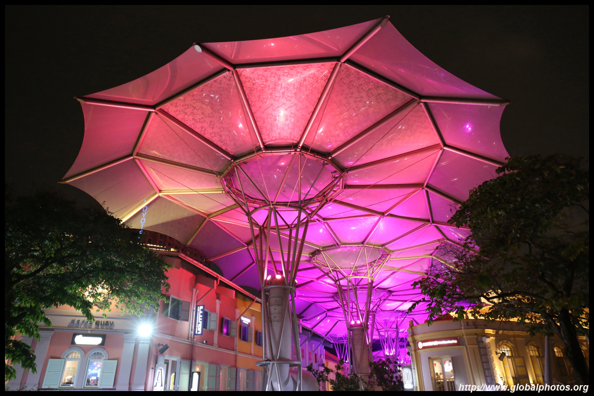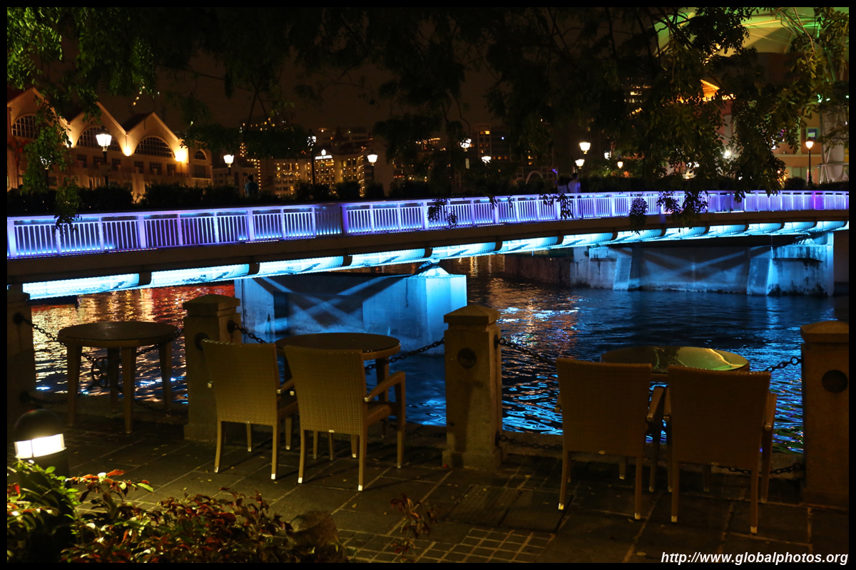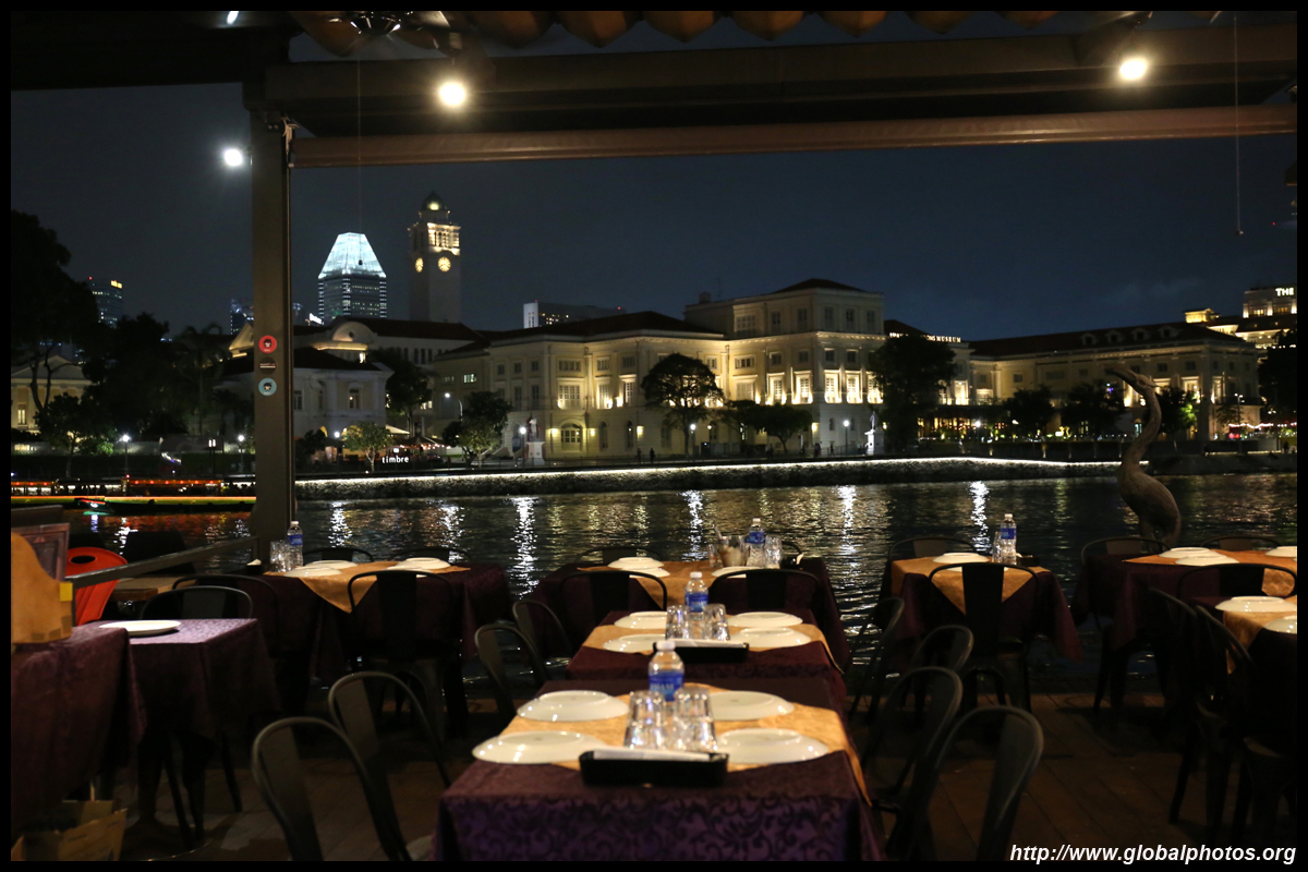 Clarke Quay's dining areas are wrapped under interesting canopies suspended above the river.