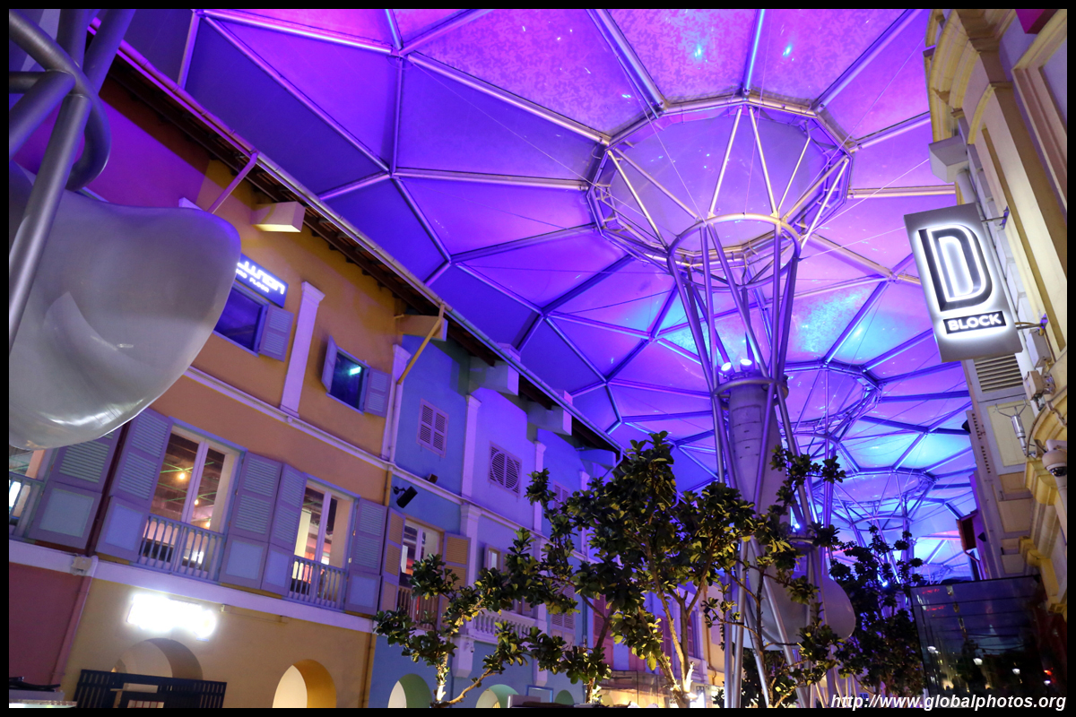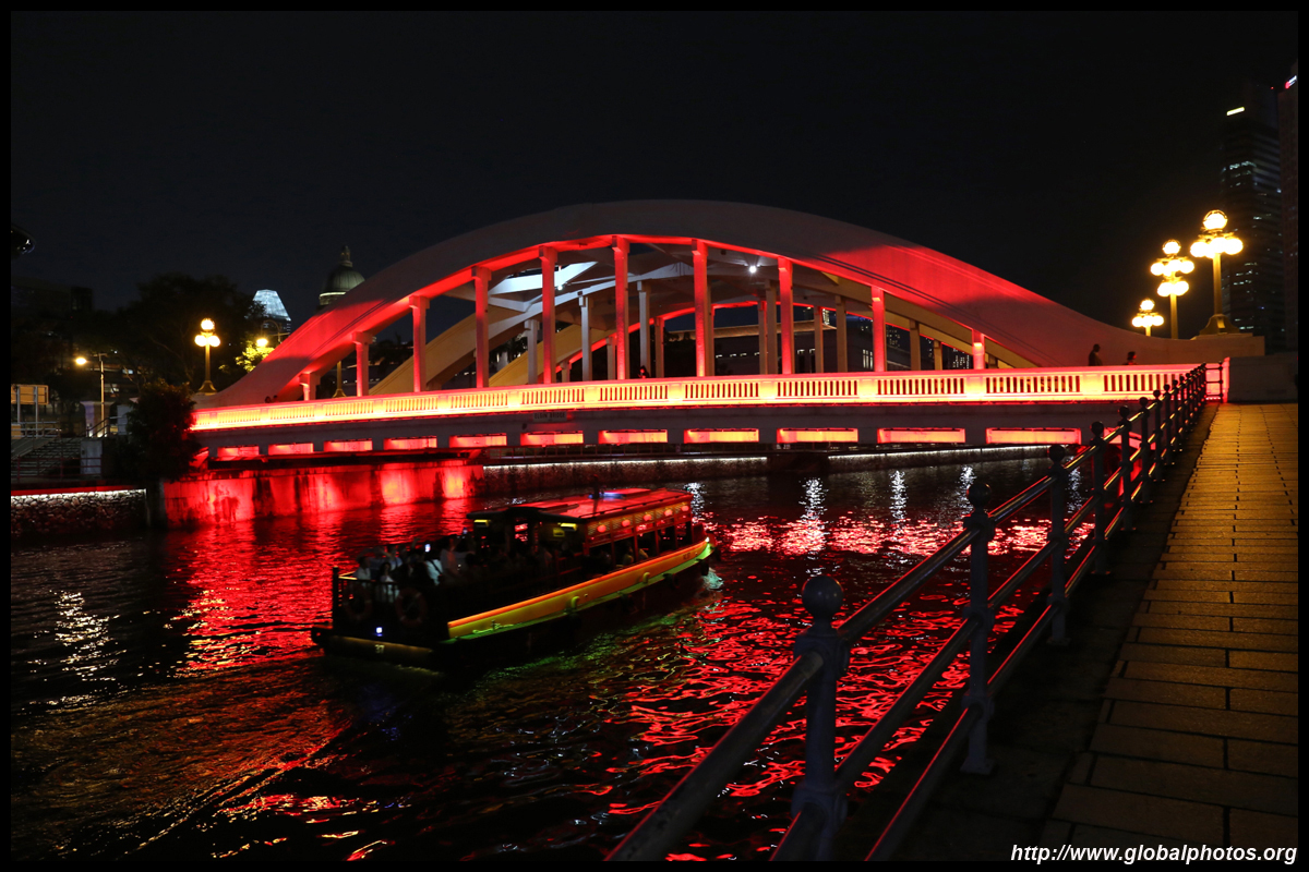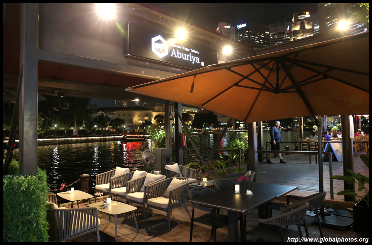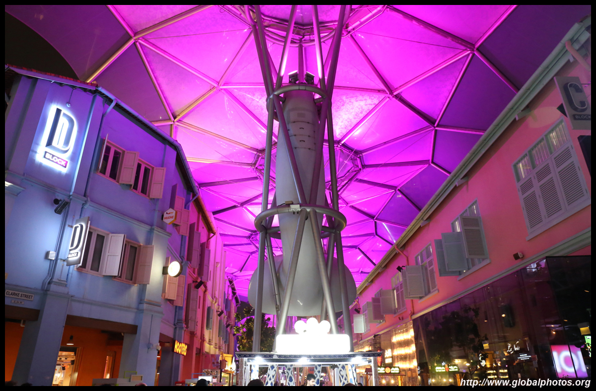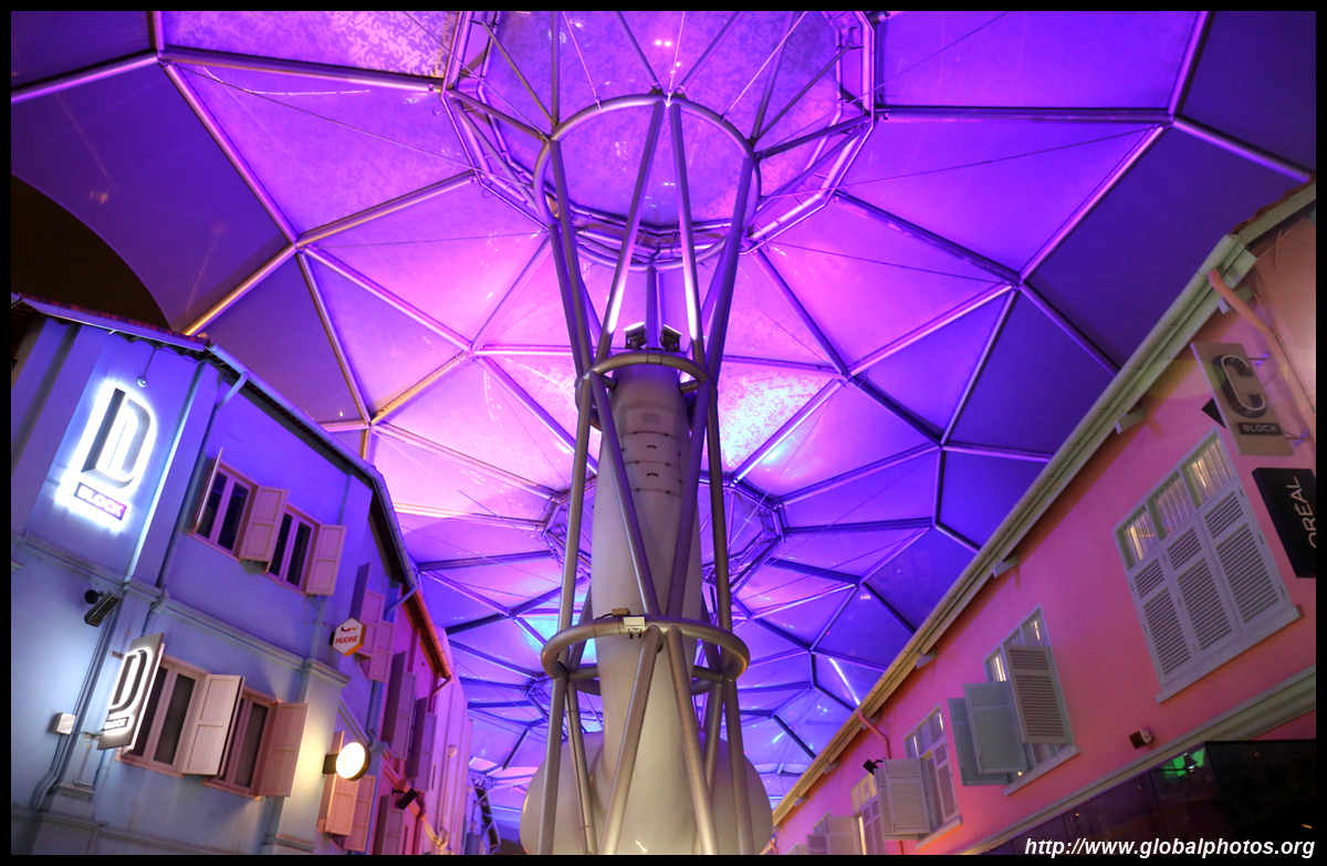 Clarke Quay's dining areas are wrapped under interesting canopies suspended above the river.