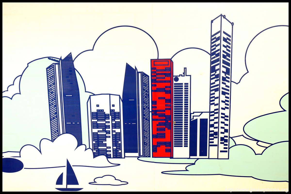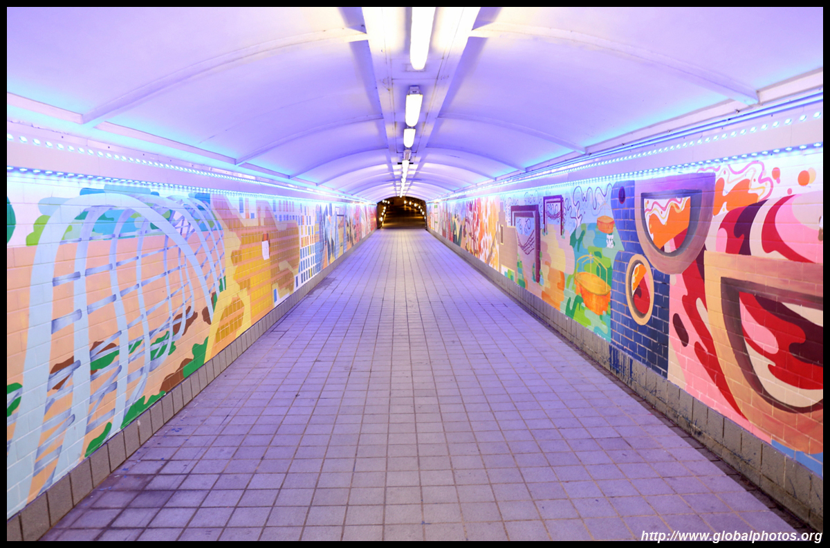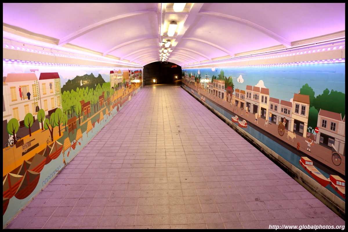 Art-covered pedestrian tunnels make walking seemless along the river.