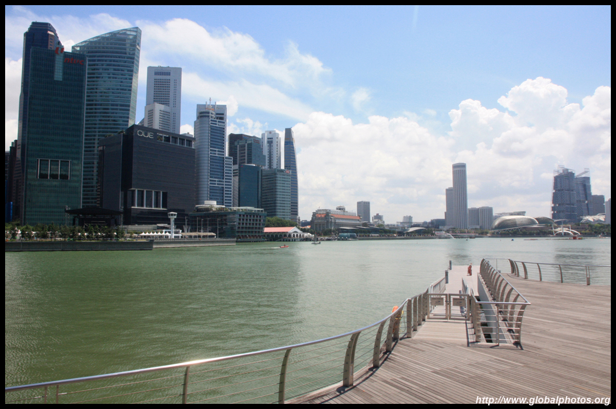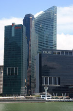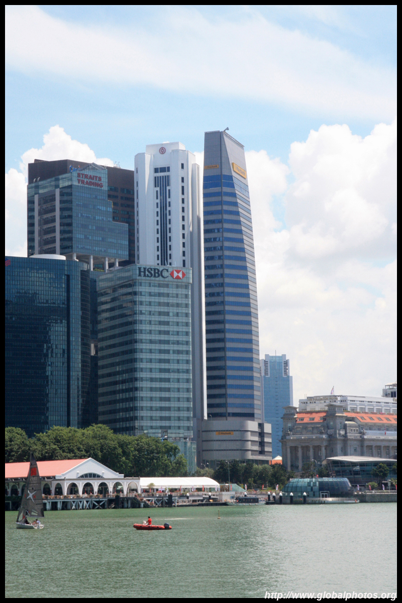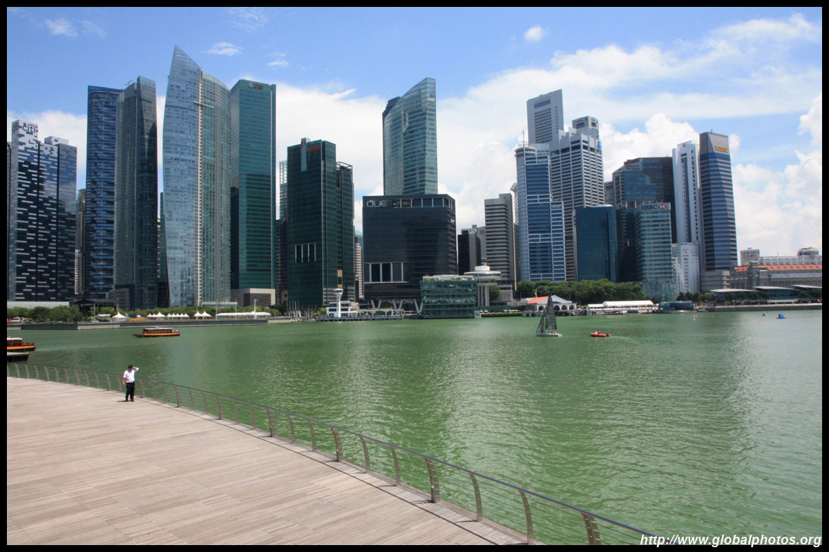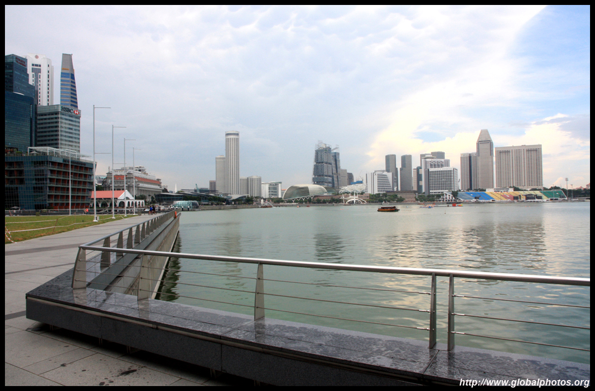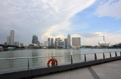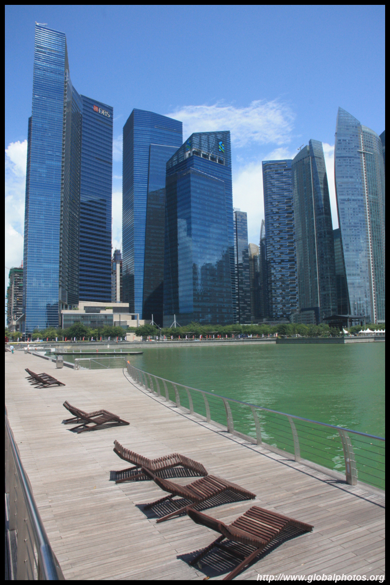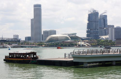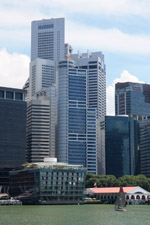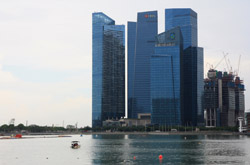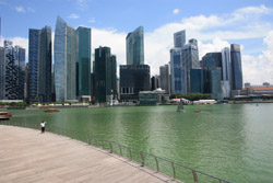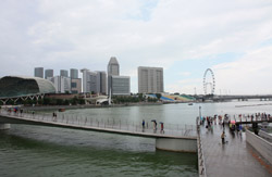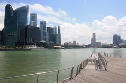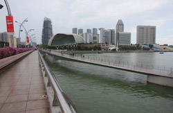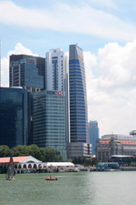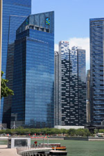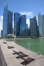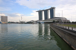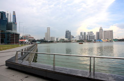 Marina Bay is a reclaimed extension of the central business district. The harbourfront area has a park and promenade with views of the Sands casino complex and Suntec City further afield.