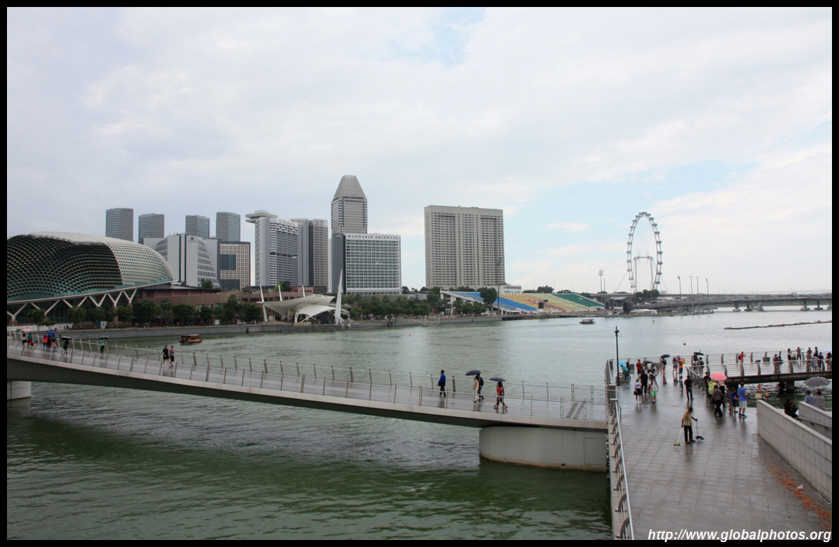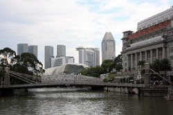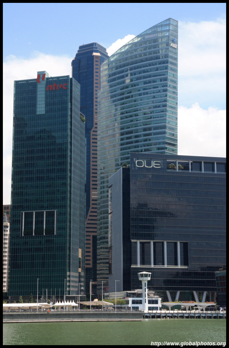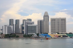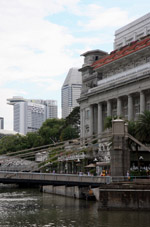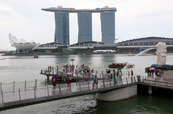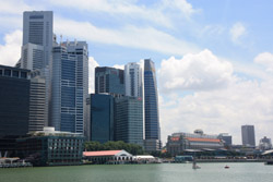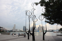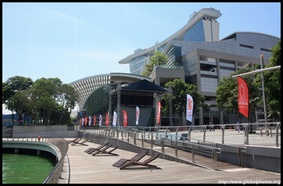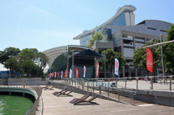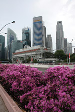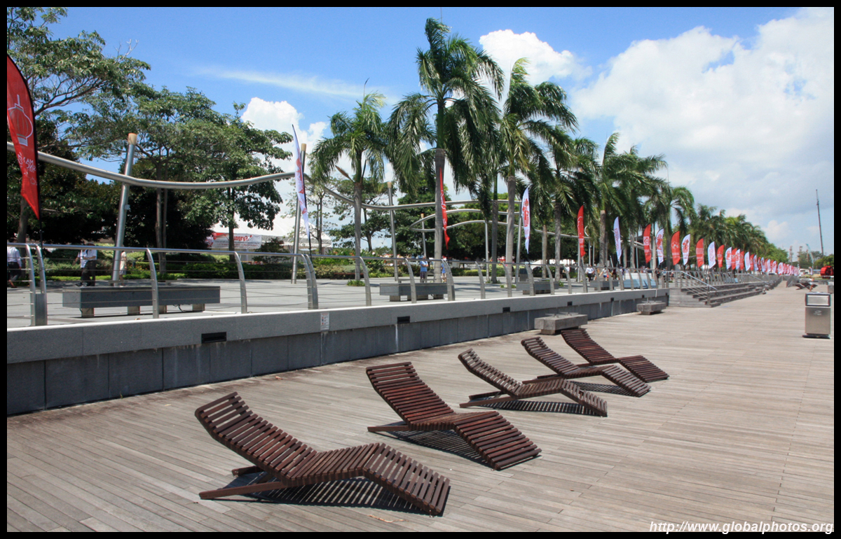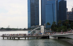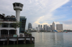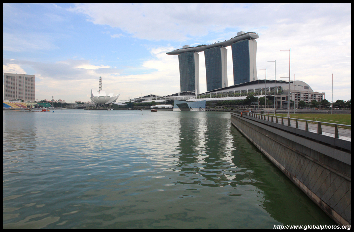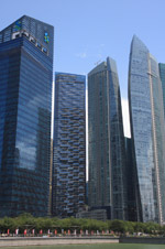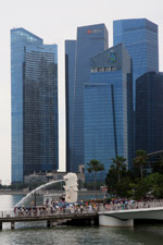 Marina Bay is a reclaimed extension of the central business district. The harbourfront area has a park and promenade with views of the Sands casino complex and Suntec City further afield.