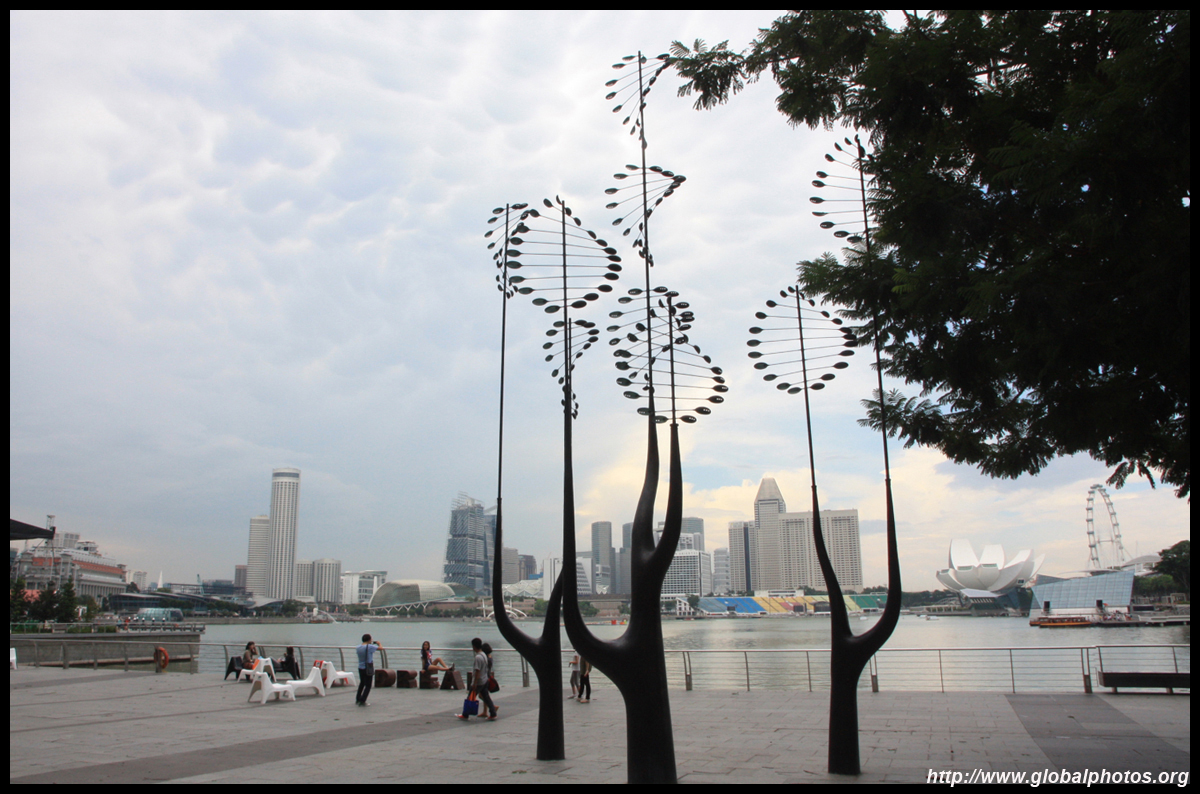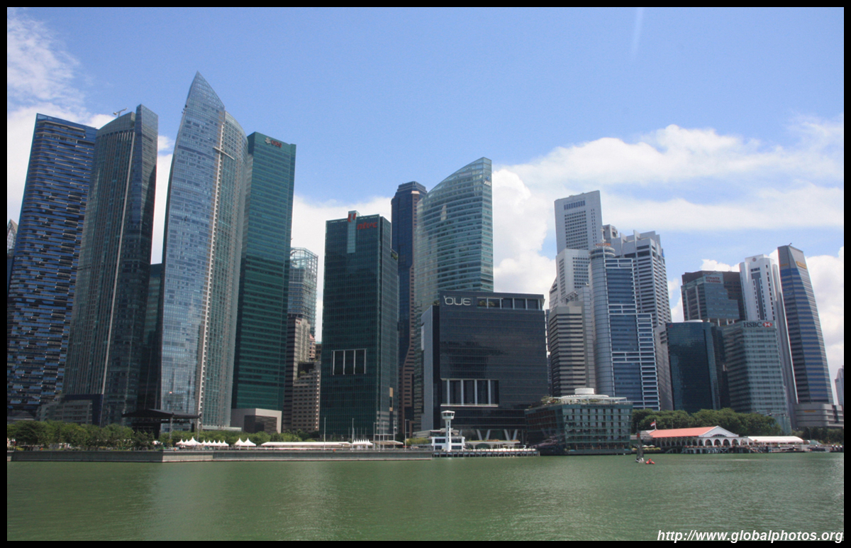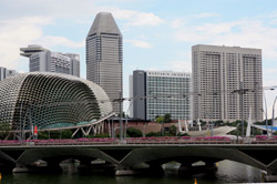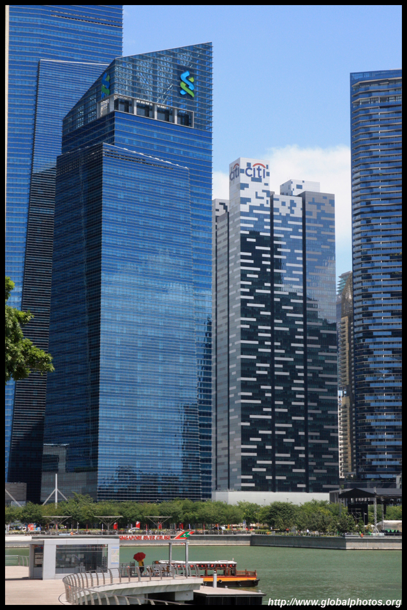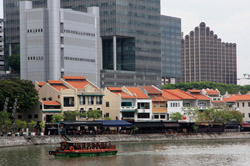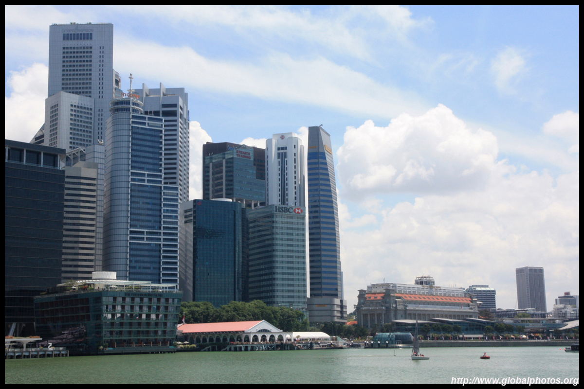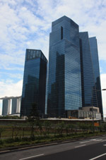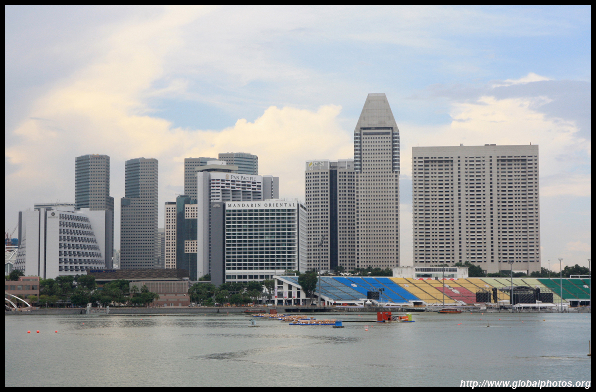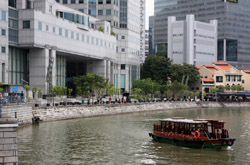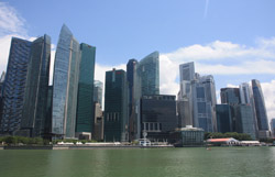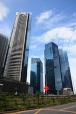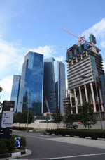 Marina Bay is a reclaimed extension of the central business district. The harbourfront area has a park and promenade with views of the Sands casino complex and Suntec City further afield.