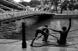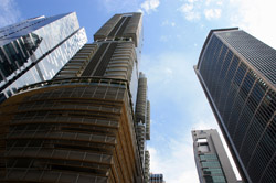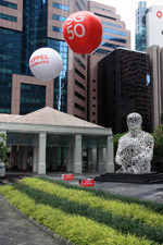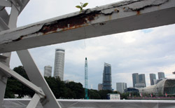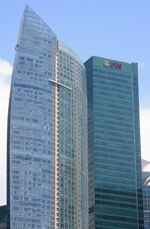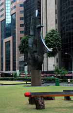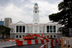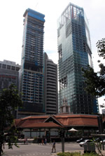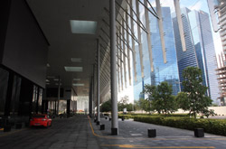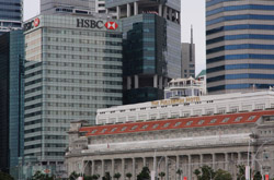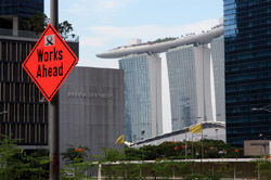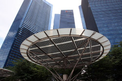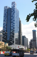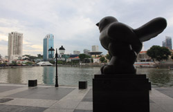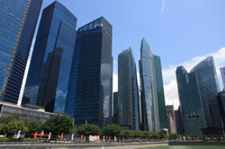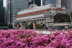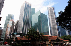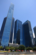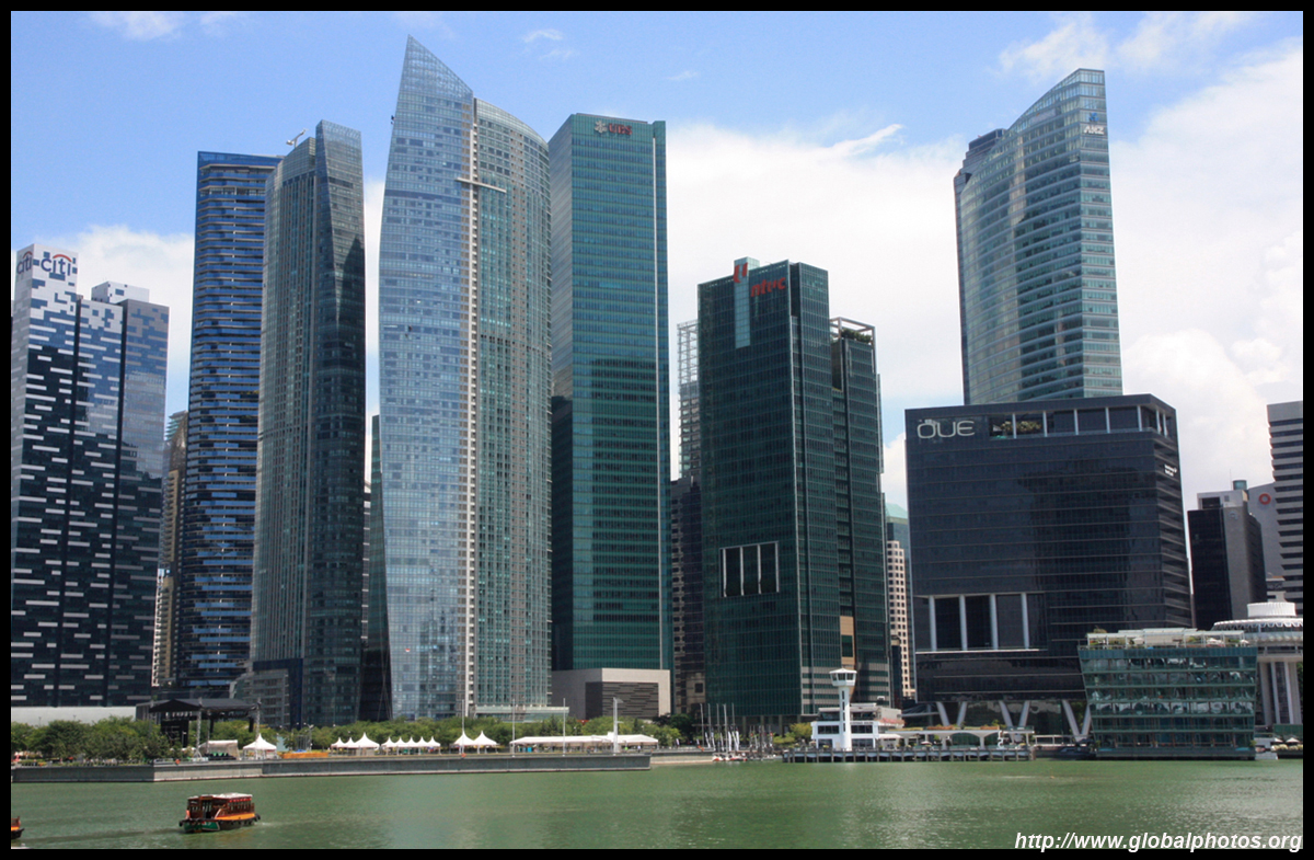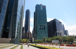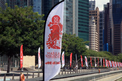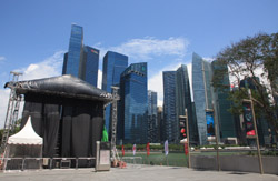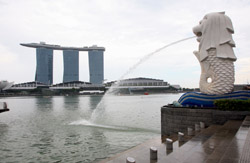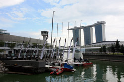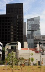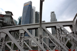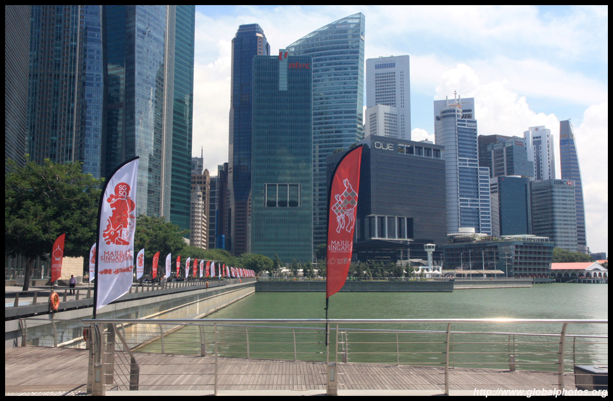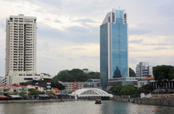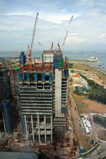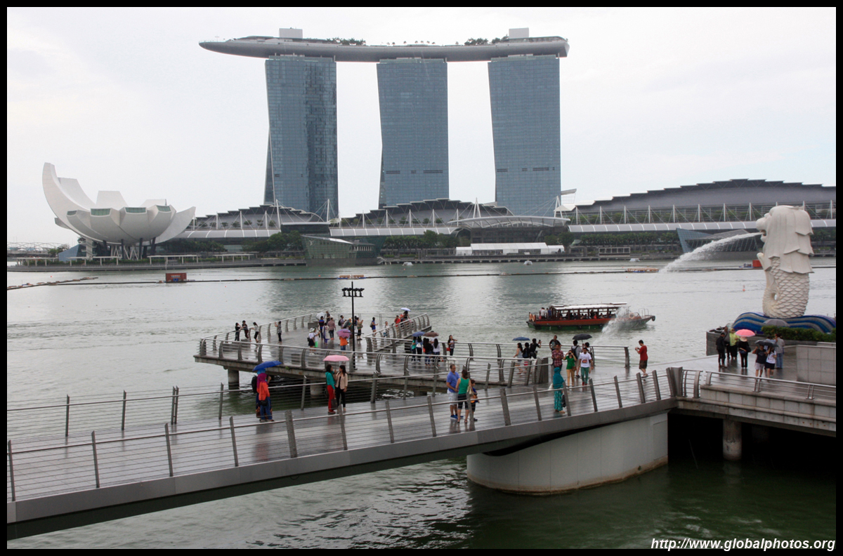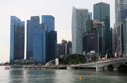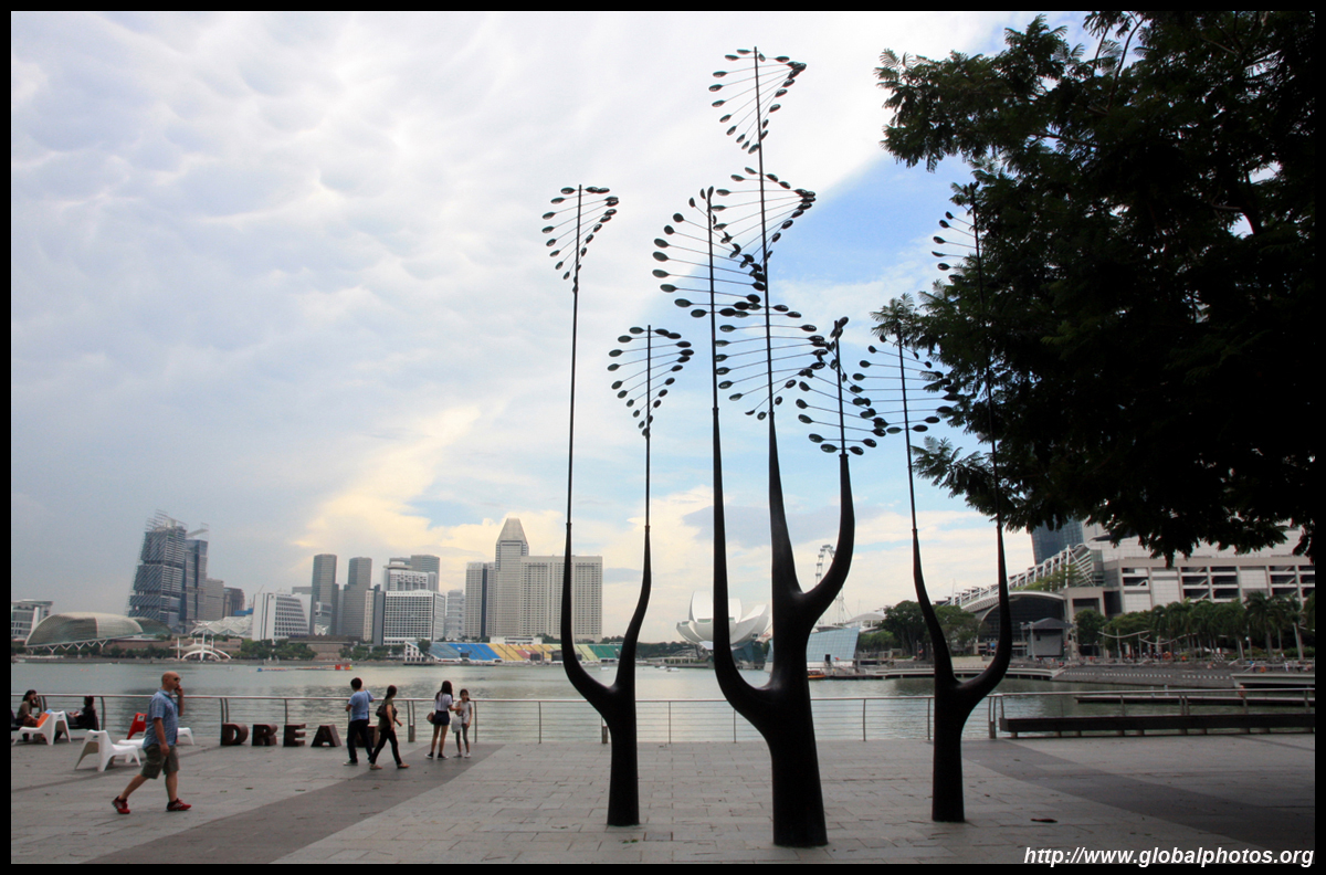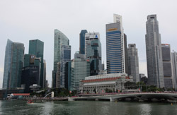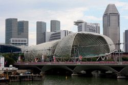 Marina Bay is a reclaimed extension of the central business district. The harbourfront area has a park and promenade with views of the Sands casino complex and Suntec City further afield.