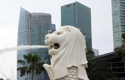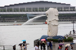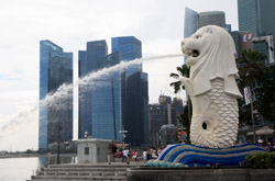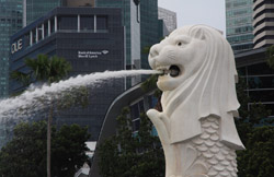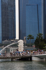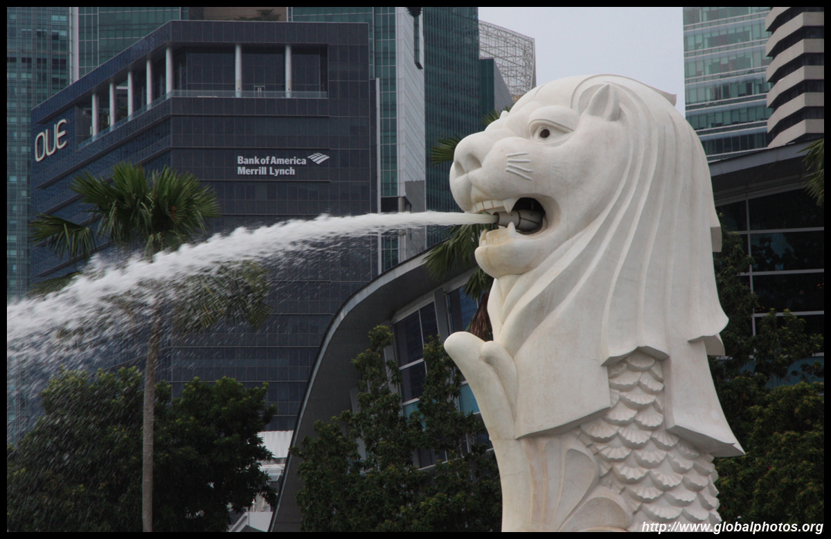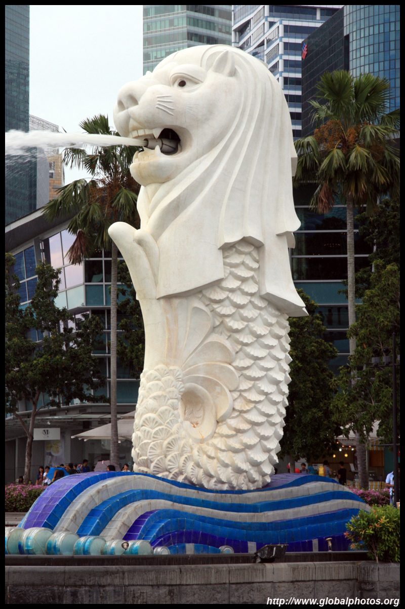 The merlion is a symbol of Singapore, with the head symbolizing the city's original Malay name "lion city". This statue was unveiled in 1972.