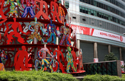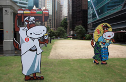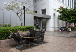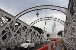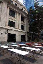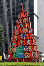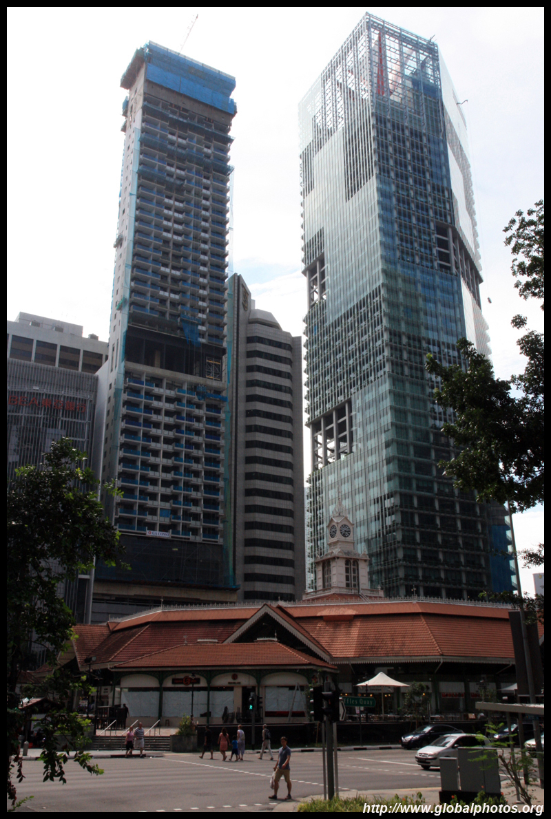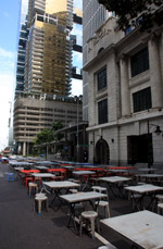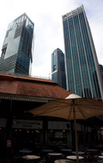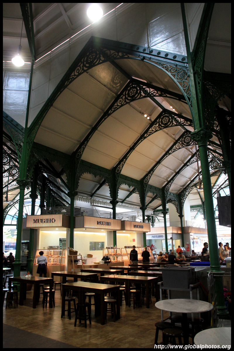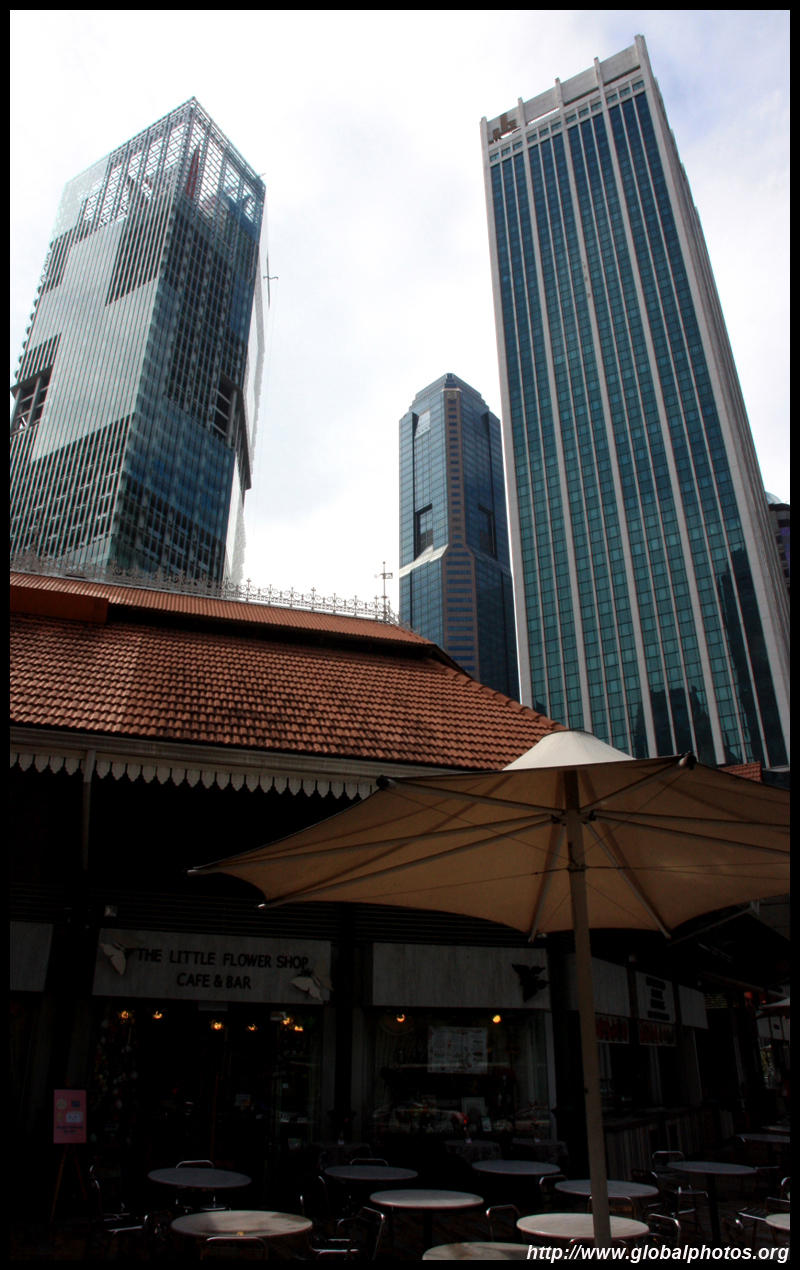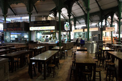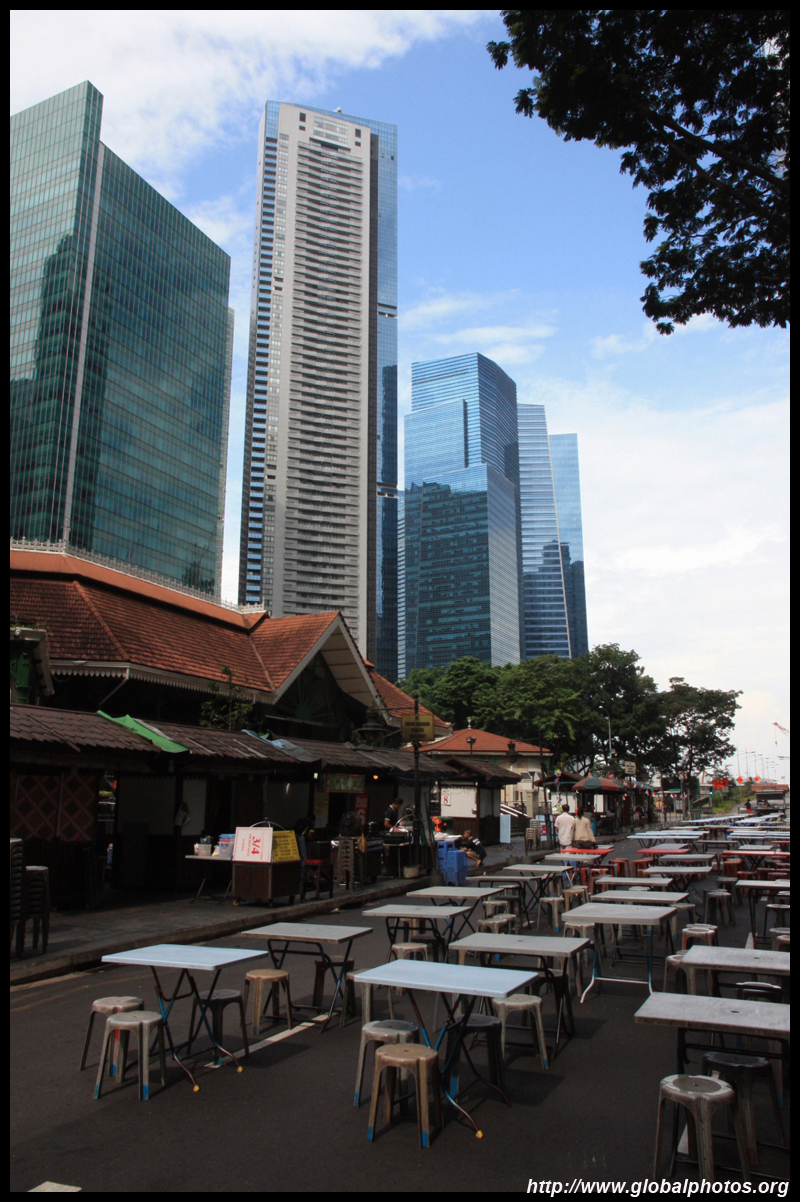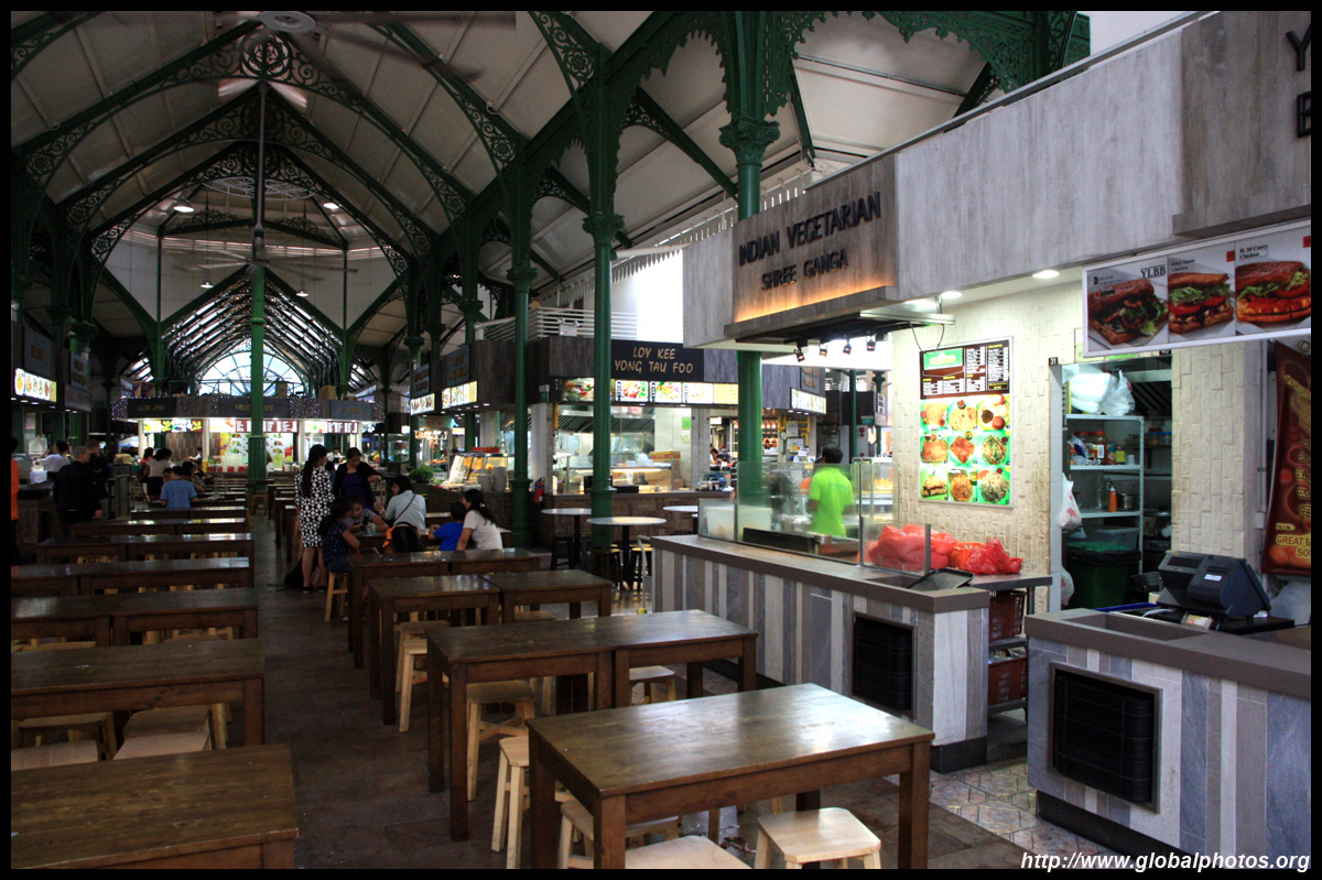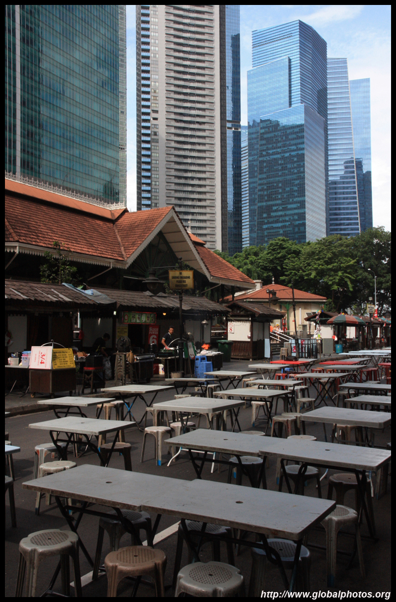Lau Pa Sat was built in 1894 as a market, with its cast-iron support structure made in Glasgow and shipped to Singapore. It is a favourite lunch location for office workers in neighbouring skyscrapers.