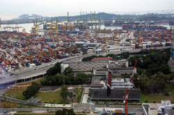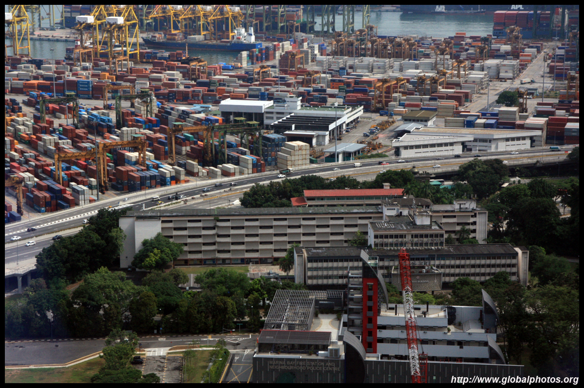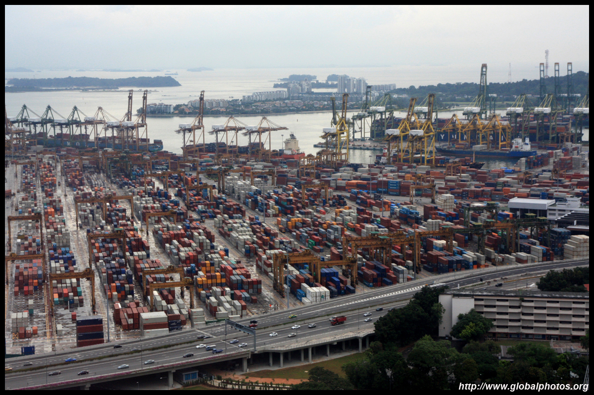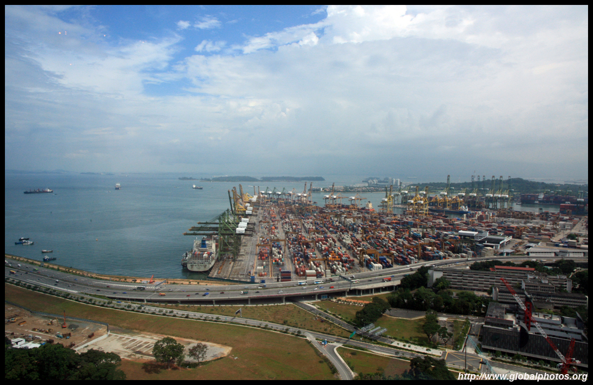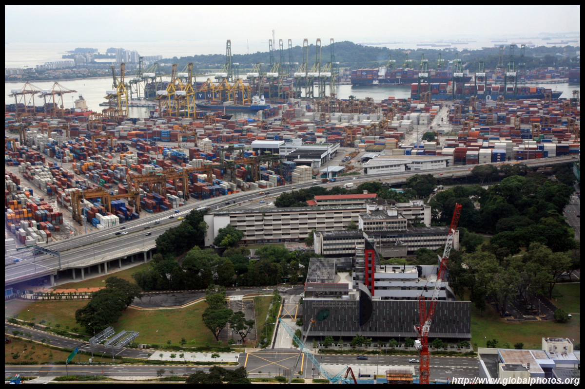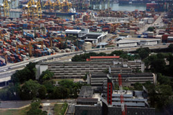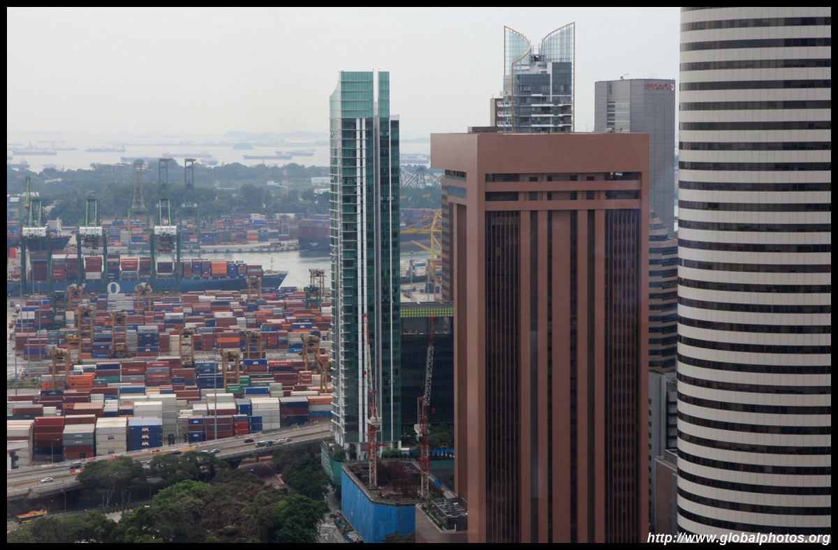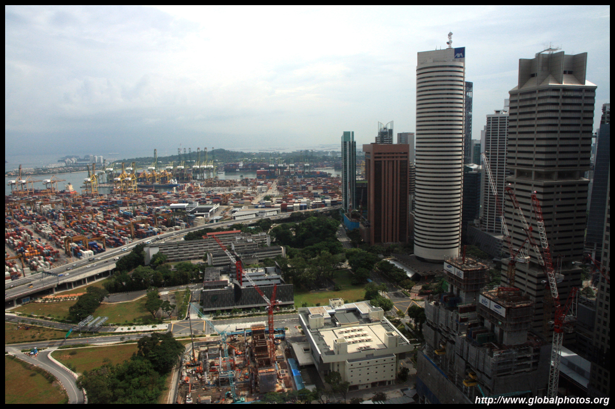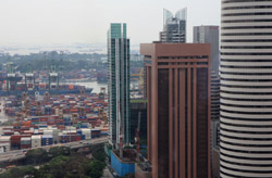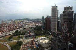 The Westin Singapore's lobby lounge overlooks the Tanjong Pagar container terminal.