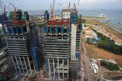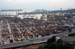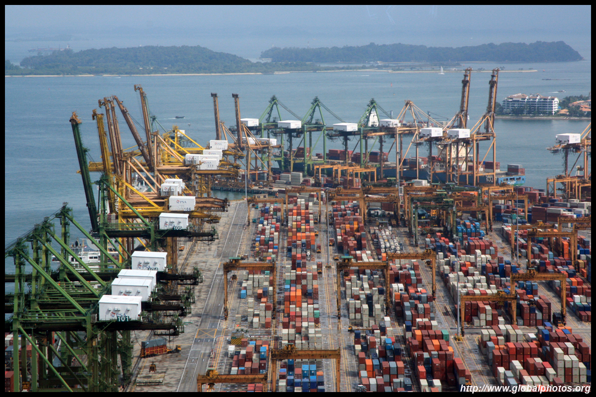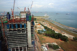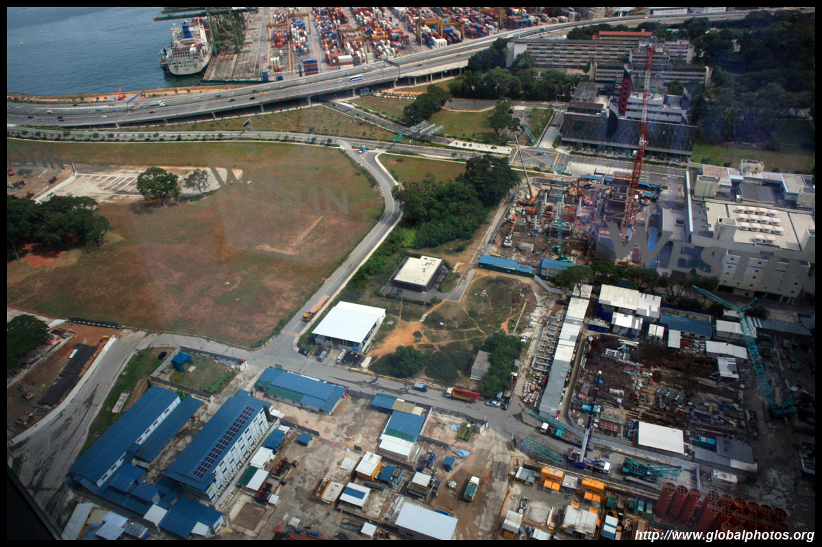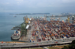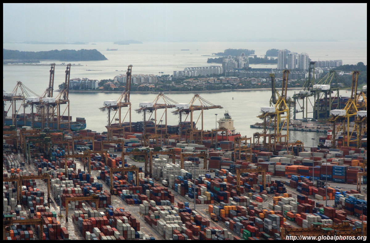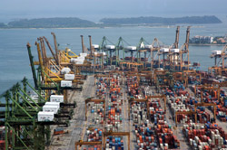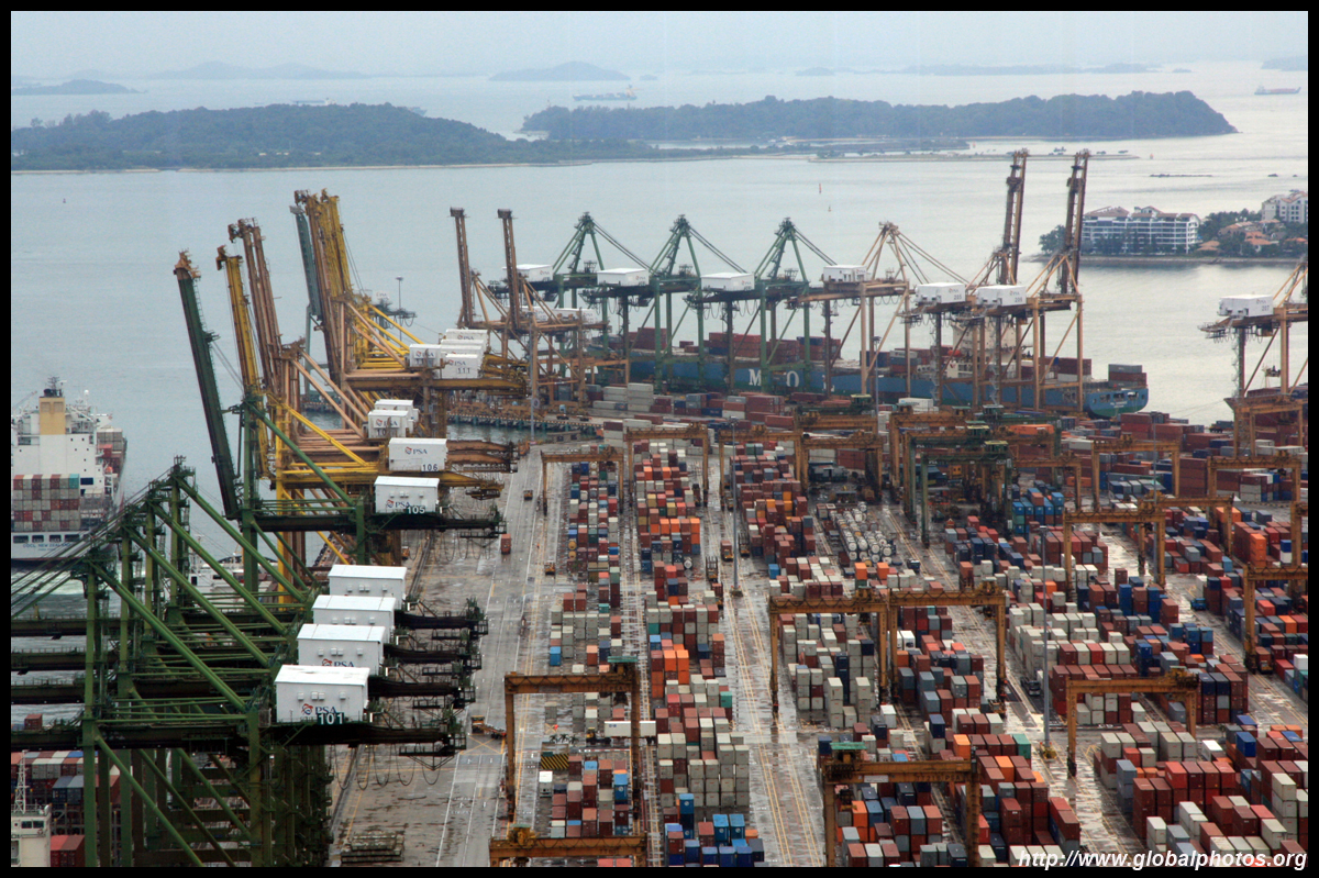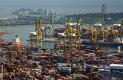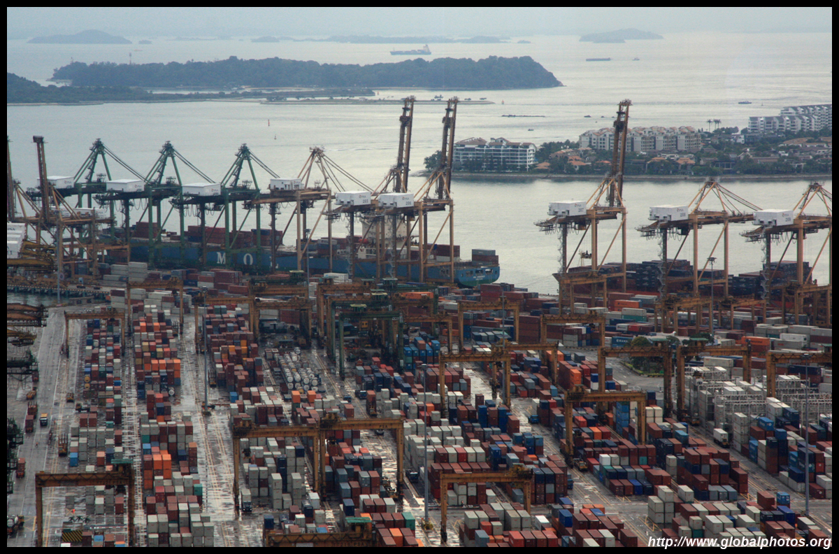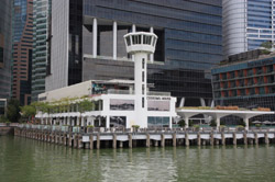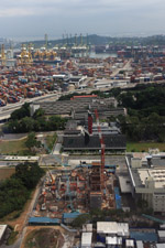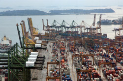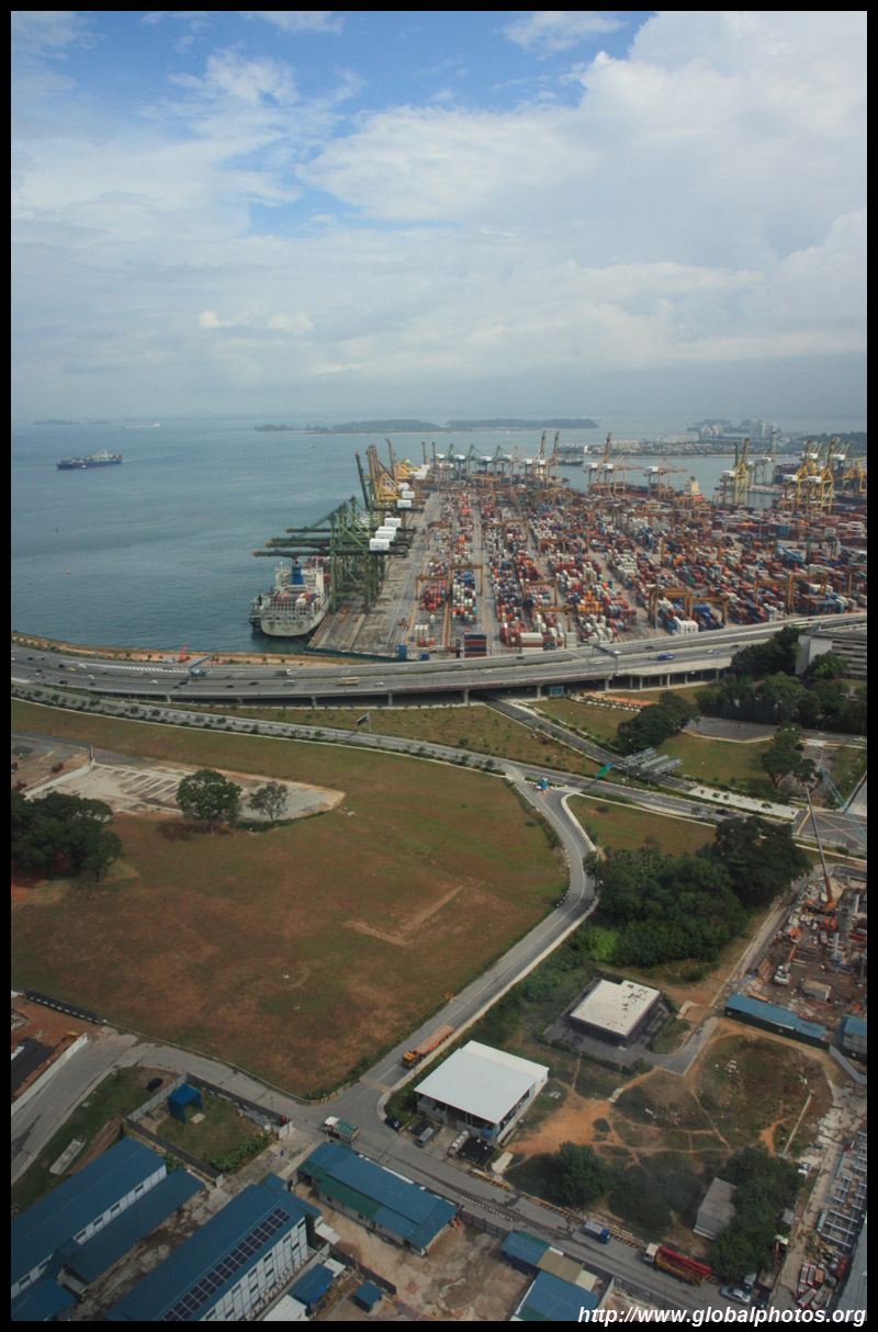 The Westin Singapore's lobby lounge overlooks the Tanjong Pagar container terminal.
