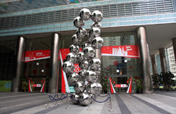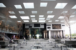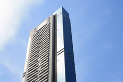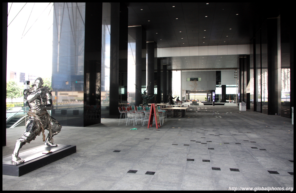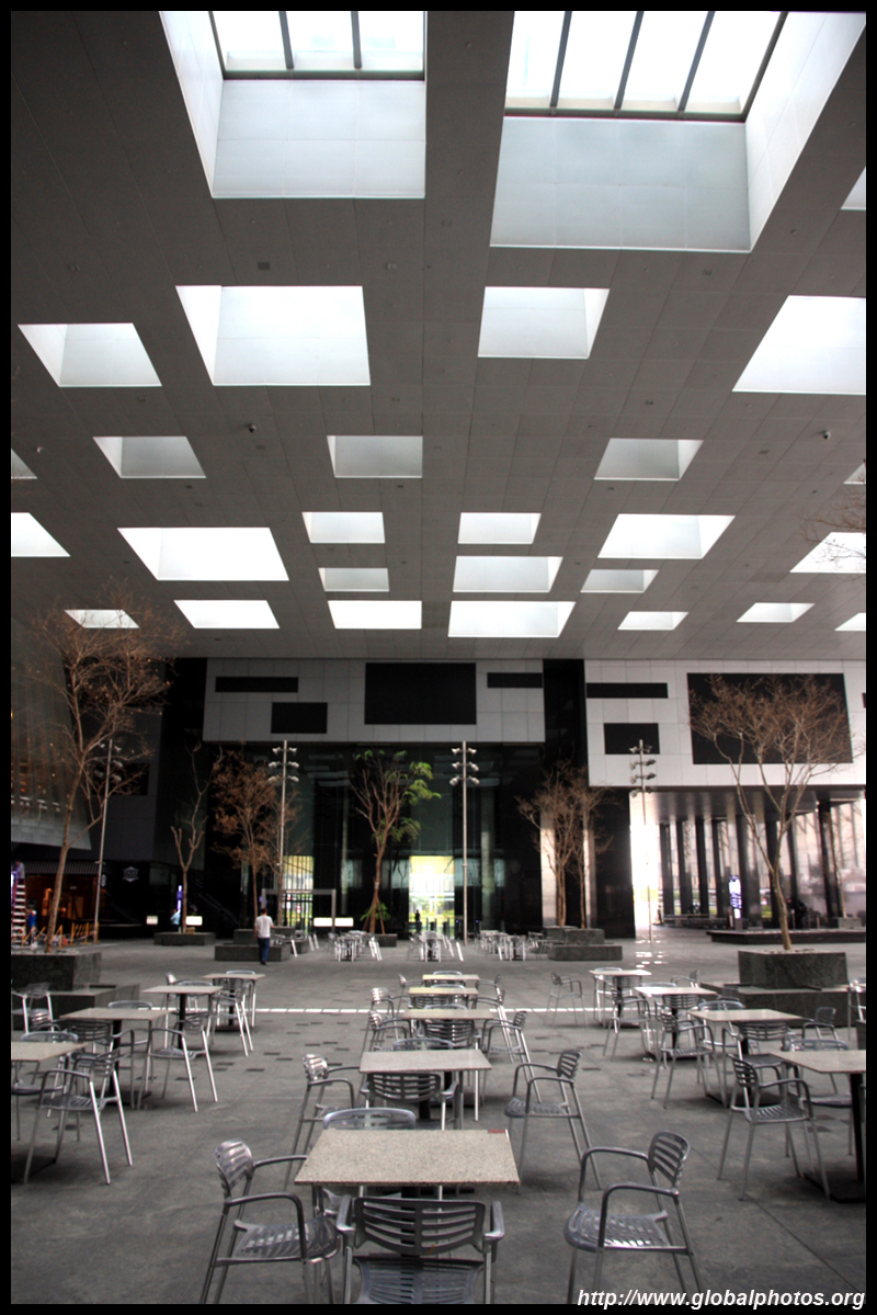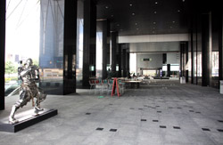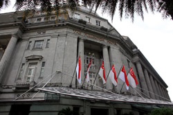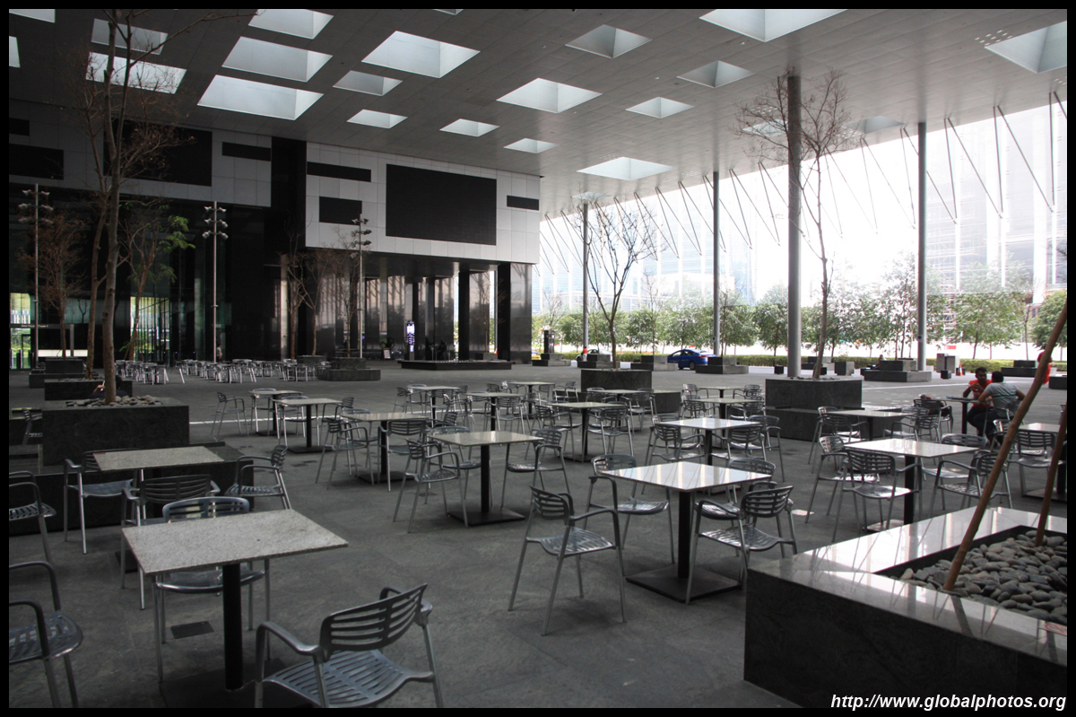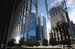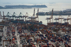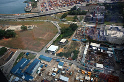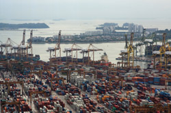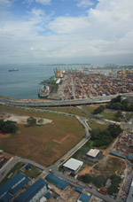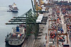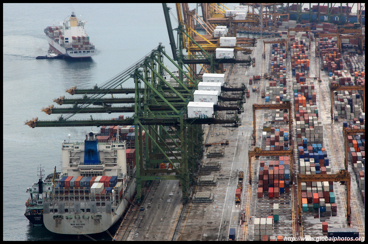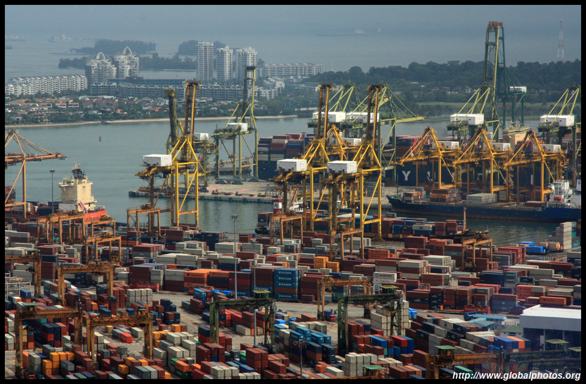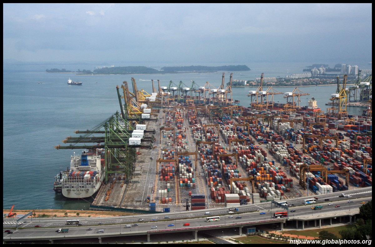 The Westin Singapore's lobby lounge overlooks the Tanjong Pagar container terminal.