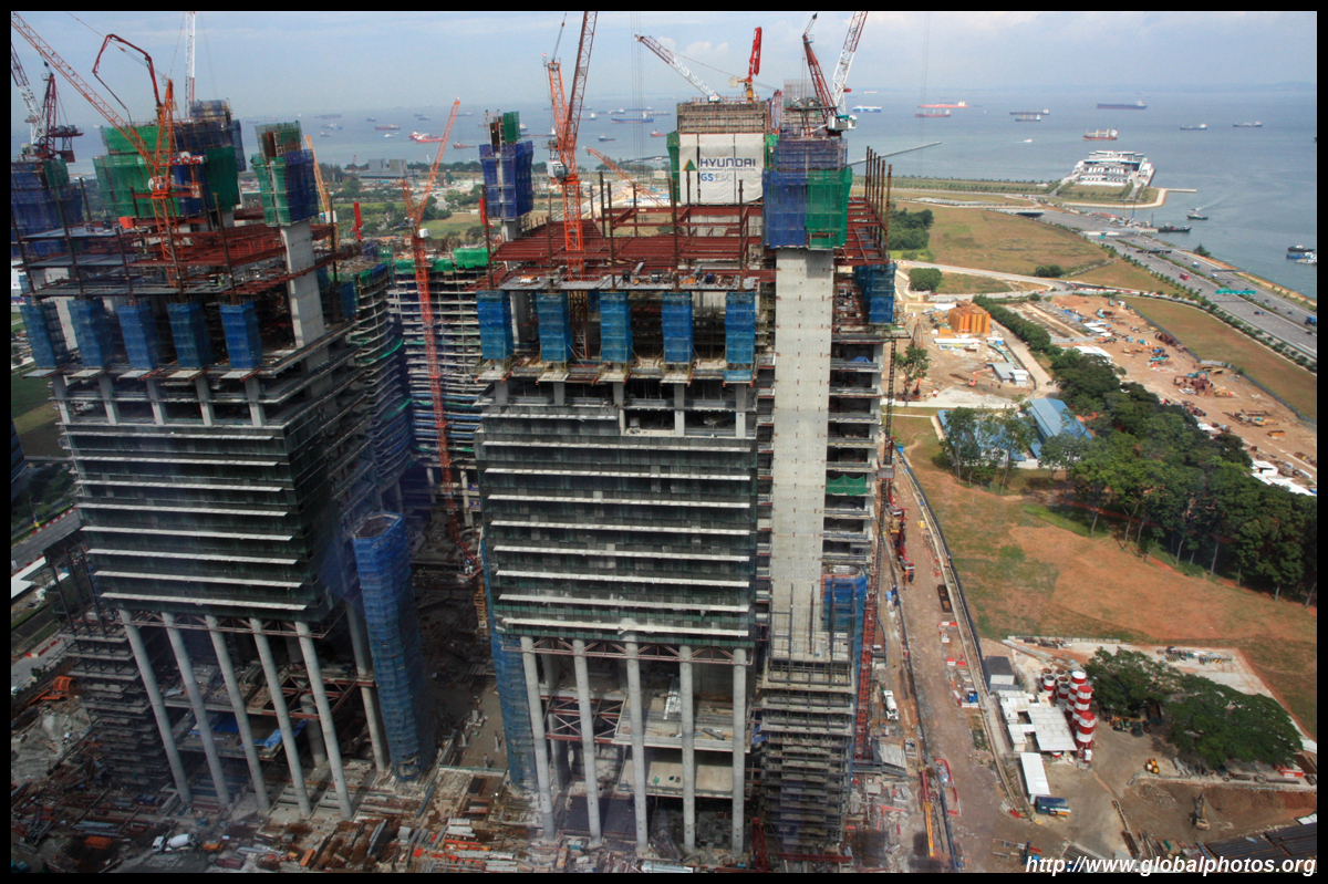 Singapore's 3 tallest buildings all reach the same height - 280m.