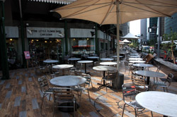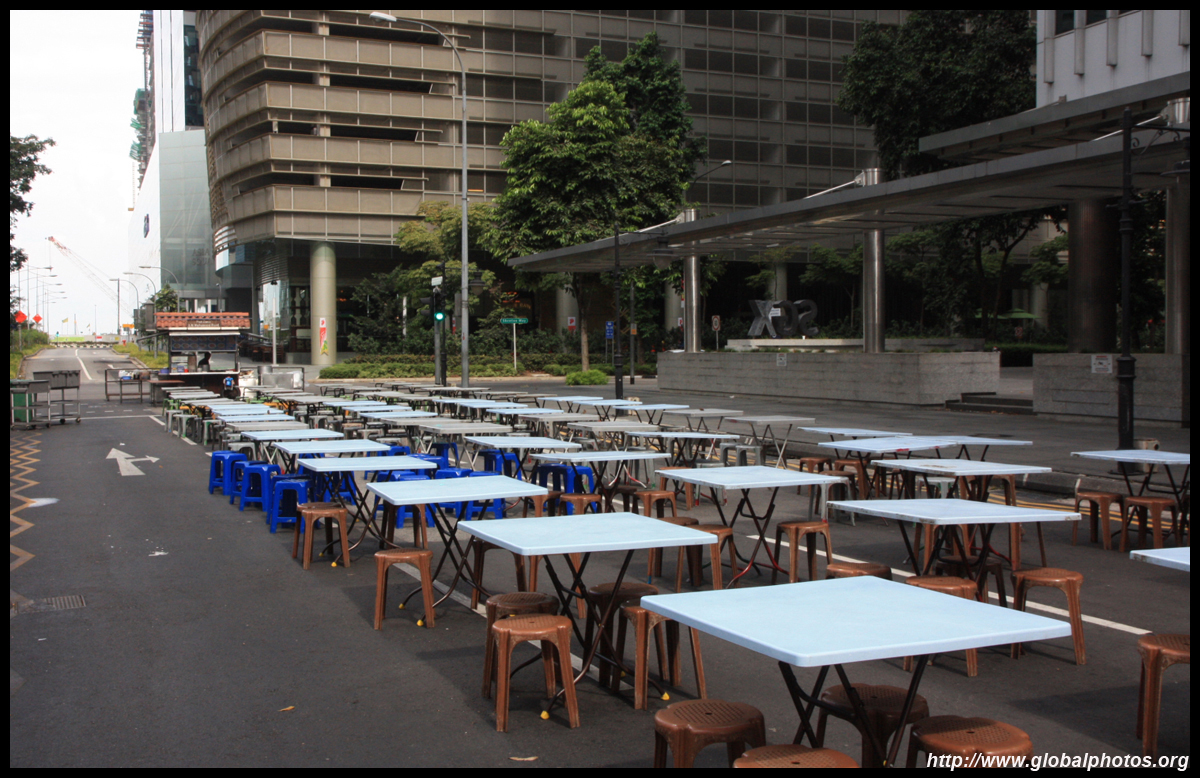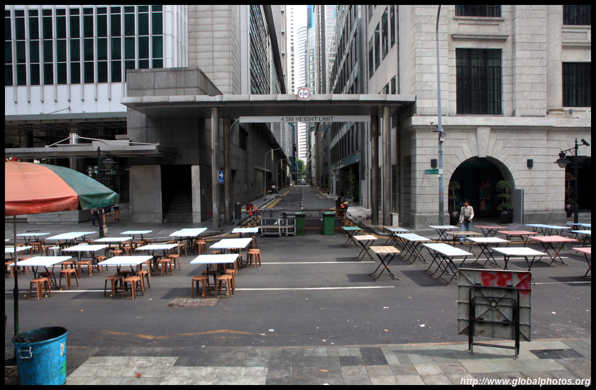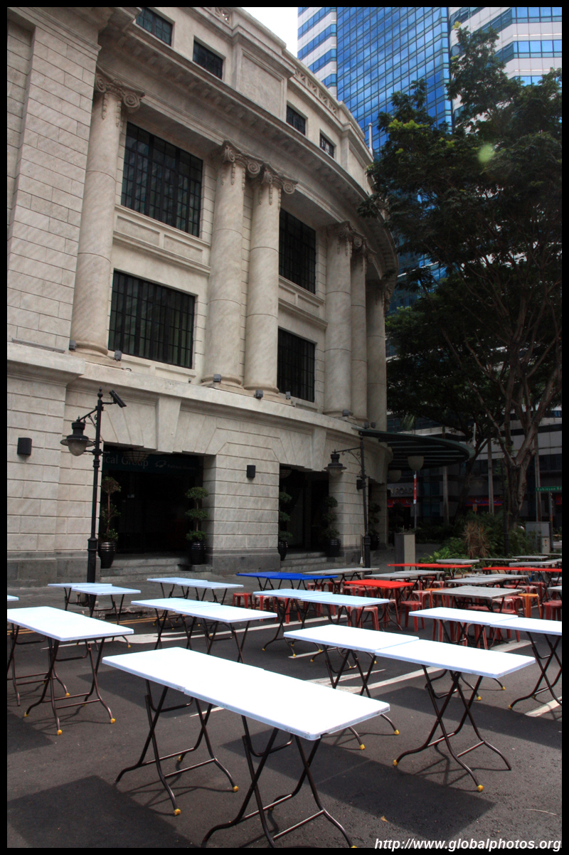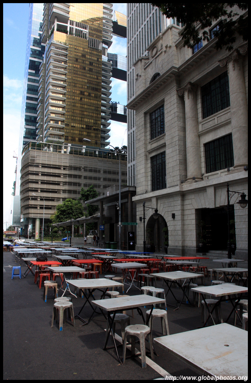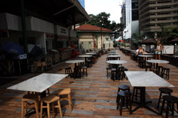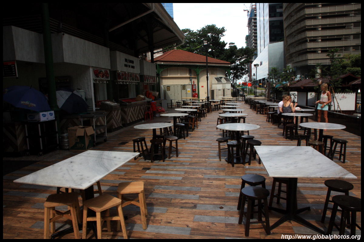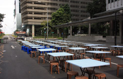 The hawker centre has also extended outdoors, pedestrianizing a stretch of the street.