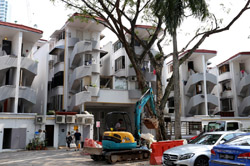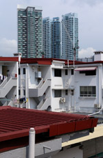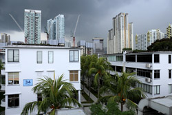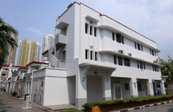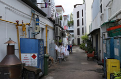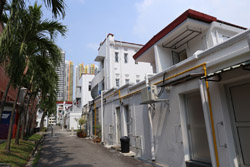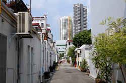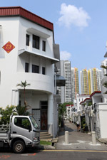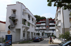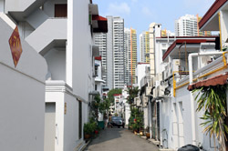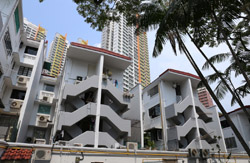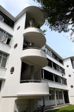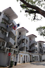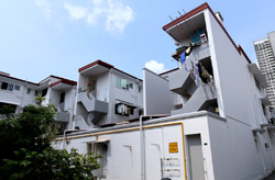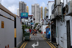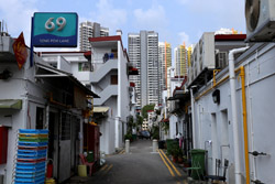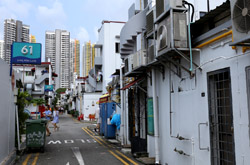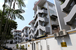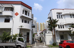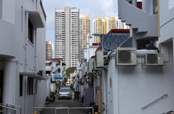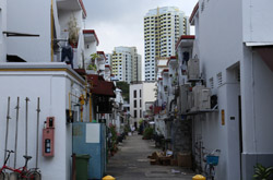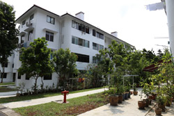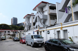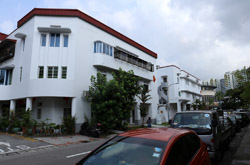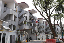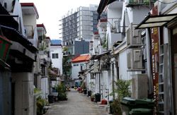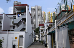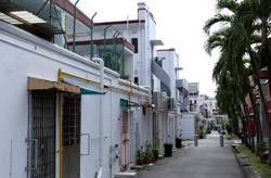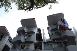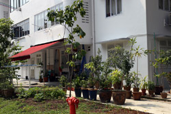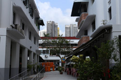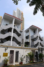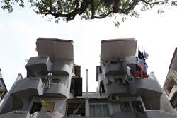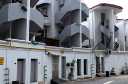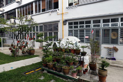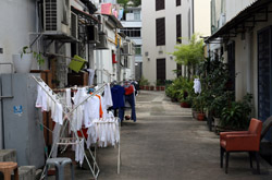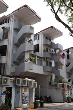 Residents in these historic lowrises keep their shoes out in the hallways and beautify the surroundings.