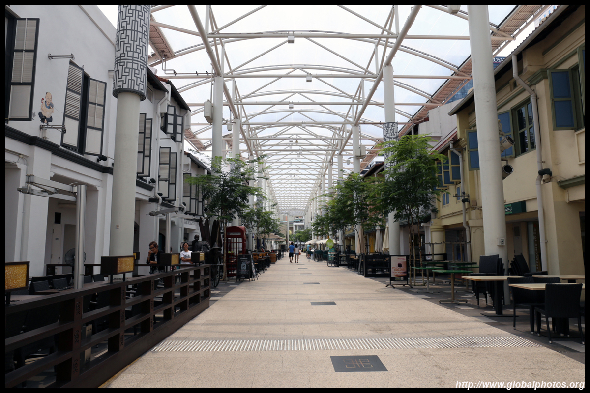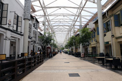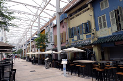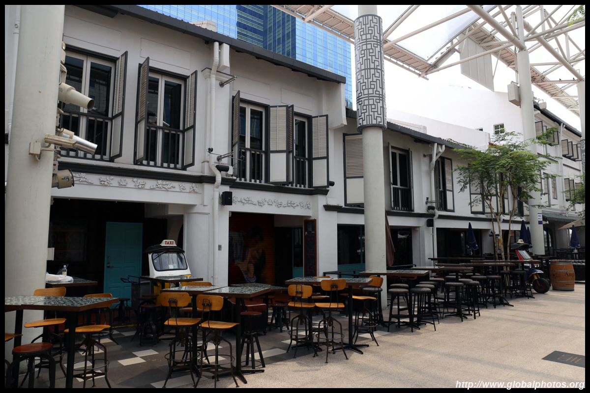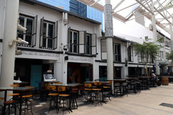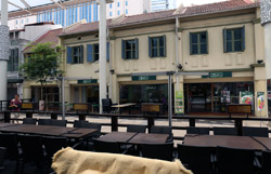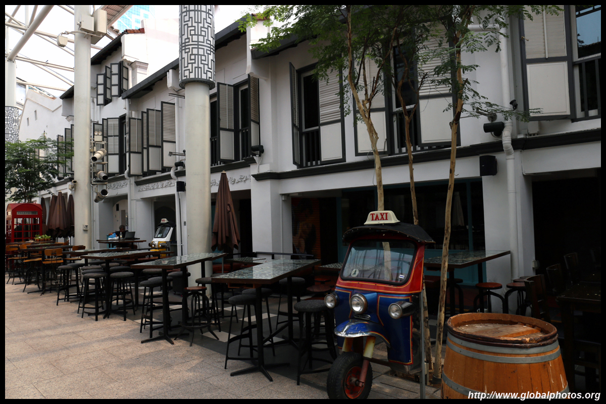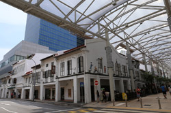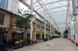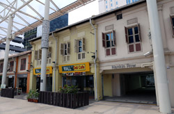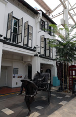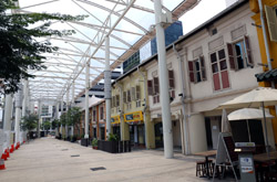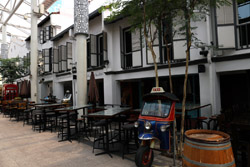Behind the boutique hotel is a sheltered street with restored shophouses on both sides.