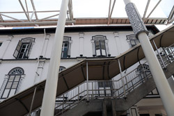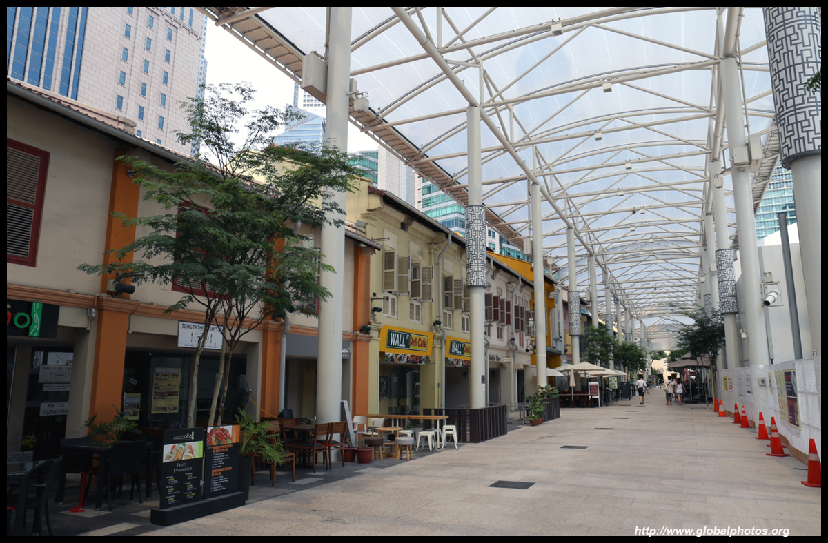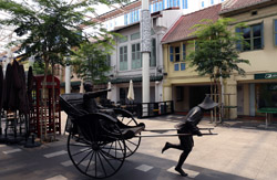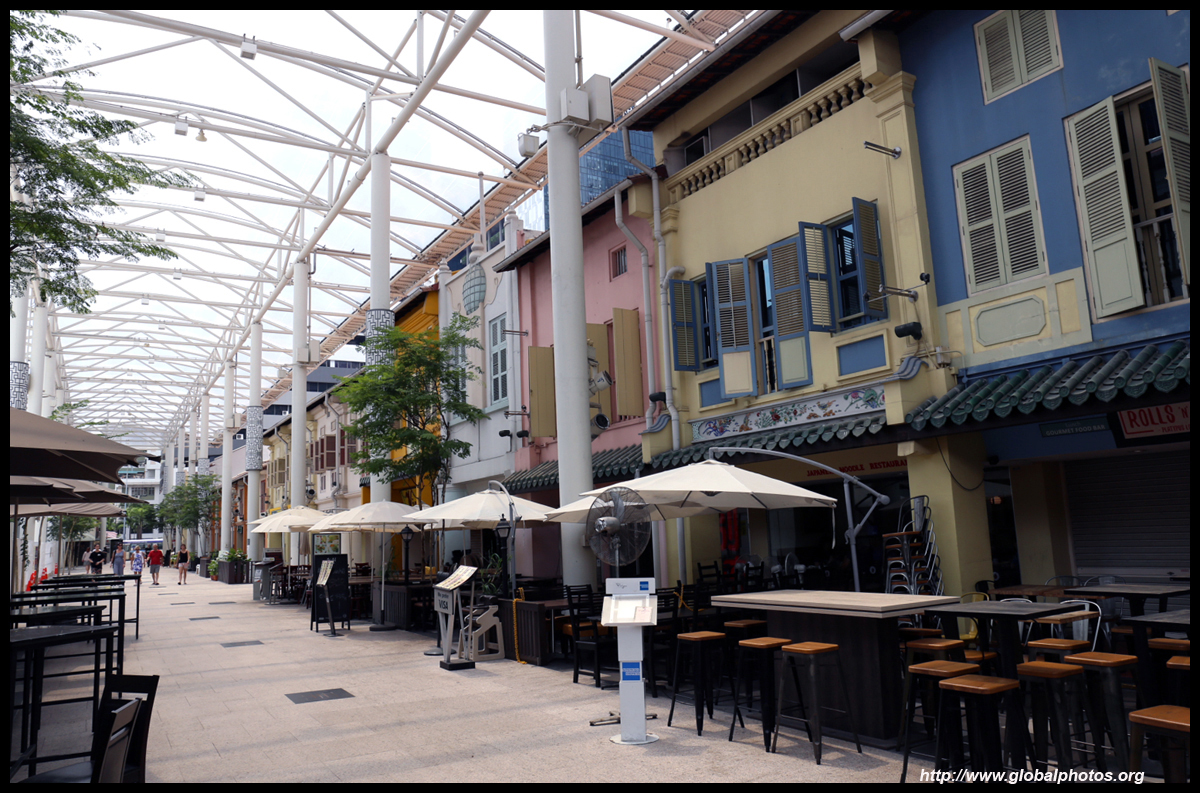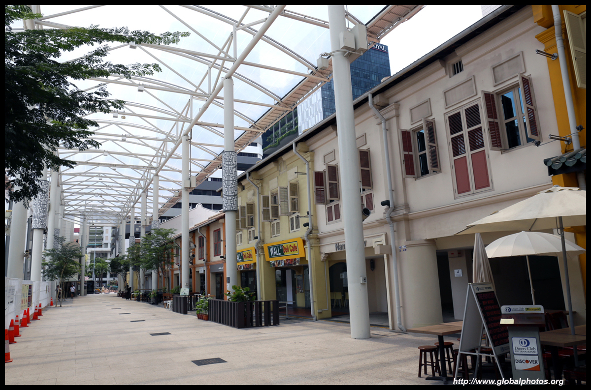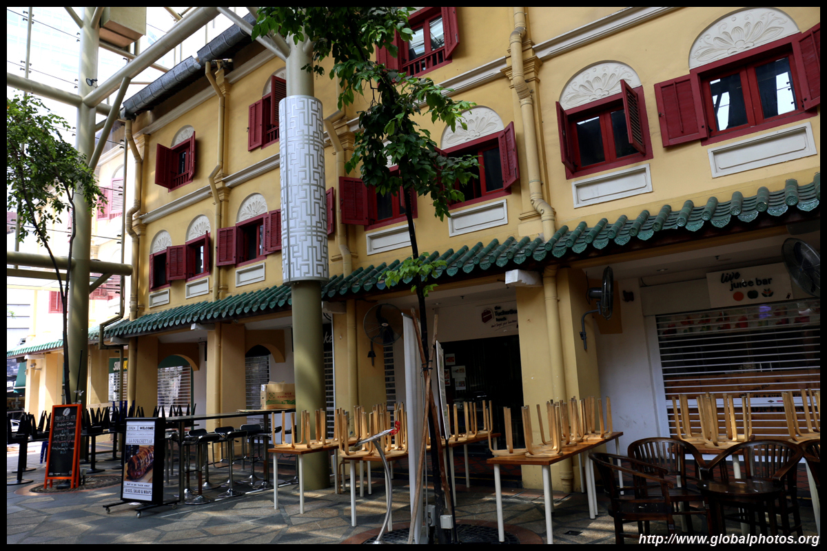 Behind the boutique hotel is a sheltered street with restored shophouses on both sides.
