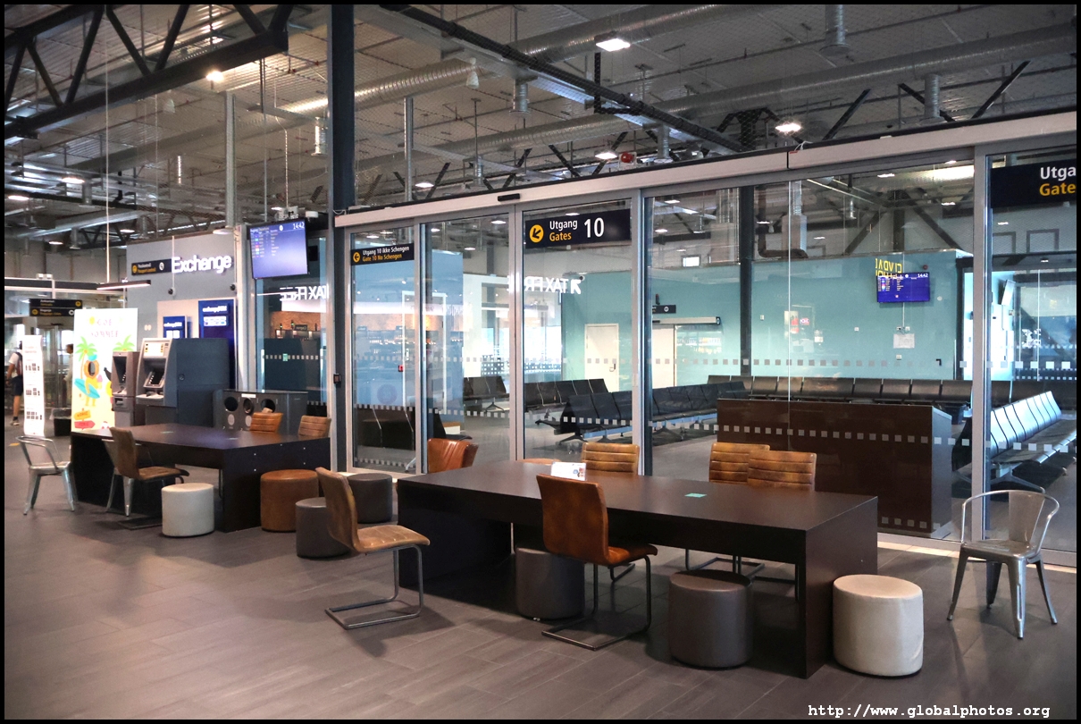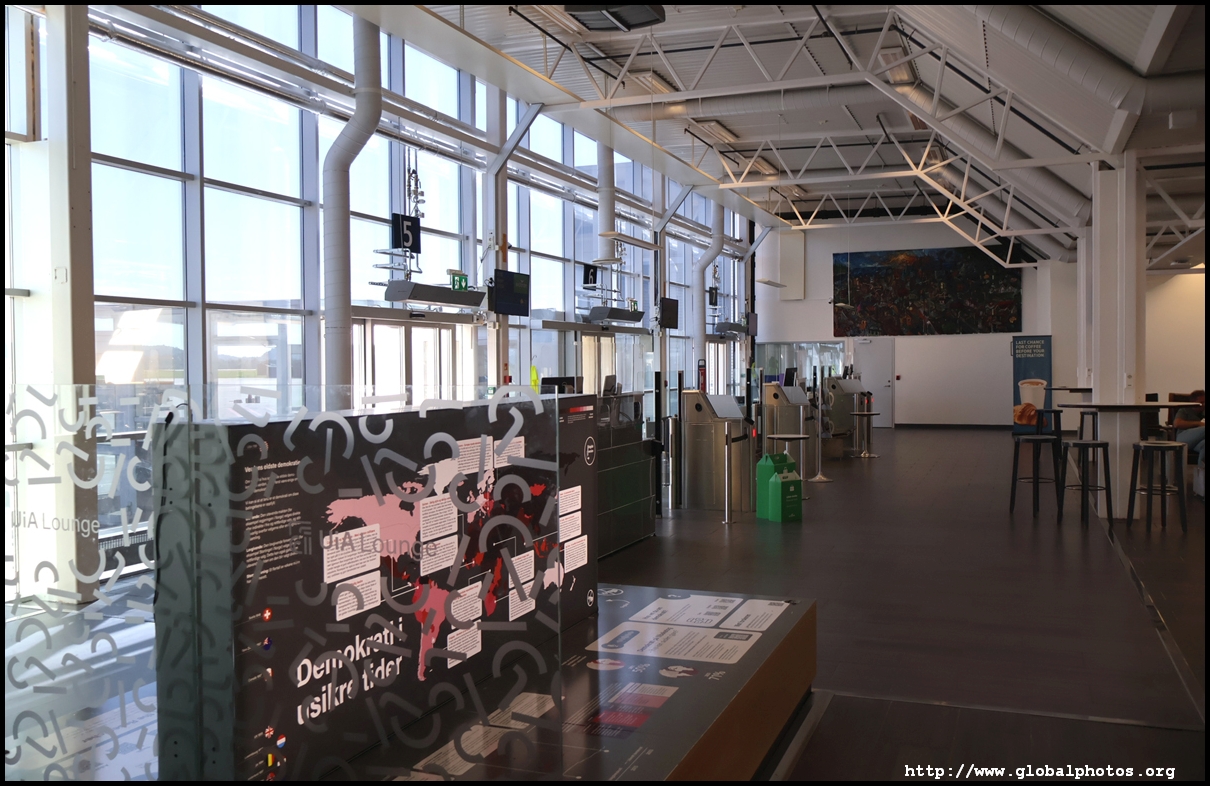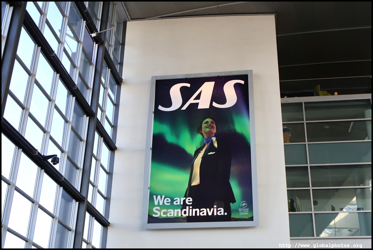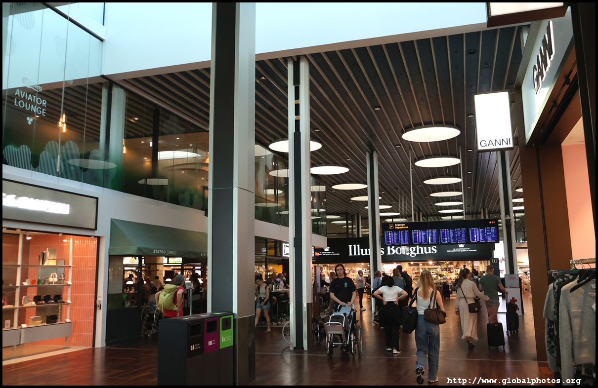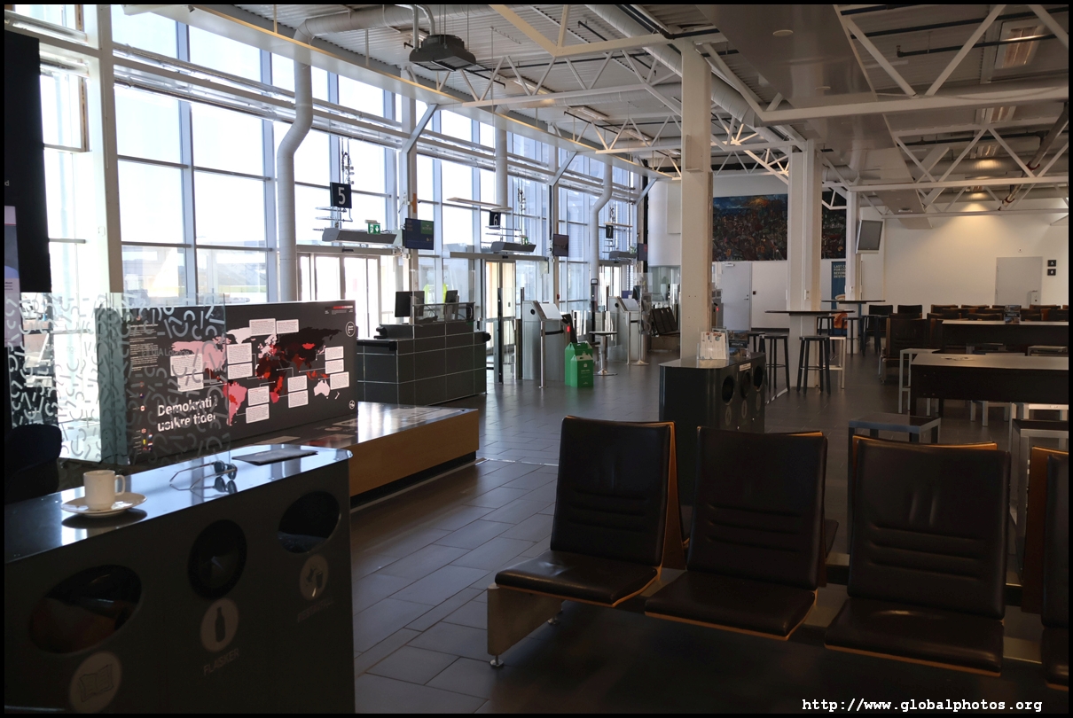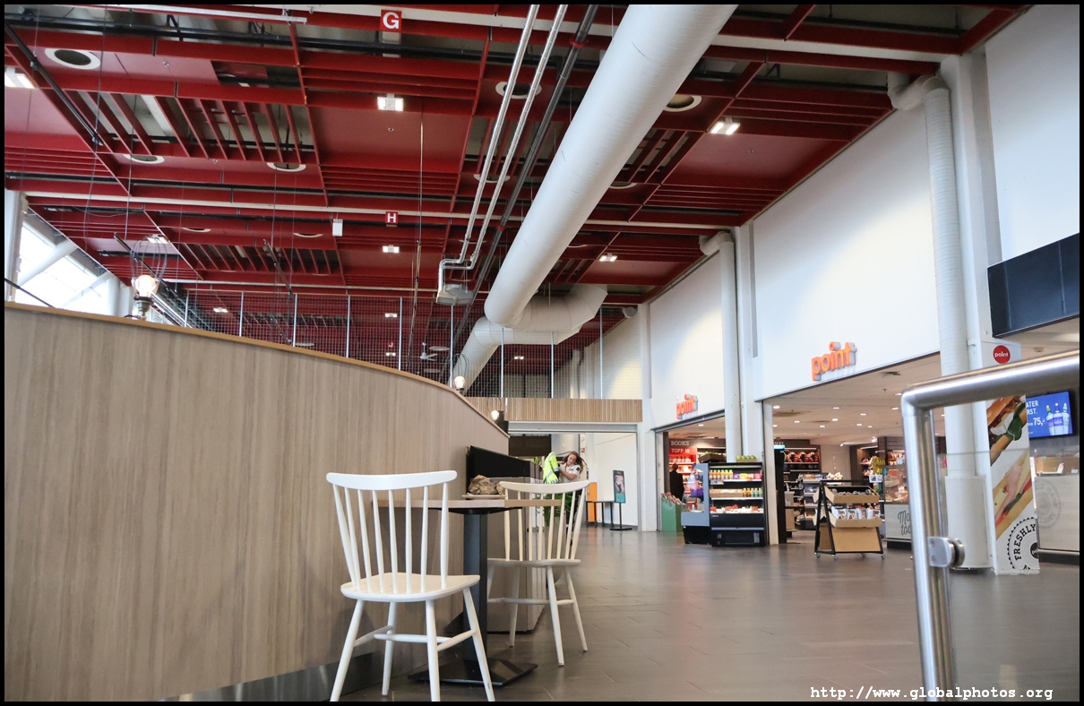 SAS charges for seat selection during online check-in and I wanted their system to allocate one for free. However, I had encountered errors online the day before, which kept spitting out an error, so I had to go straight to a kiosk to try again. This time it magically worked and I was allocated a window seat. However, I still needed to go to a counter to drop my bag off. With the bag sent away, I then moved to security with over an hour to go before departure. Being a small airport, only one lane was open, resulting in a bit of a wait as there were 2 flights departing around this time. The holding pen had a lot of seating, including proper tables and chairs despite just 2 places to get food, 1 of which was a convenience store selling simple stuff such as hot dogs. With the Oslo flight boarding, I turned my attention to where my gate was. That's when I discovered this initial holding pen isn't the right place. Despite Denmark and Norway being in the Schengen area, I actually had to exit this pen through the one-way doors into the international area. I didn't need to get stamped out, but I emerged into a massive duty-free zone. This part of the terminal looked nicer with fancier chairs and decor. We were all waiting for the incoming flight to arrive, so I did a walk around to pass the time, noticing a sign promoting this new route to Copenhagen.