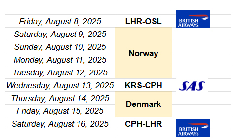 I had initially flown into Oslo from London to reach Norway's southern coast. With a 4 hour journey from Oslo's airport to Arendal, I didn't want to make a similar return trip back for my flight out. During my research, I was surprised Kristiansand, my last base in the region, had a direct flight to Copenhagen. On the ot her hand, there are no direct flights to London on any airline.SAS runs a twice daily service on their summer schedule to Copenhagen and charged a very reasonable fare of about NOK 1100 (GBP 80) including taxes and also a checked bag. So this was how I added Denmark to my southern Norway trip. I then redeemed a BA flight back to London from Copenhagen with my avios. Kristiansand has a small airport about half an hour outside of the city by bus. Route 35 departs from the main bus station next to the waterfront hourly, and costs the same as any other city service. It's just a normal city bus with no luggage racks but the ride was comfortable enough.