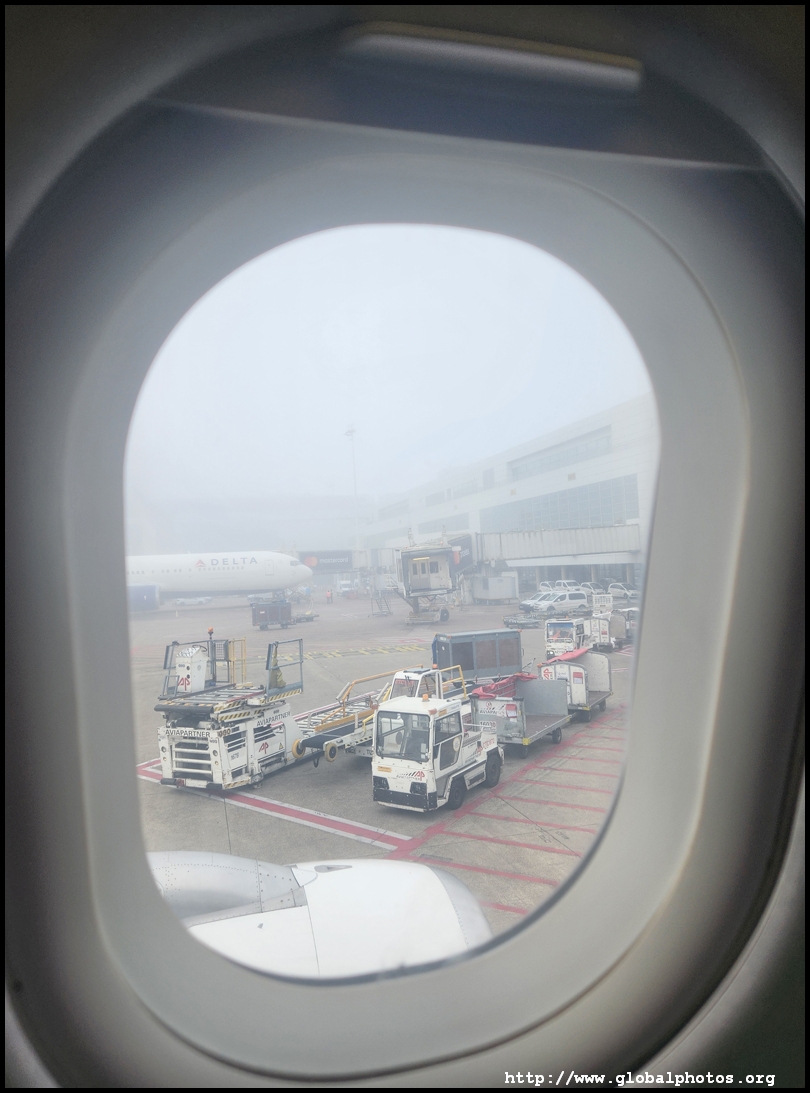 As we neared Brussels, the crew came back with announcements for a number of connecting destinations. There seems to be a lot of passengers heading to Africa and the crew proactively moved a few to the front of the plane, even asking the Business Class passengers if they could take new neighbours. They also asked everyone to let those who are still stuck out back through first upon arrival so they could make their flights. It's a really nice gesture above and beyond what is expected and everyone was calm and civilized. A young child that moved up front with a gentleman turned finicky as we descended and the crew came back to try to calm him down with a few paper cup tricks and he quieted down! Meanwhile, the sky was completely white outside the window and indeed the fog was quite intense this morning. Another announcement came that because we are landing automatically, the captain has asked us to turn off all our electronics. Even flight mode wouldn't do. I happily obliged but that also meant I could no longer timestamp the arrival. Scanning out the window, I didn't even see the ground when we slammed onto the runway. We were completely immersed in the fog and I was very surprised we could even land! We reached the gate at 10:23am and passengers indeed gave way for the short connection lads through first.