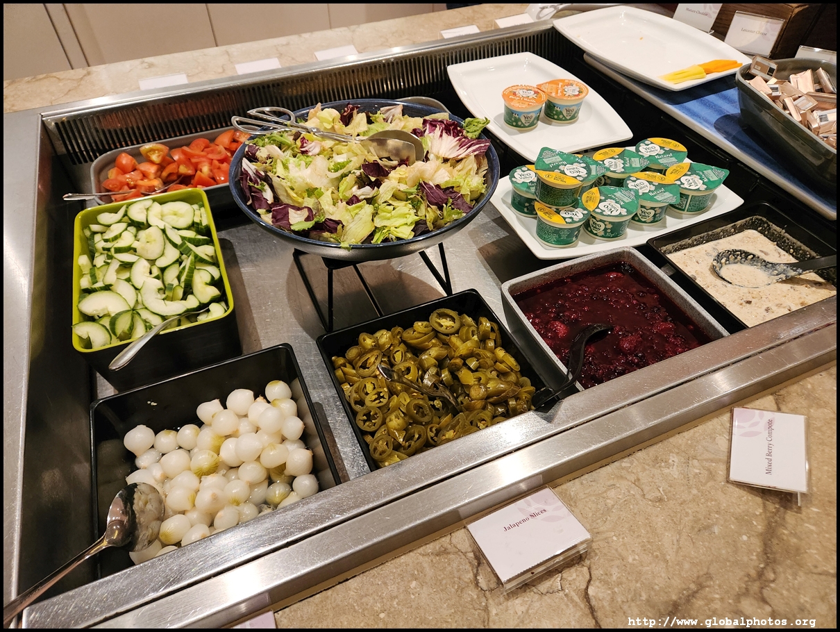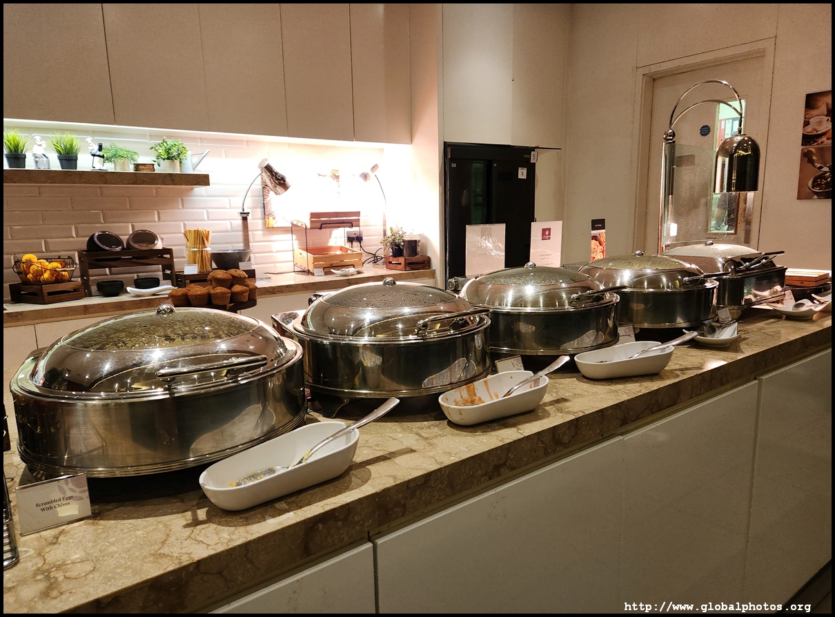 A big group was waiting to get through security but there were enough lanes open to keep the line moving quickly. The scanners here are still the old ones so I had to take my laptop out. I was surprised I got a free pass to the Plaza Premium lounge for booking my flight with an agent. With a bit of time left on my hands, I decided to try it out for breakfast. After I cleared security, I noticed the Lufthansa lounge I visited almost a year ago has been boarded up. That day, my flight to Switzerland was delayed and I got a chance to visit 3 lounges here.