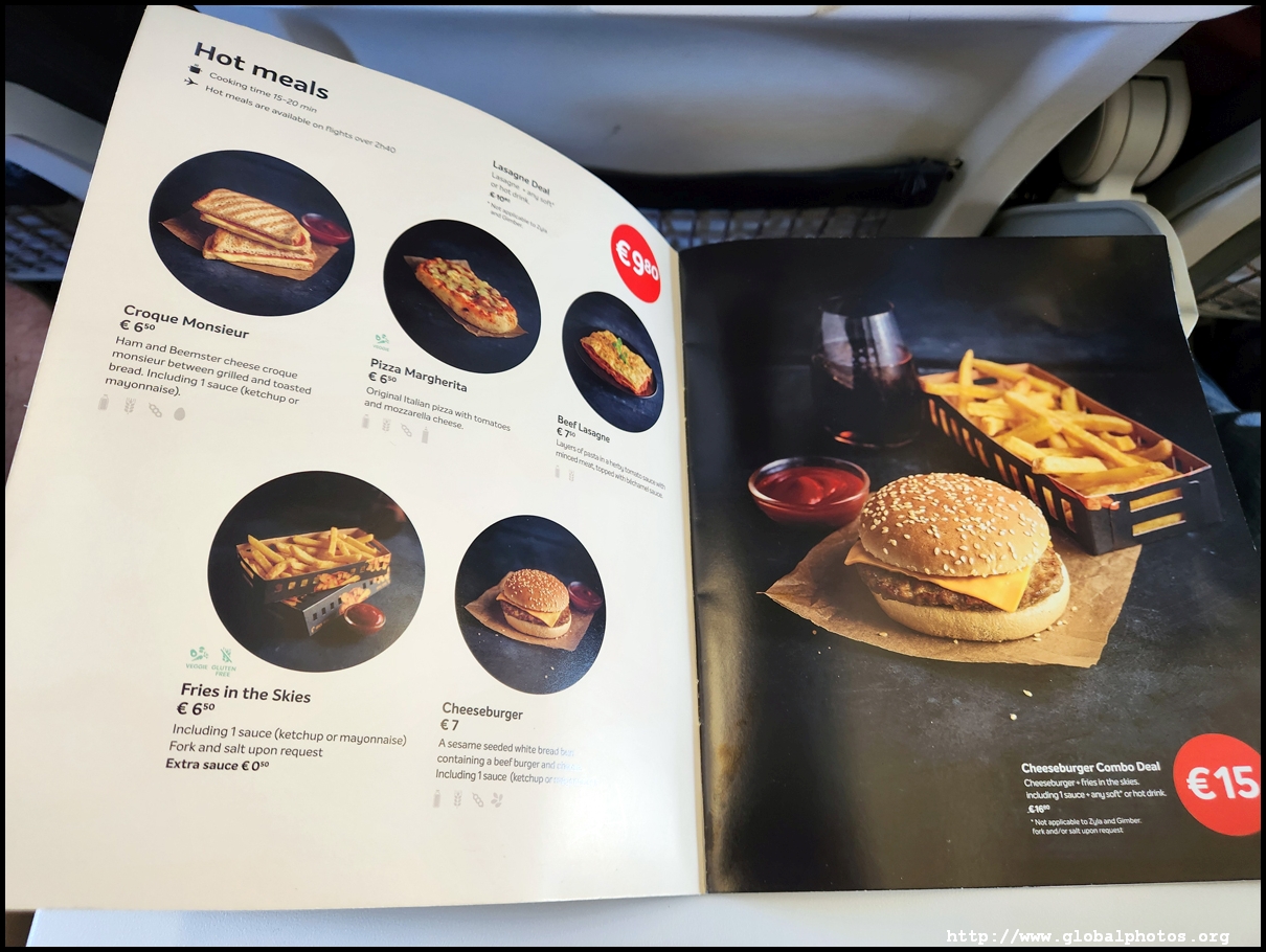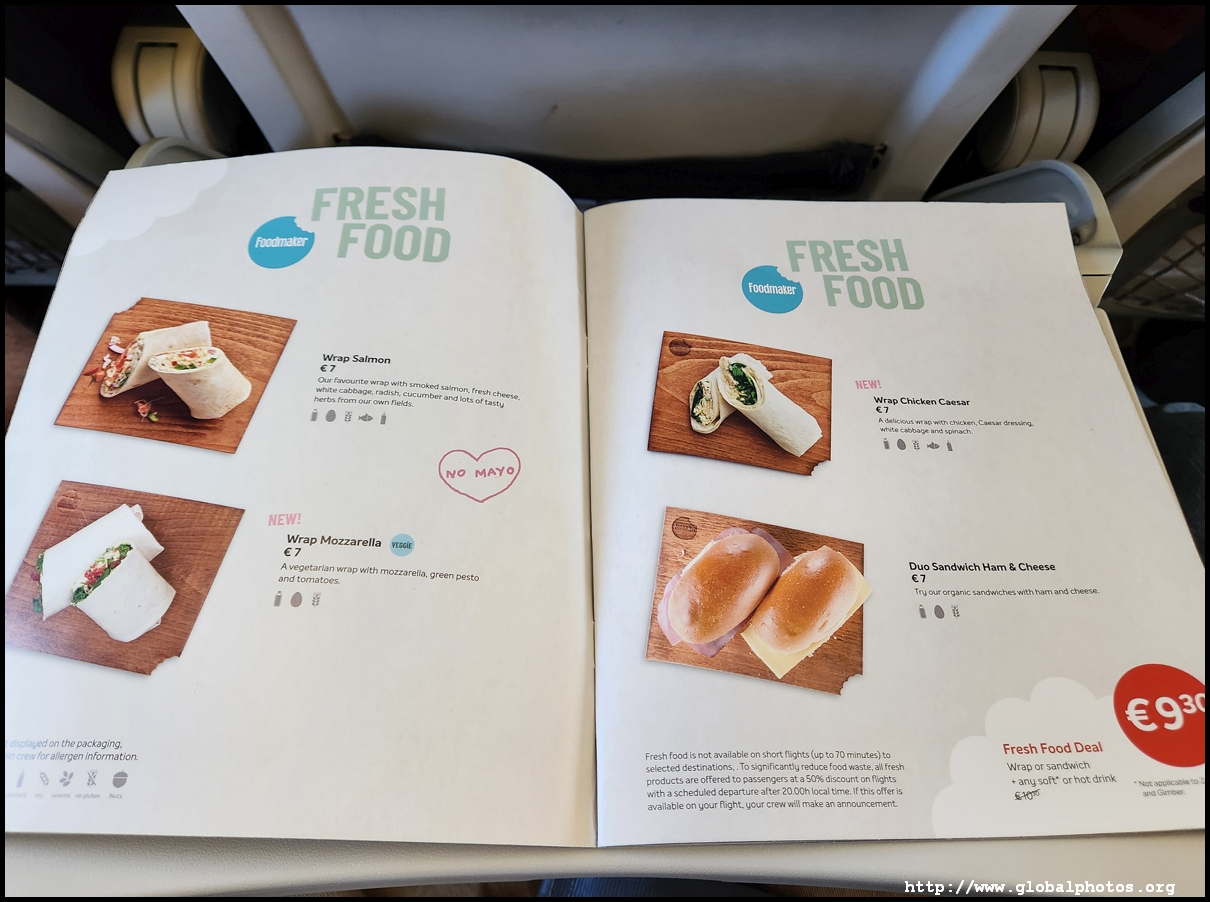 We taxied into position and started to roll at 8:27am. However, we only moved a little bit before turning off the runway, making a quick stop before going back to position to try again. This was my first aborted take-off and I was curious whether it was something wrong with the plane or air traffic control. The second attempt was successful and we departed a grey London at 8:31am. The crew made a few announcements on connections and they will provide an update closer to arrival. Meanwhile, I browsed the food for purchase catalogue to see what they've got. I've already filled up in the lounge so wasn't interested in buying anything.