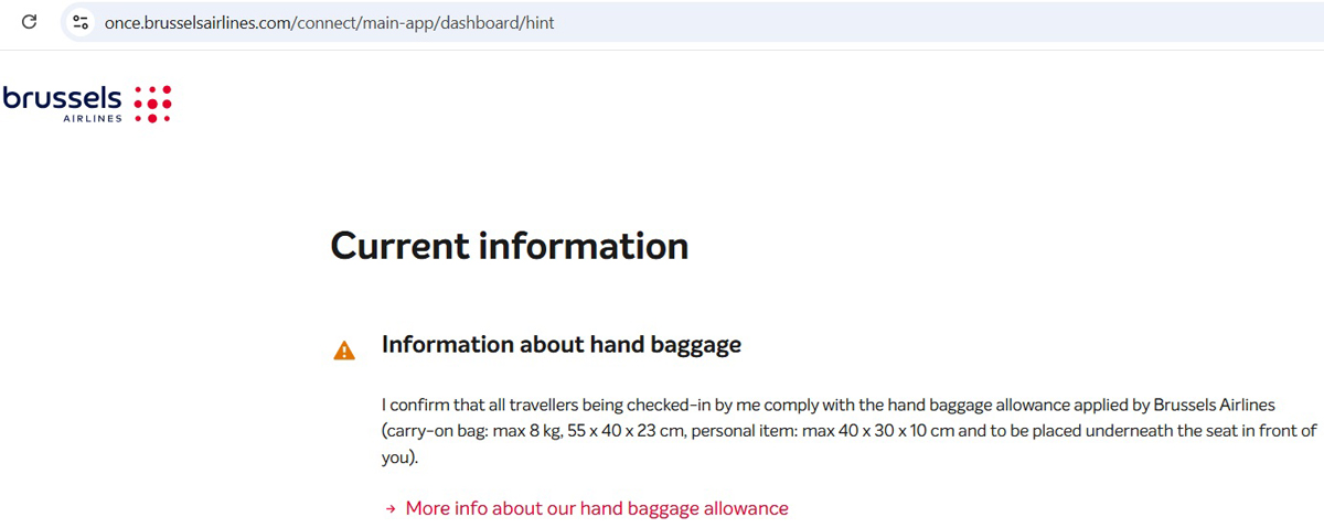 With a rare good weather forecast, I wanted to head over to Belgium for a last-minute trip. This would have been perfect for a Eurostar Snap booking, which has discount tickets for imminent departures if they have leftover seats, but their website can't confirm the train times but require payment first so a 3-day trip could turn into 1 full day of sightseeing only, or worse yet, allocate their earliest departure which would be impossible for me to take. Prices weren't too cheap either at just shy of 100 pounds roundtrip.With a 65 minute flight time, it's only about half that of the train, so I can imagine why the Eurostar can be a better choice if you start in central London and pay a premium for that. Searching for flights, I was a bit surprised Brussels Airlines came on the radar with a roundtrip at just under 130 pounds for Economy without checked baggage. The departure times were good with an early morning flight out of London and an evening return from Brussels. They're a part of the Lufthansa group and a new airline to experience. Getting to Heathrow was also quicker and easier for me so I decided to fly. Online check-in the day before was relatively straight forward. Similar to flying short-haul in Europe on other traditional carriers, there is an obvious note about hand baggage limitations. Having seen the overhead lockers fill up and passengers forced to check their bags at the gate, I rarely bring my wheeled case on board these days.