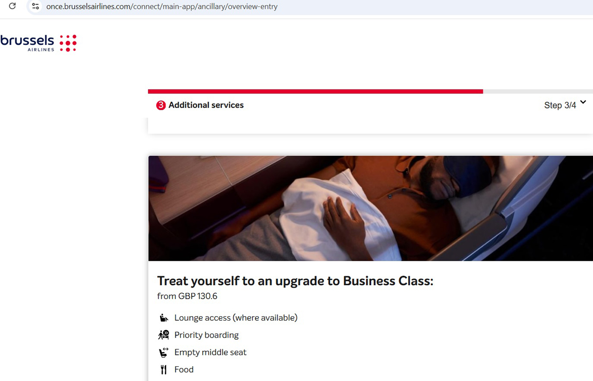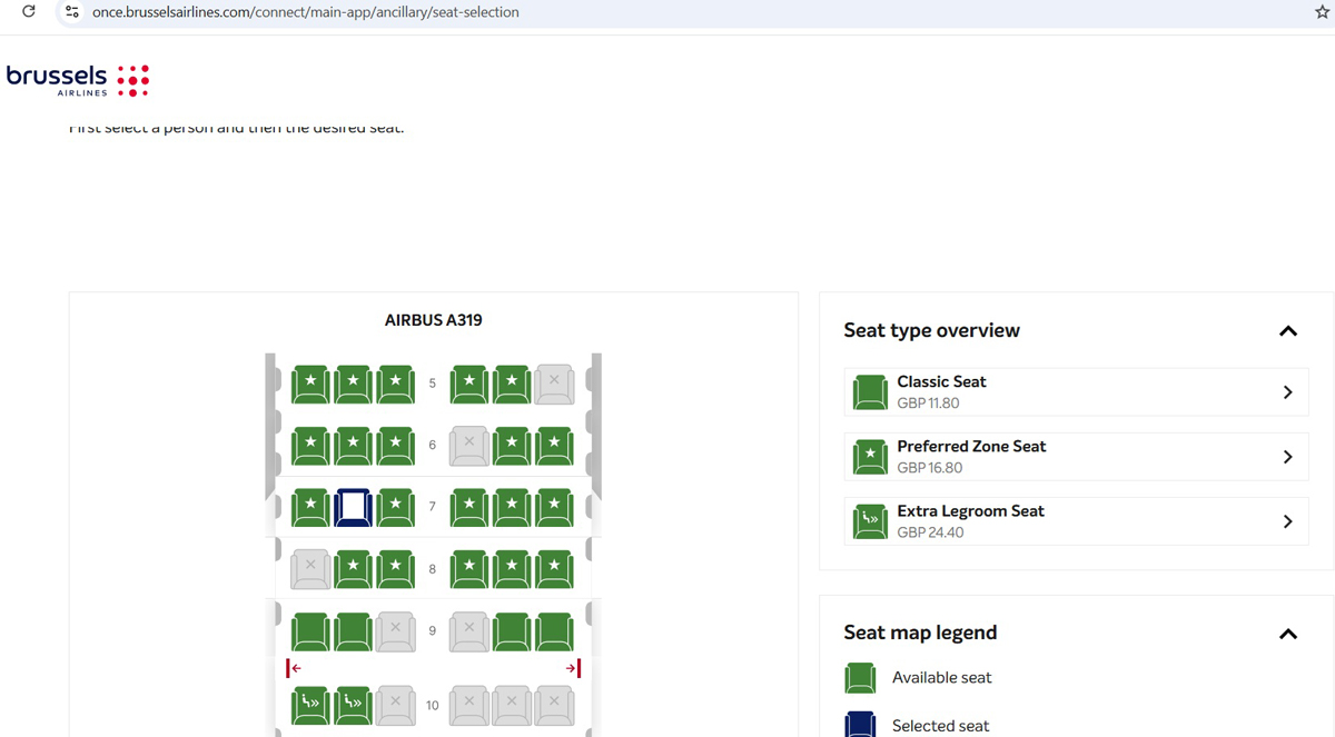 The system had automatically assigned a middle seat for me and any other selection on the seat map would incur a fee. Being such a short flight across the Channel, it would only be painful for a limited amount of time so I let it be. I also didn't think an upgrade to Business Class would be good value for money either, but their system probably offers this upsale opportunity automatically.