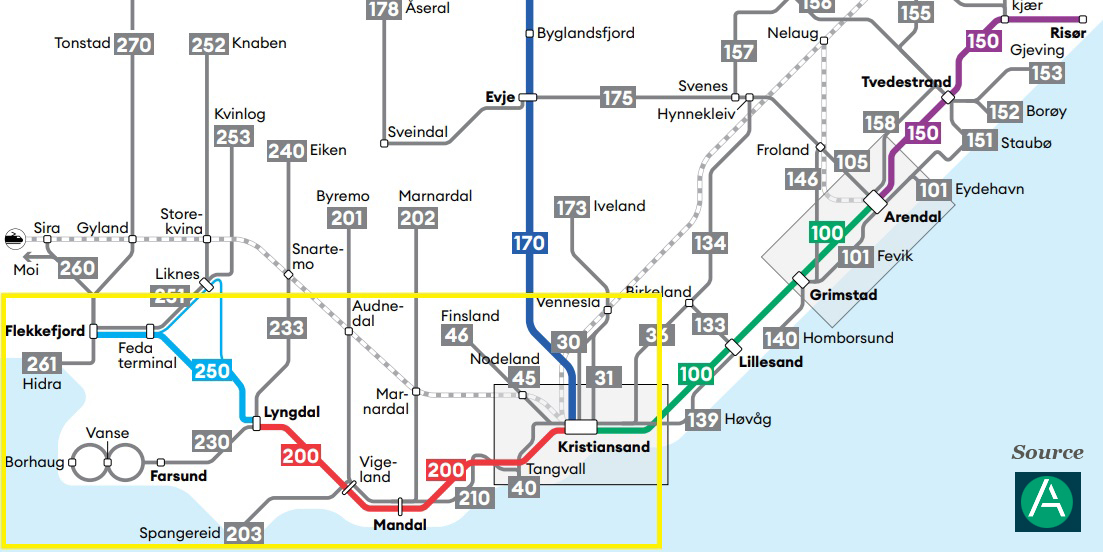 From Kristiansand heading west, I used the 24 hour ticket to visit Mandal and Flekkefjord in 1 day.