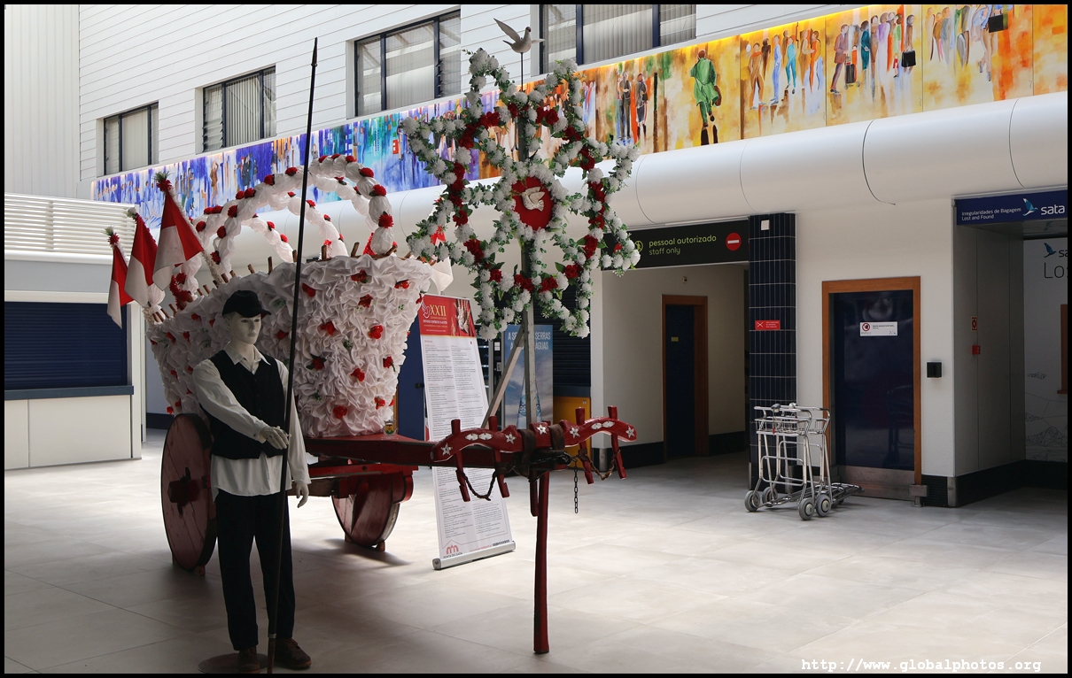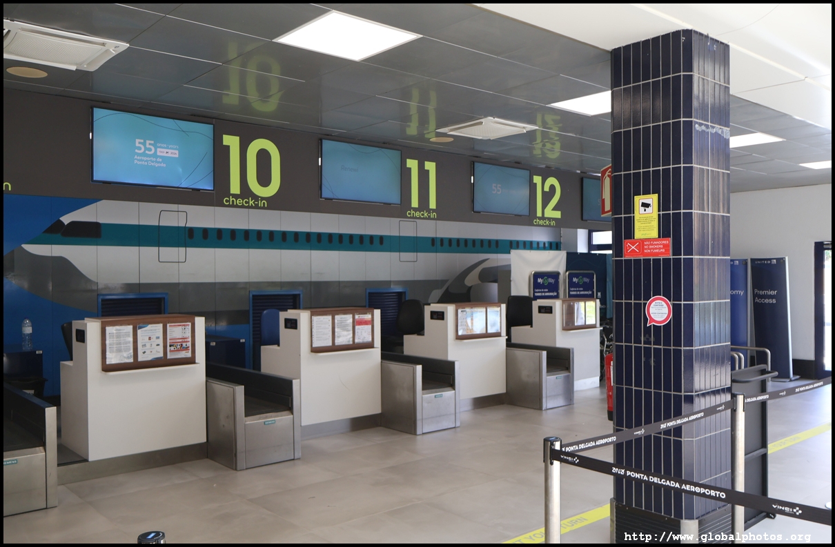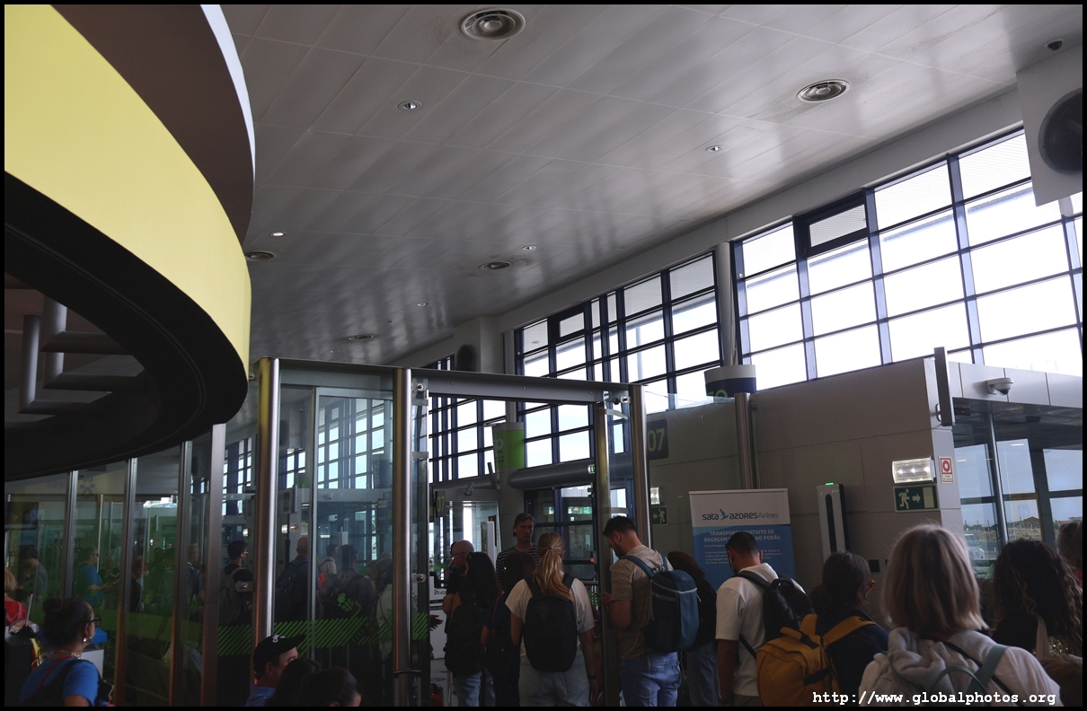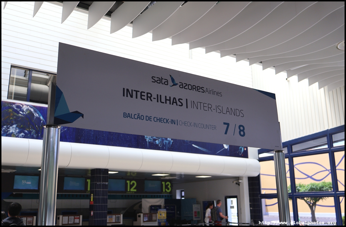 Departures and arrivals share the same floor at this small airport with designated counters at the far end for SATA's inter-island flights. There was a bit of a crowd and processing was slow. Get here early.