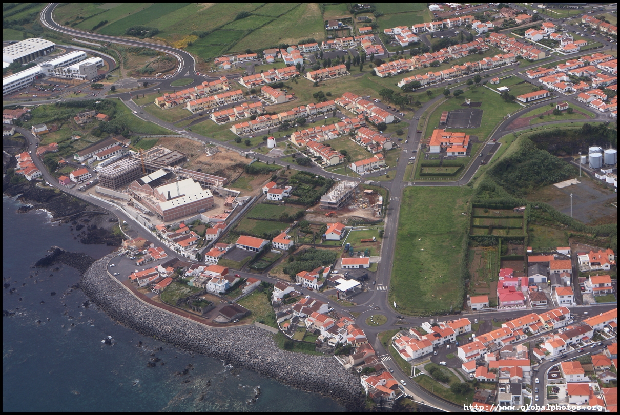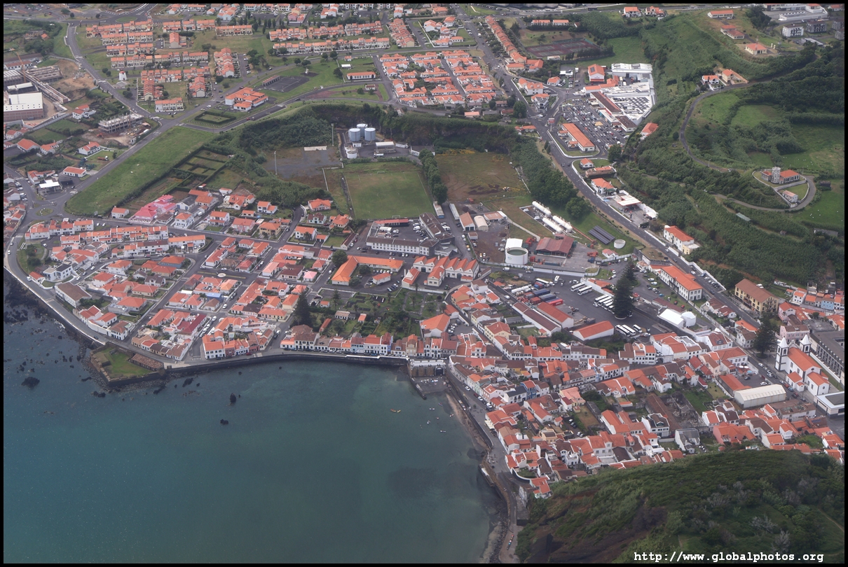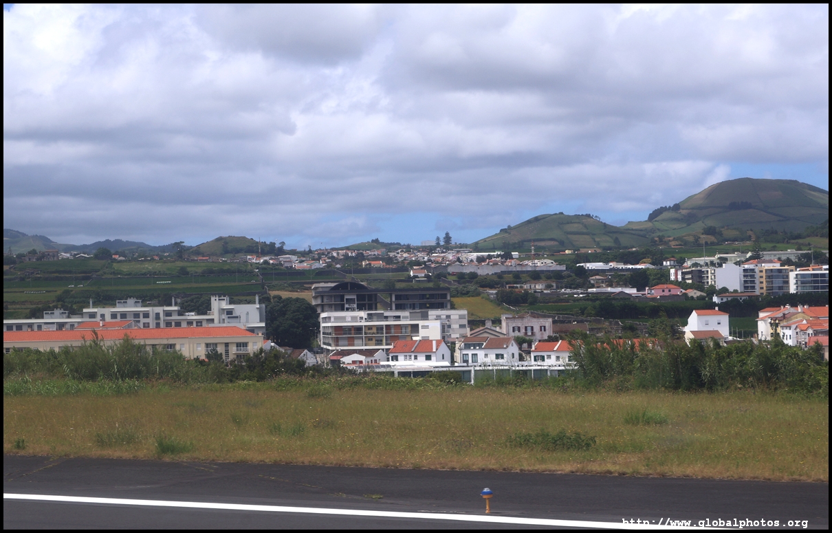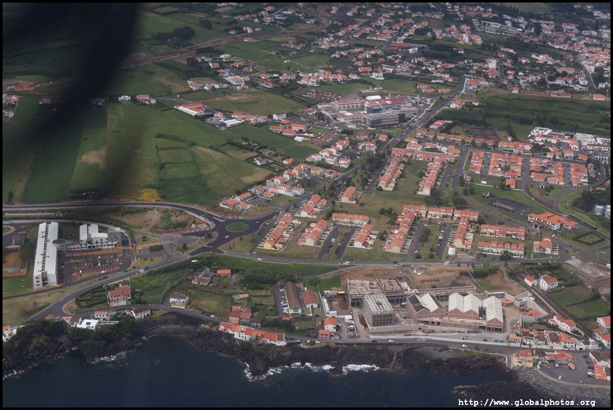 The propellers started at 3:02pm and we pushed out 4 minutes later for an on time departure, taking off towards the west at 3:18pm. Ponta Delgada's centre is just off the airport perimeter.