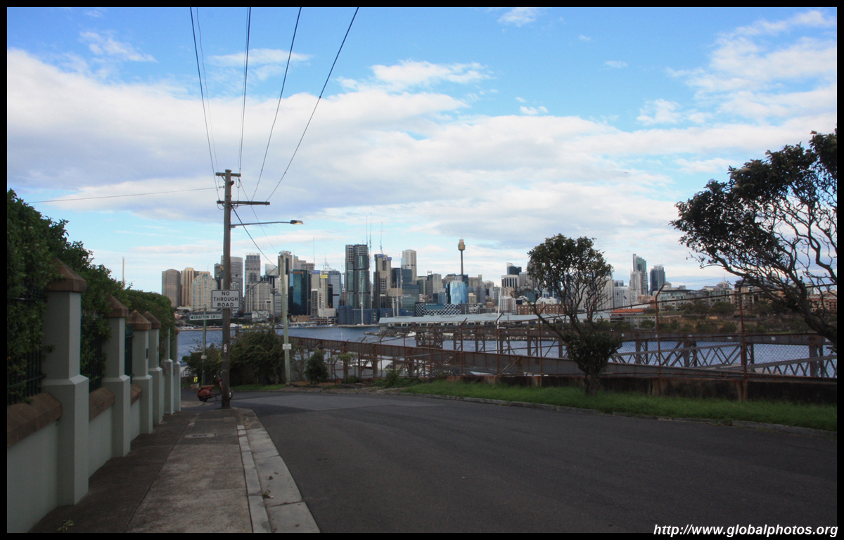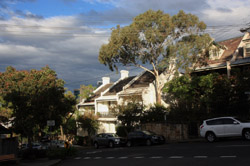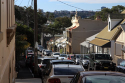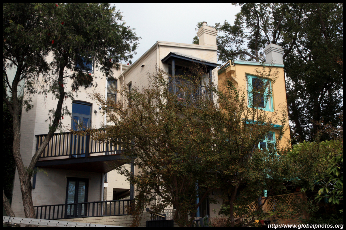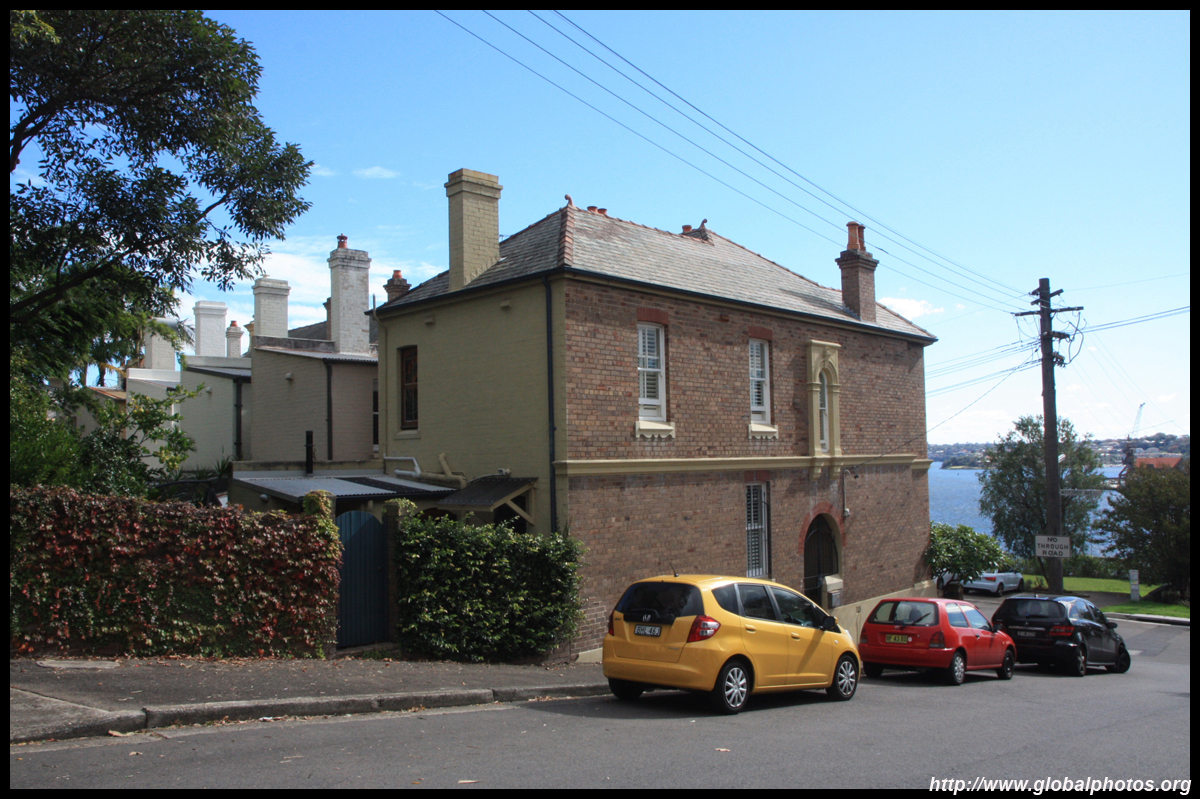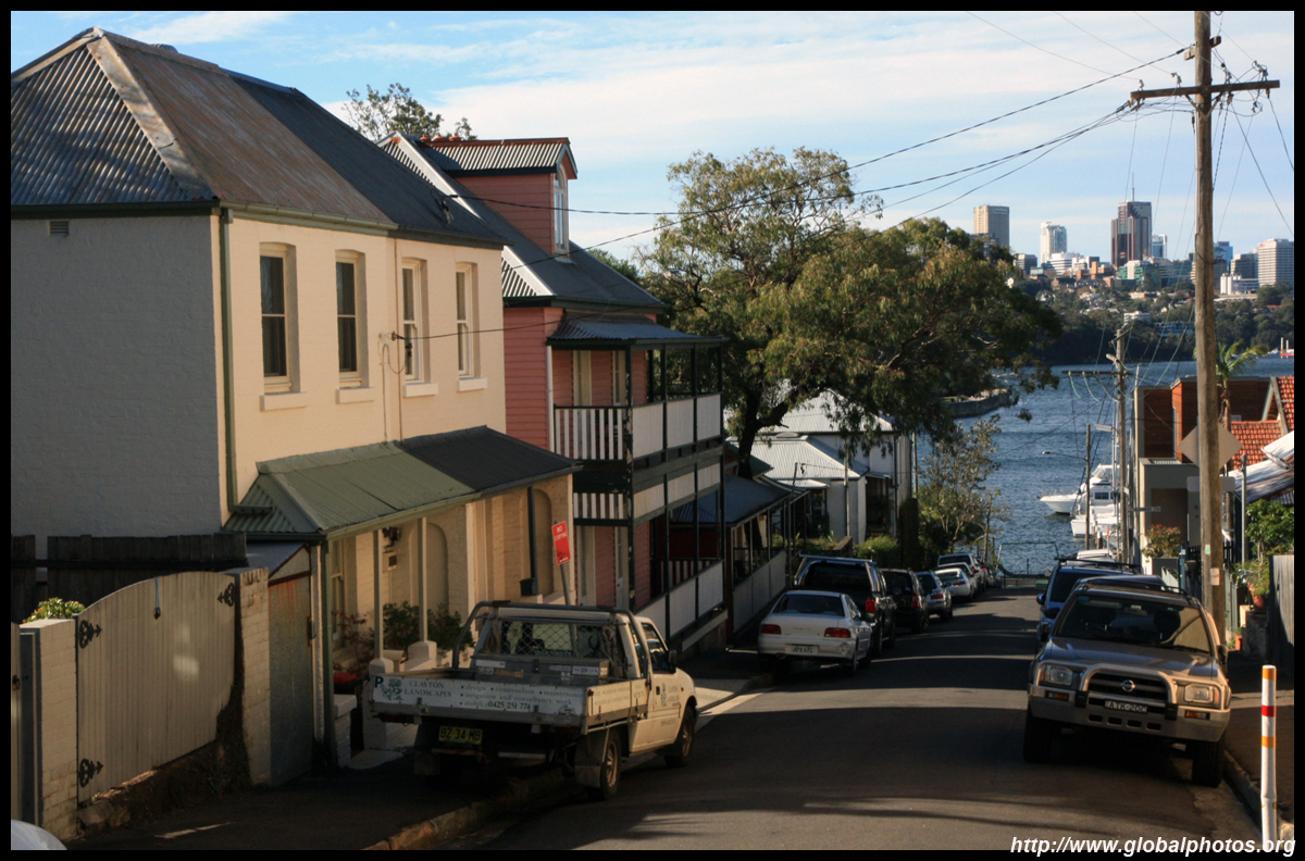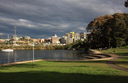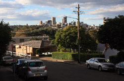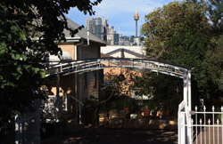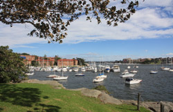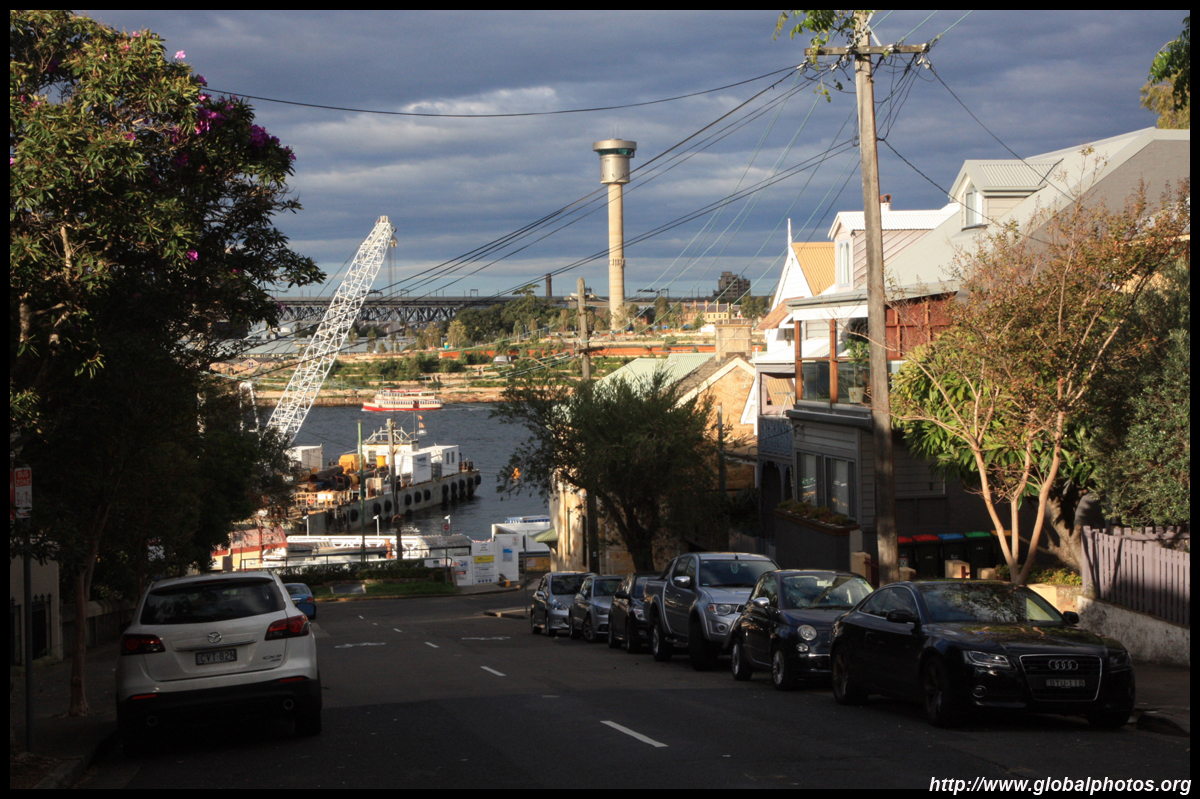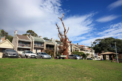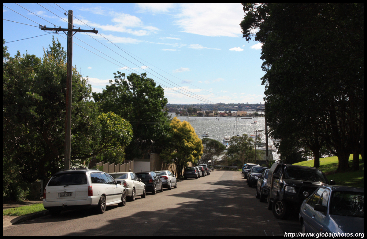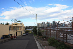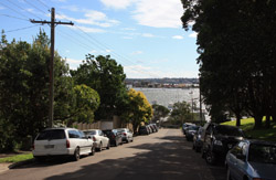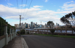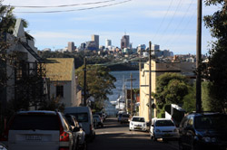 Balmain is surrounded by water. Here in Elkington Park, houses face the Parramatta River and Cockatoo Island in the distance.