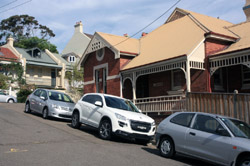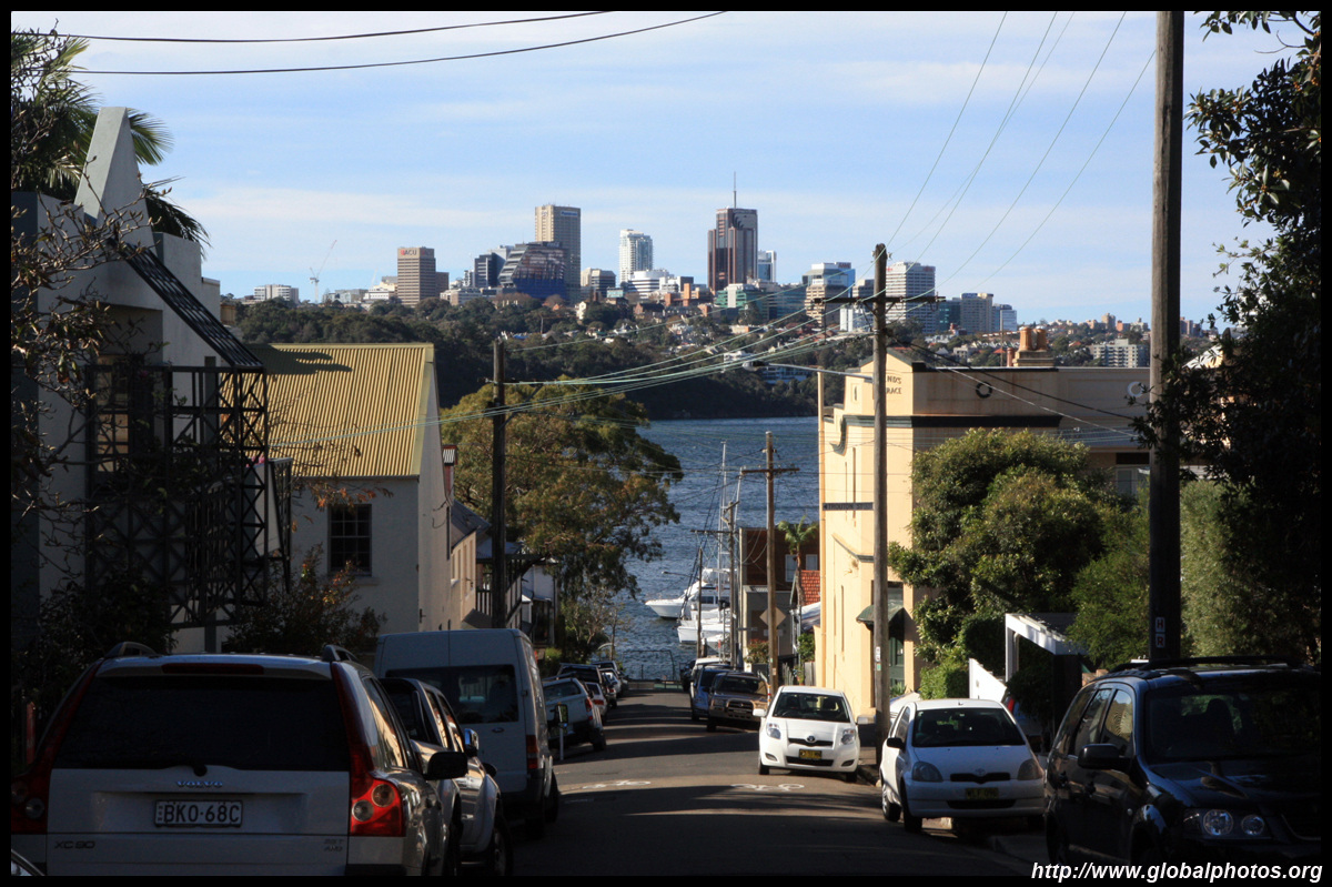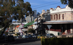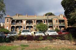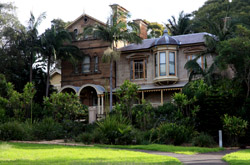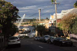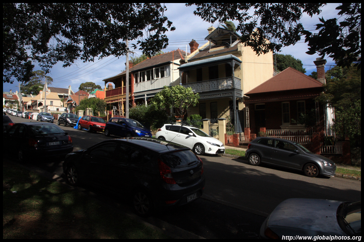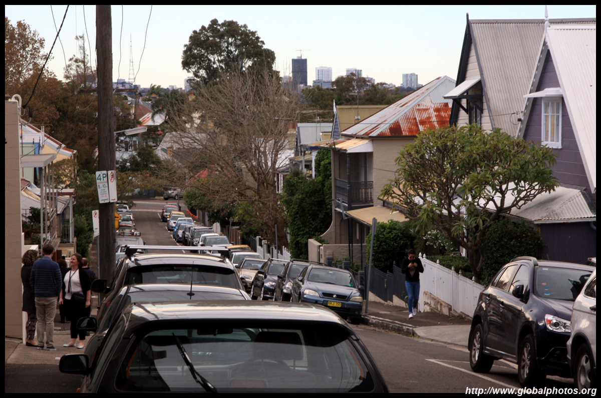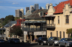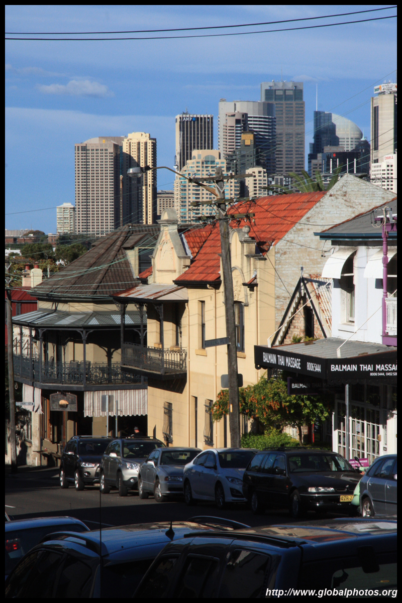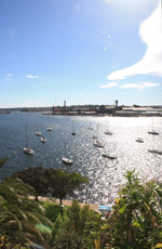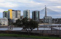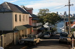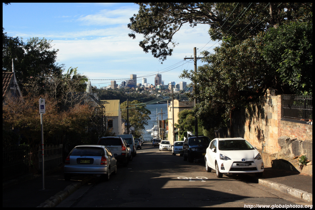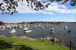 Balmain is surrounded by water. Here in Elkington Park, houses face the Parramatta River and Cockatoo Island in the distance.