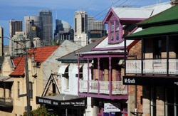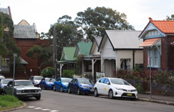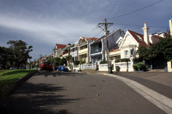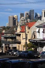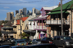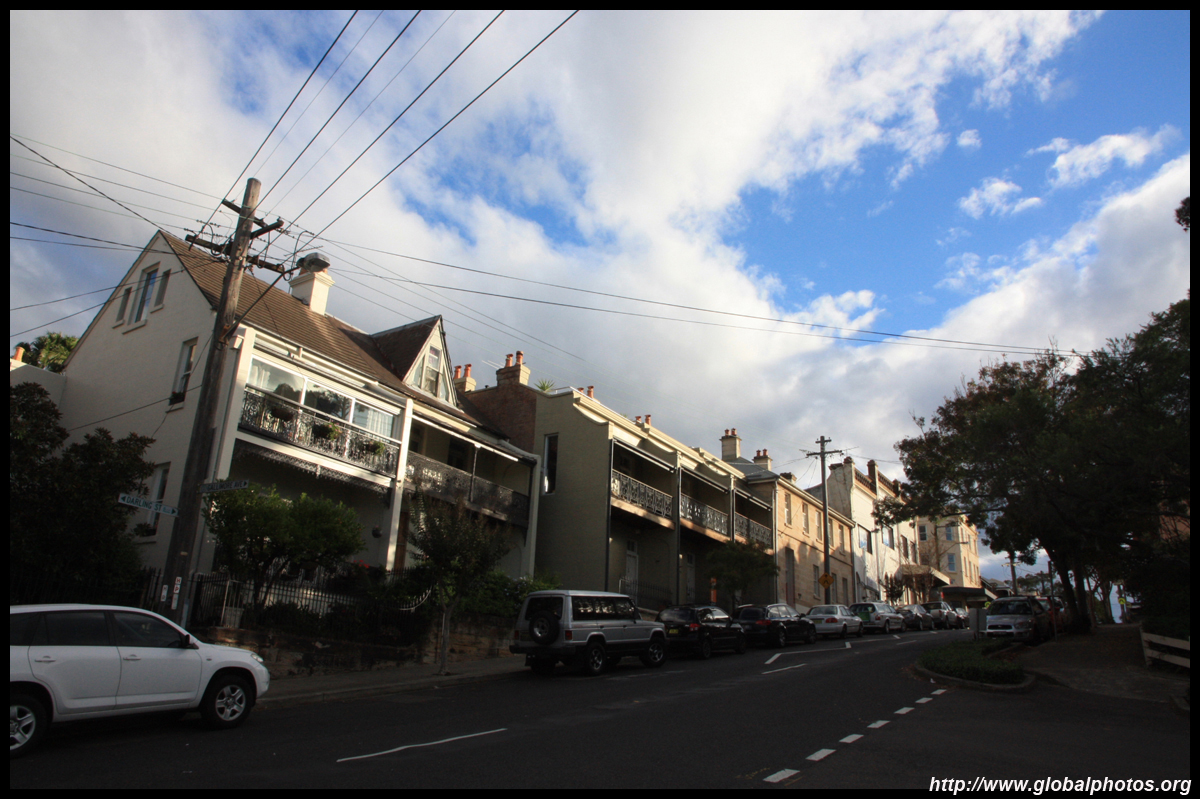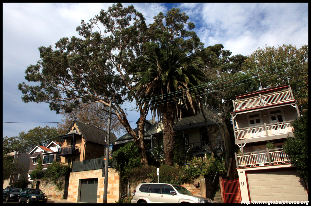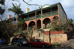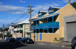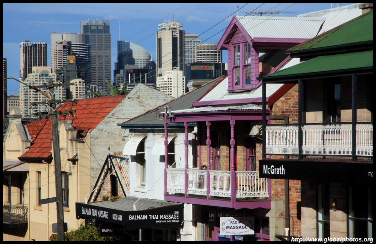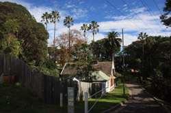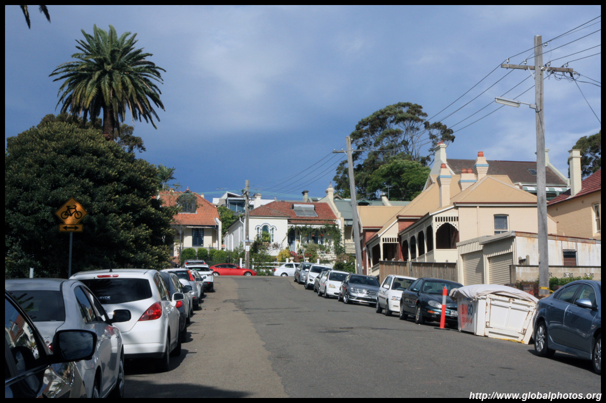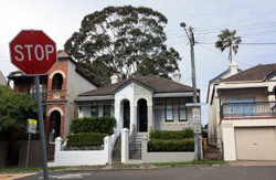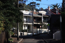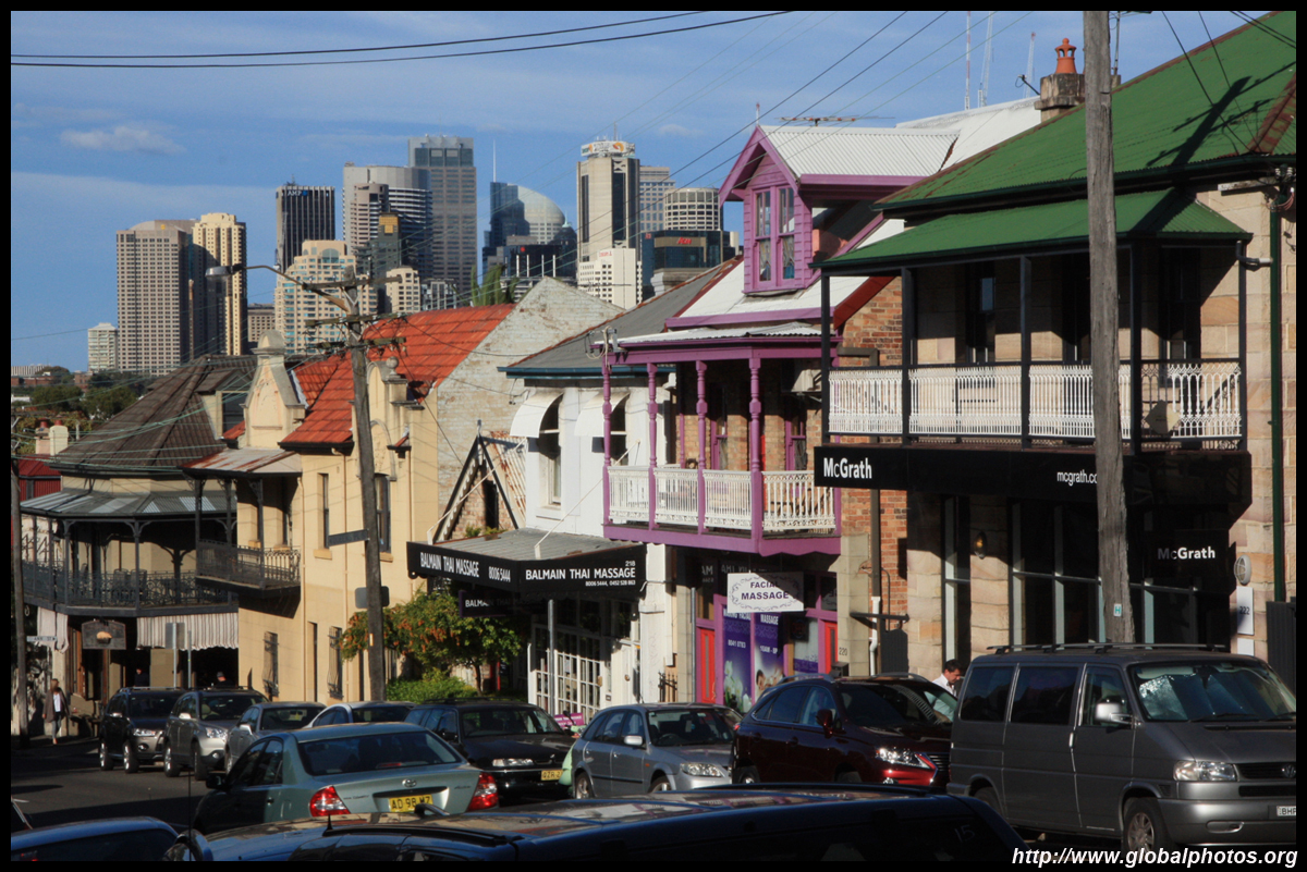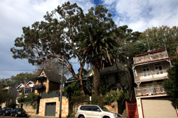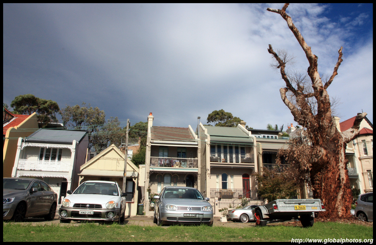 Balmain is surrounded by water. Here in Elkington Park, houses face the Parramatta River and Cockatoo Island in the distance.
