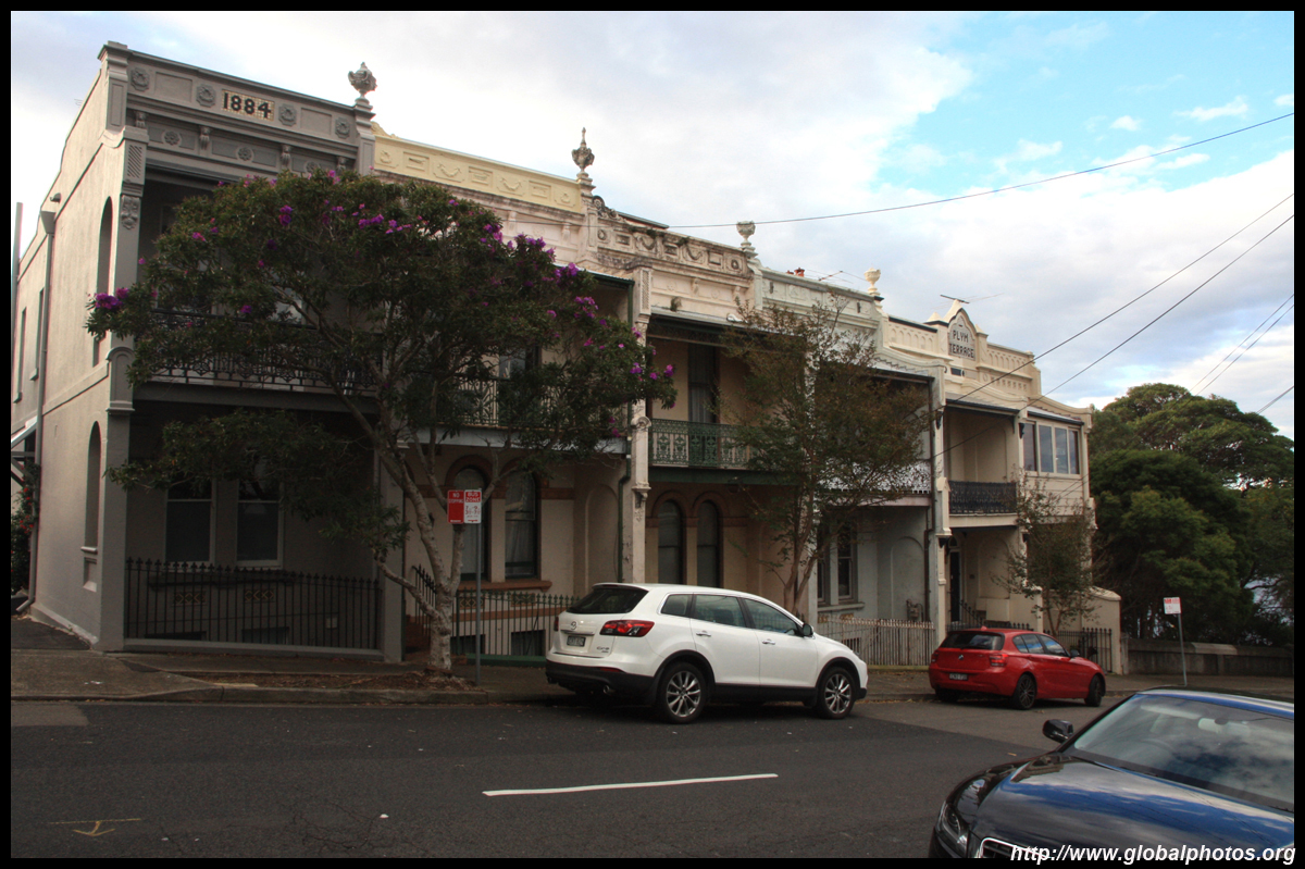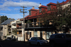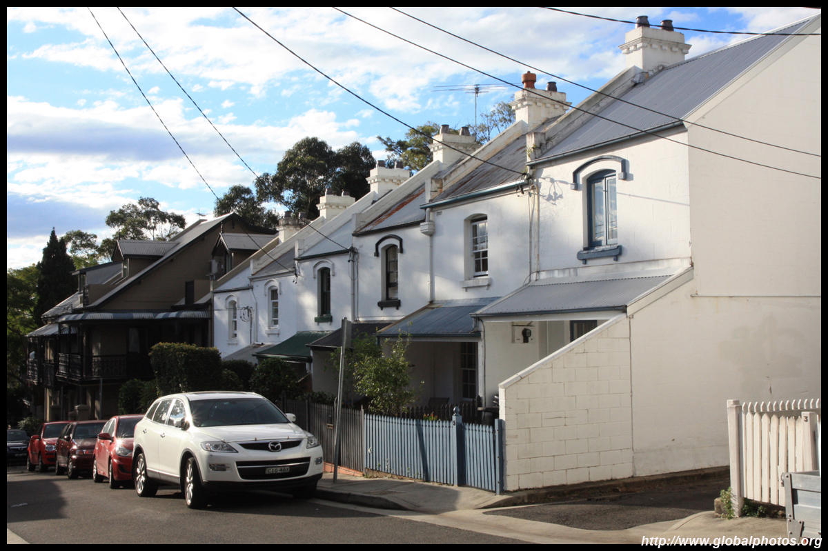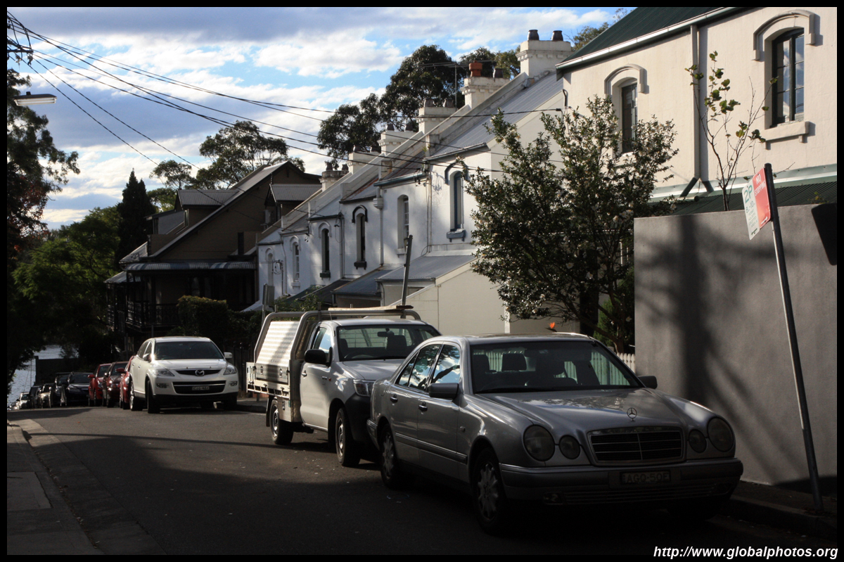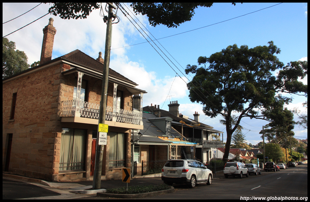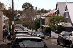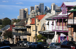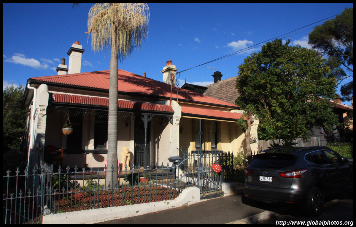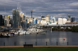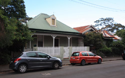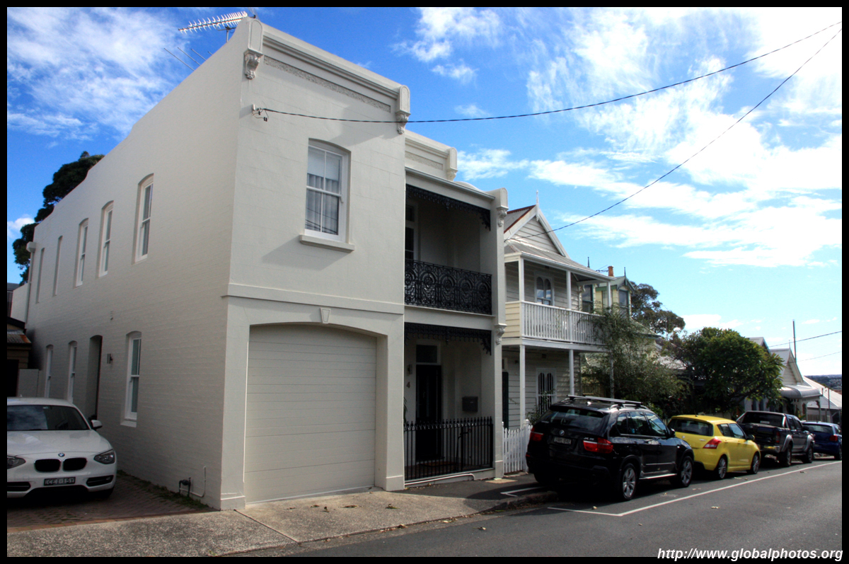 Balmain is surrounded by water. Here in Elkington Park, houses face the Parramatta River and Cockatoo Island in the distance.