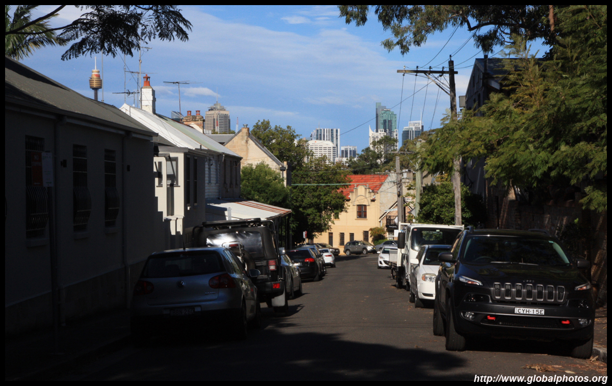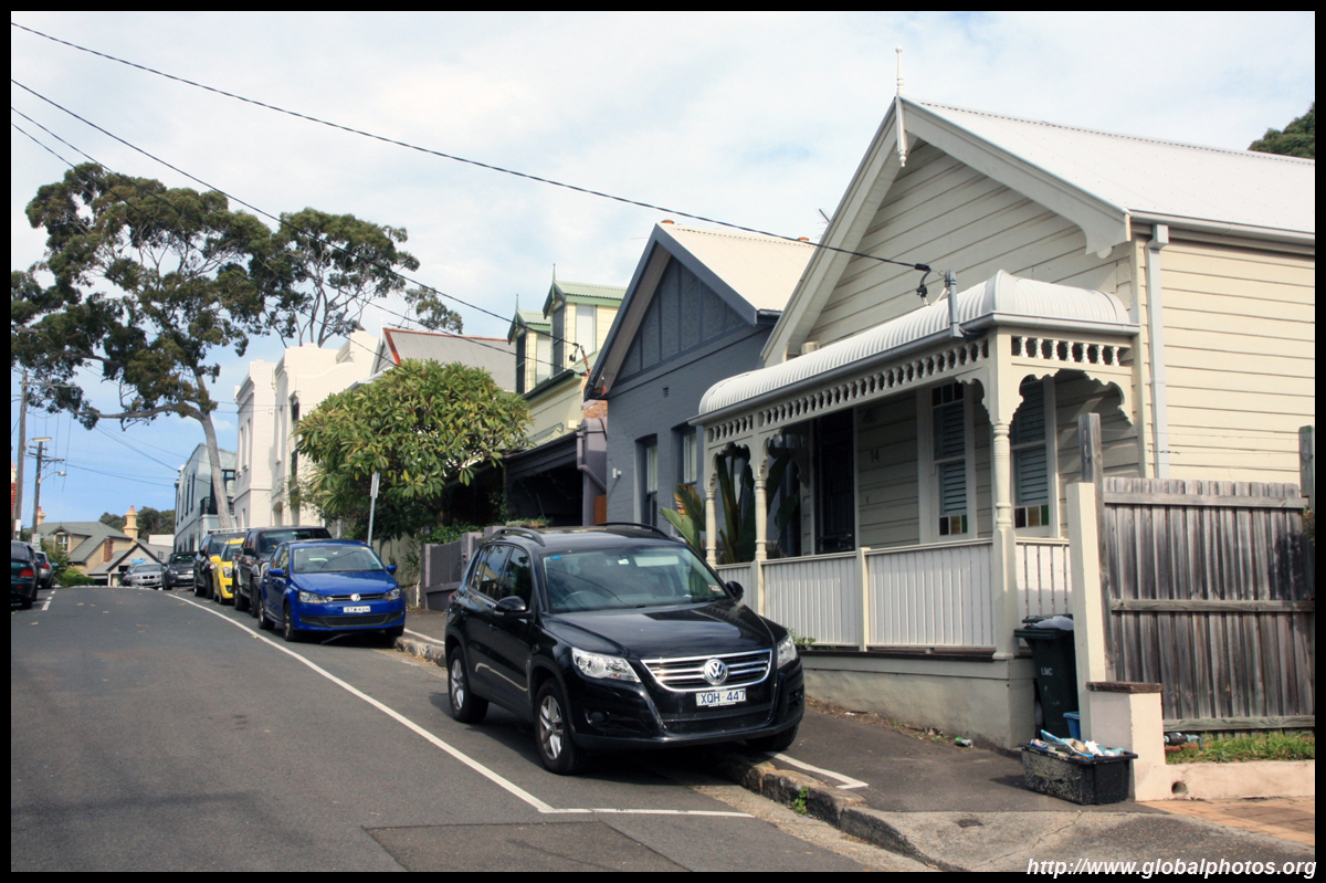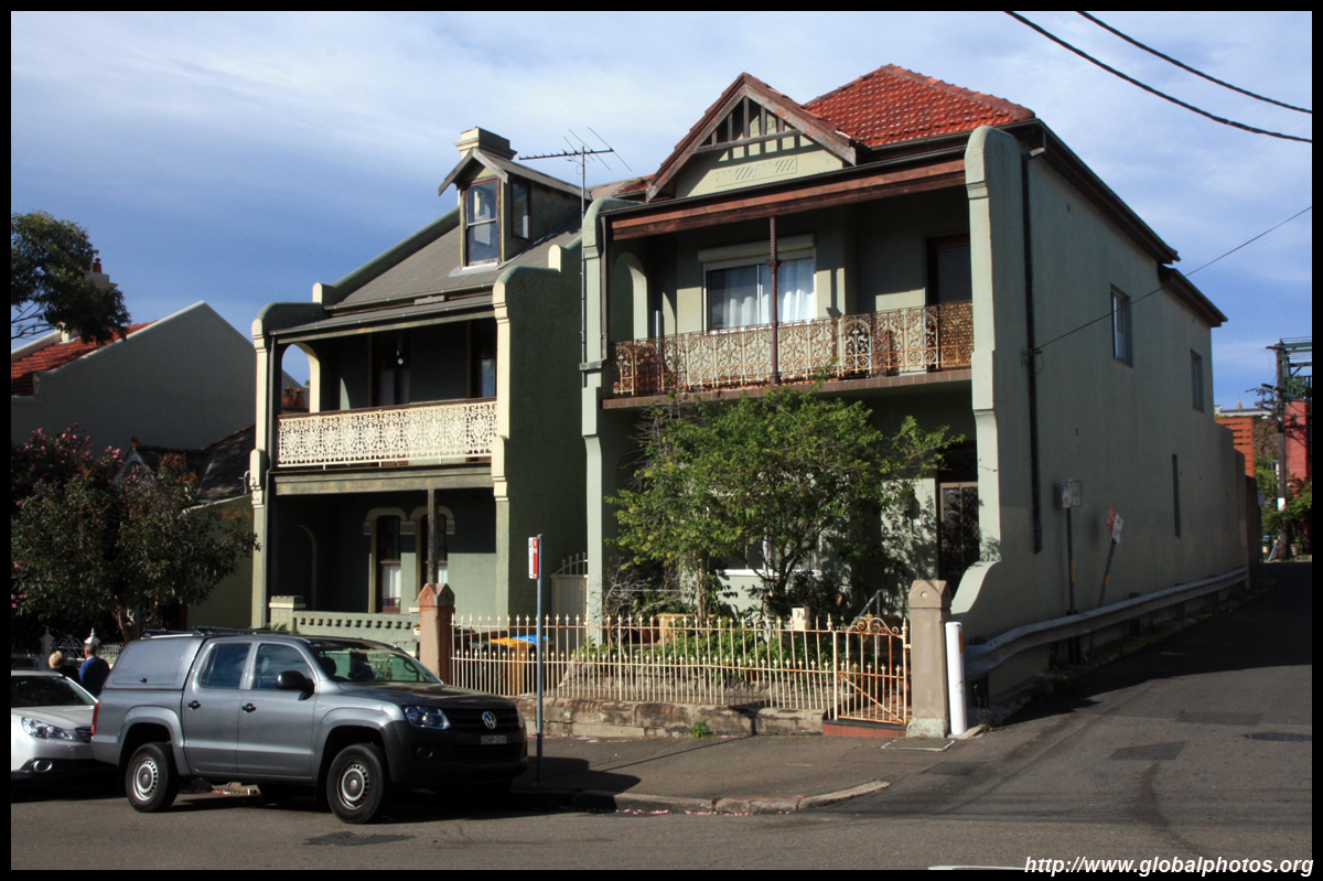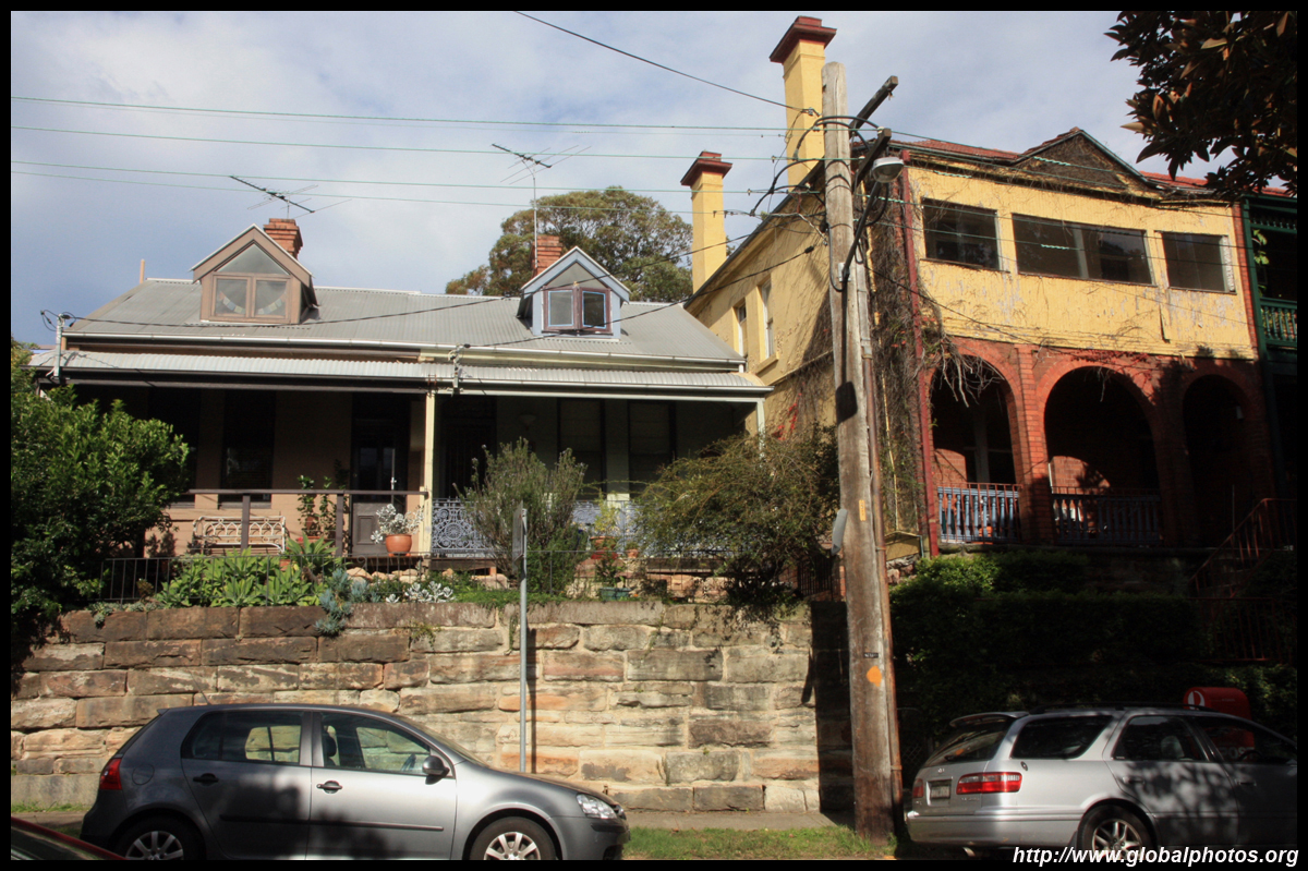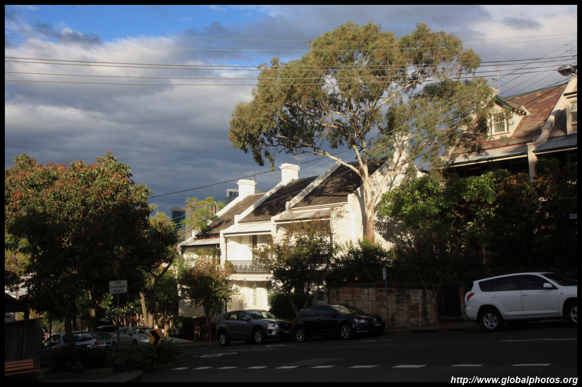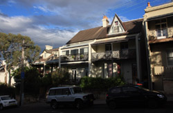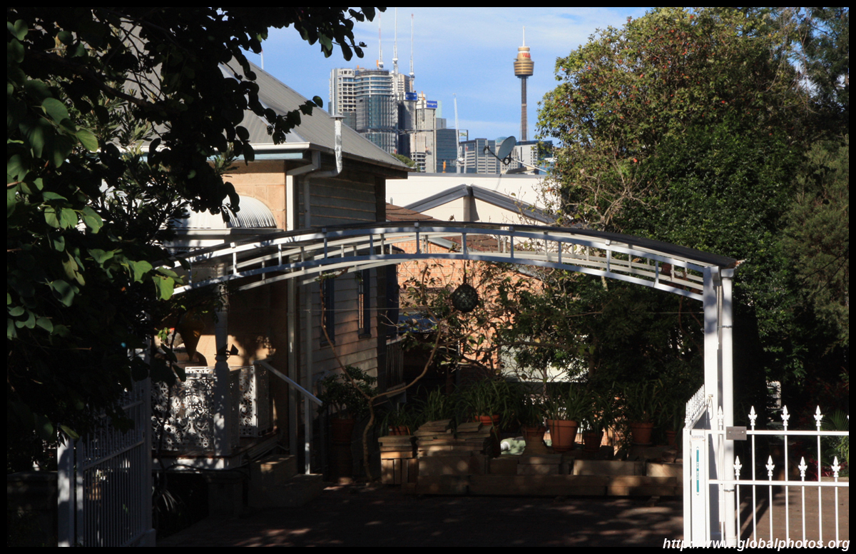 Balmain is surrounded by water. Here in Elkington Park, houses face the Parramatta River and Cockatoo Island in the distance.