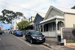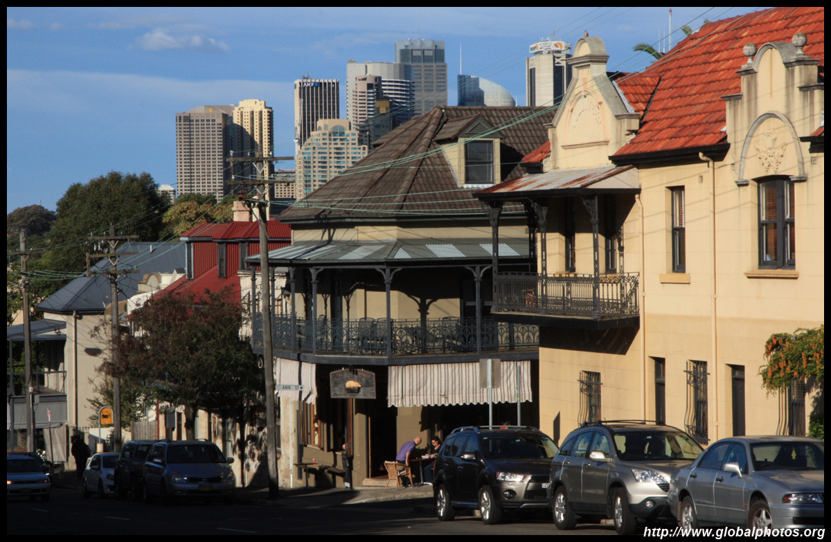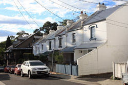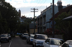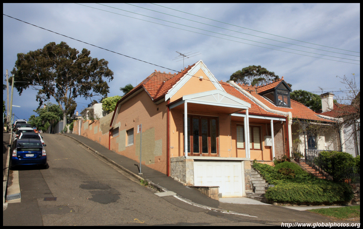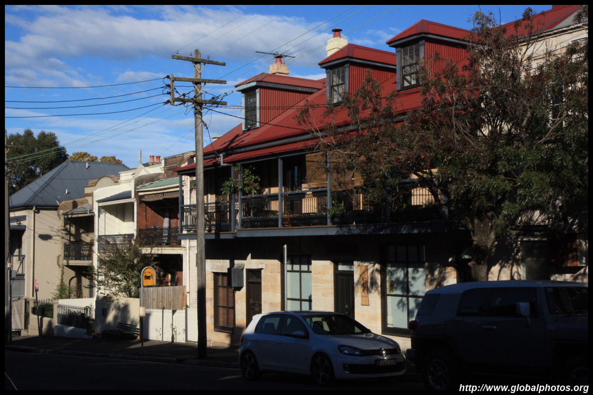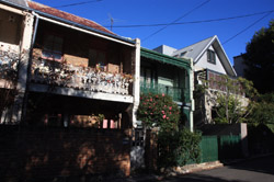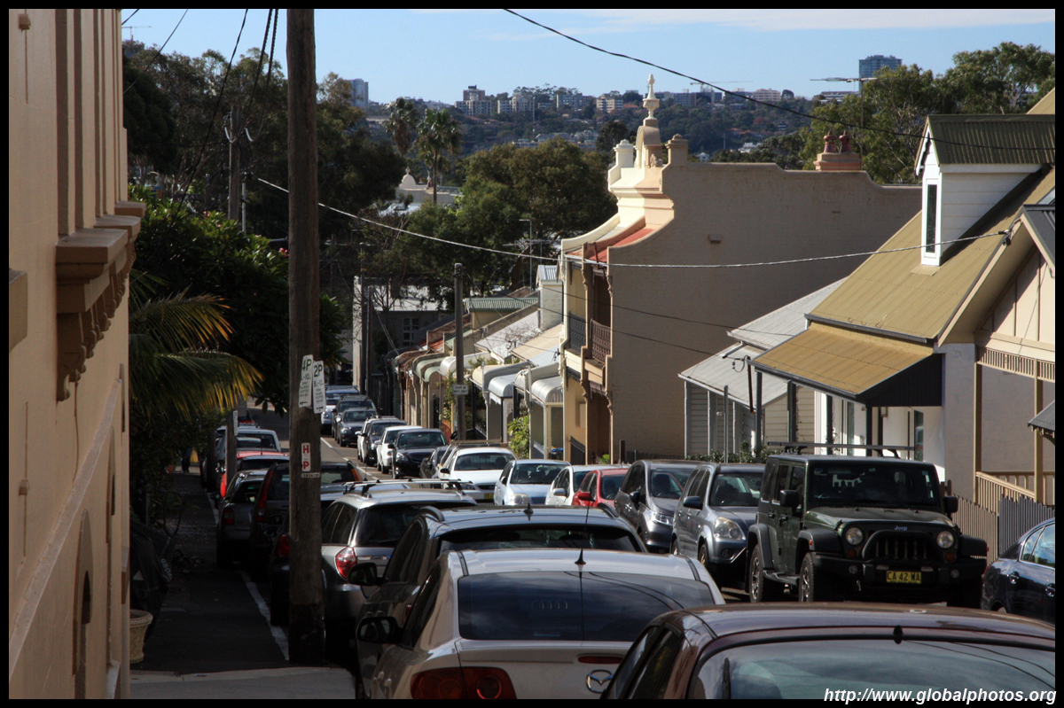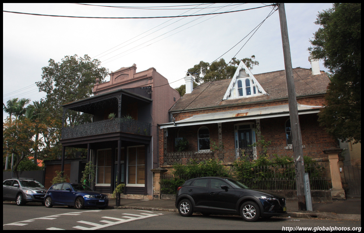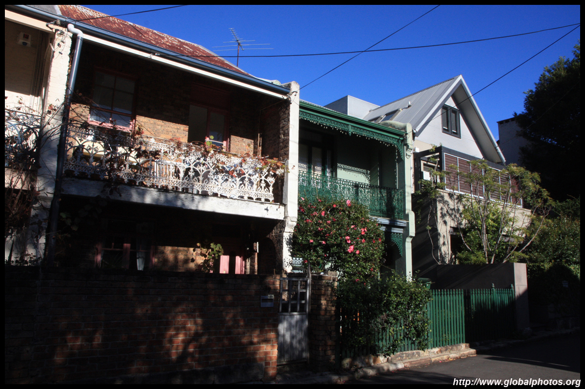 Balmain is surrounded by water. Here in Elkington Park, houses face the Parramatta River and Cockatoo Island in the distance.