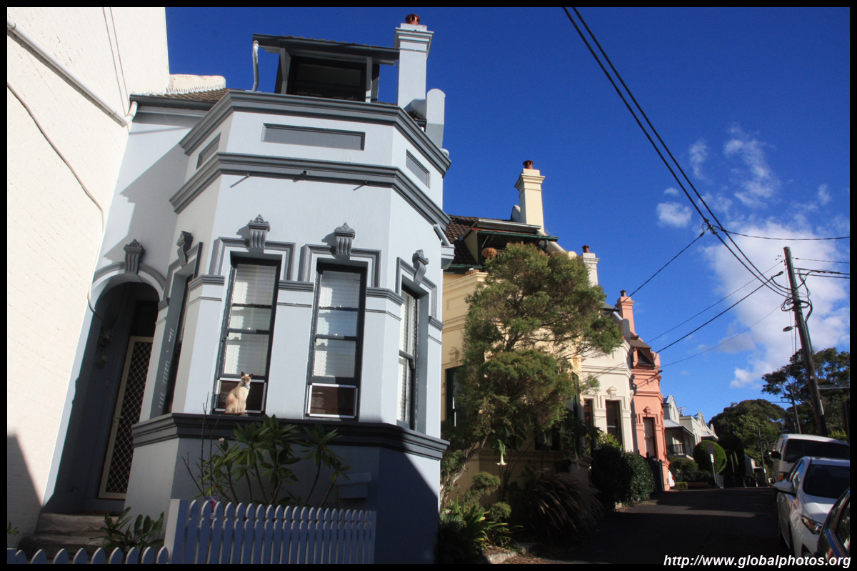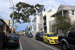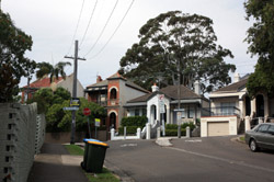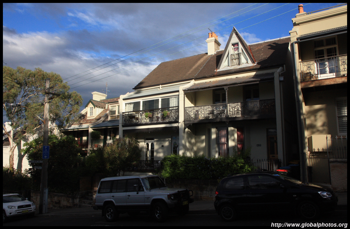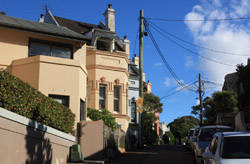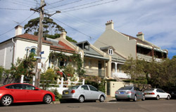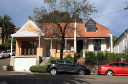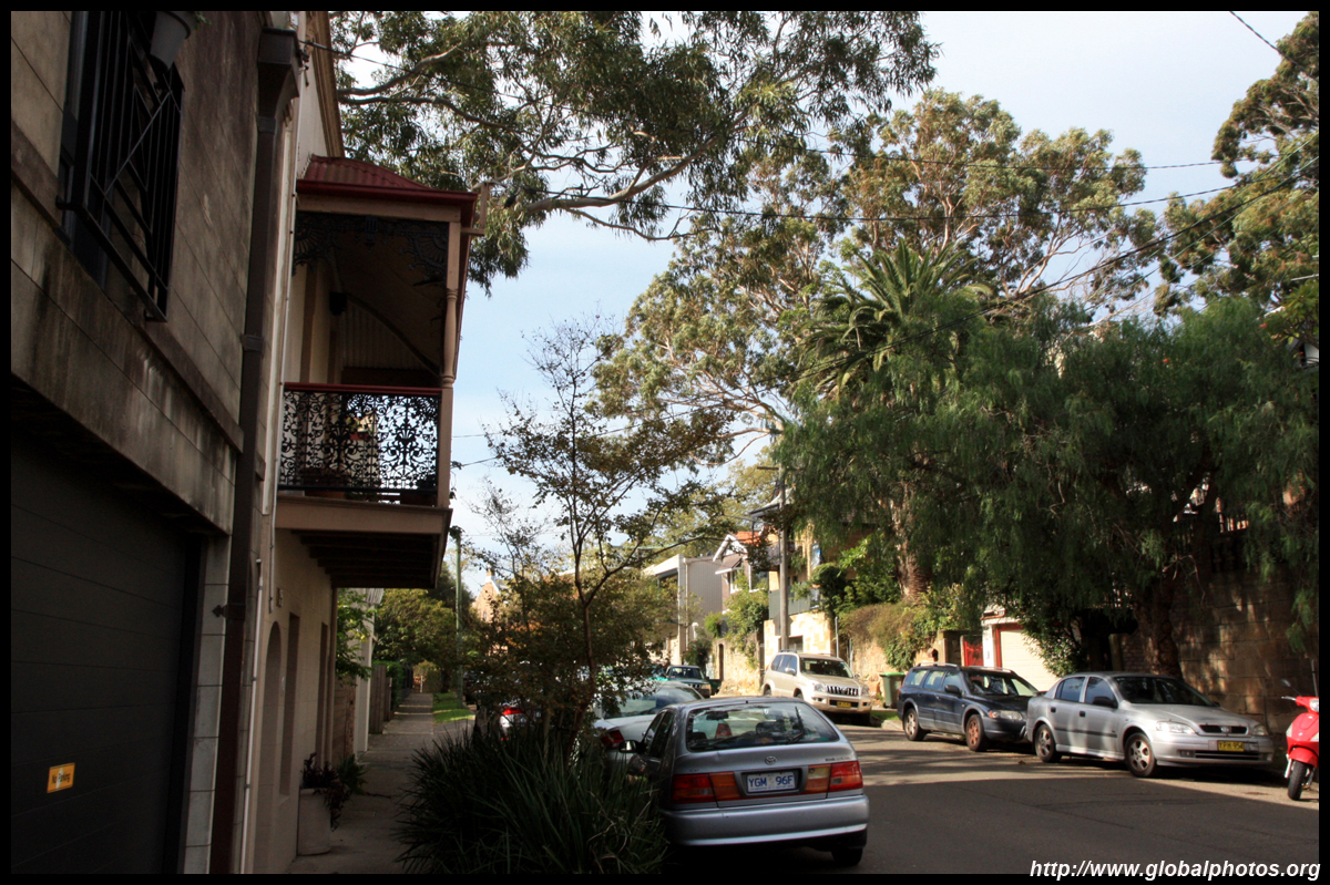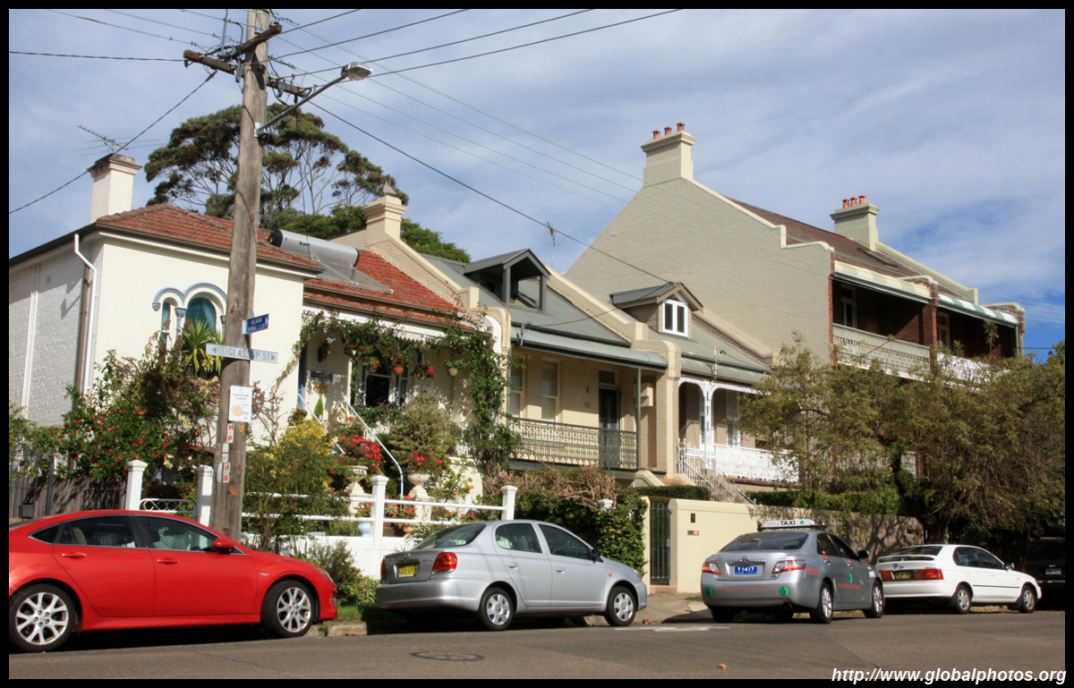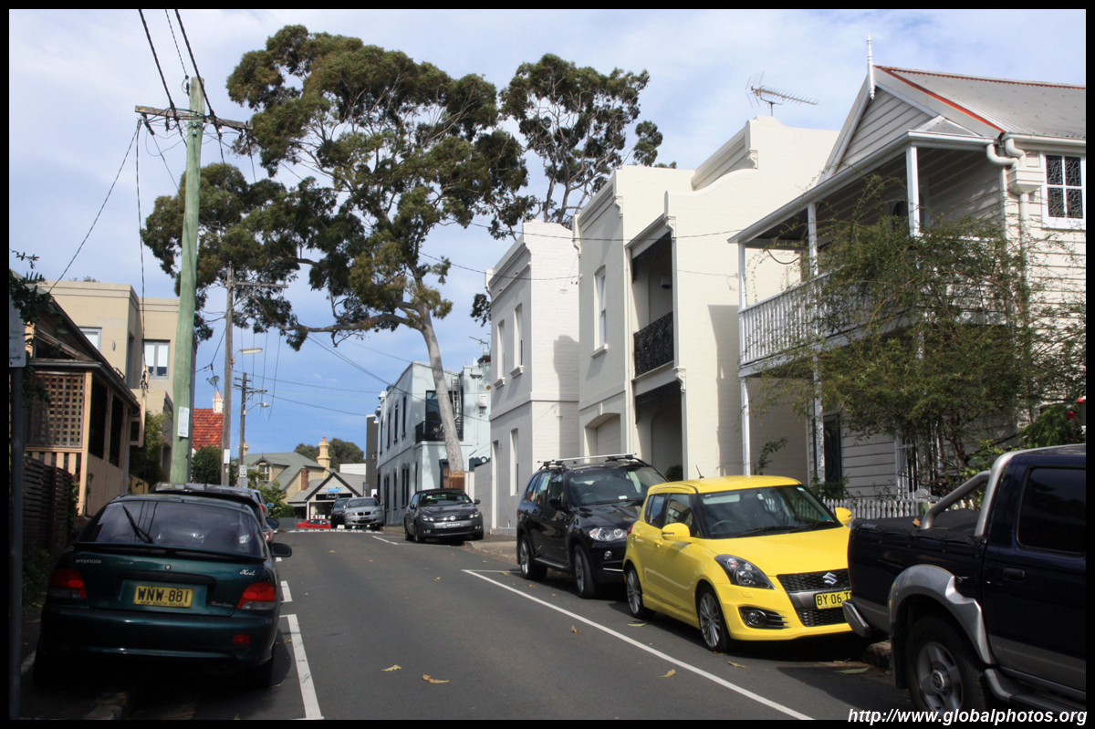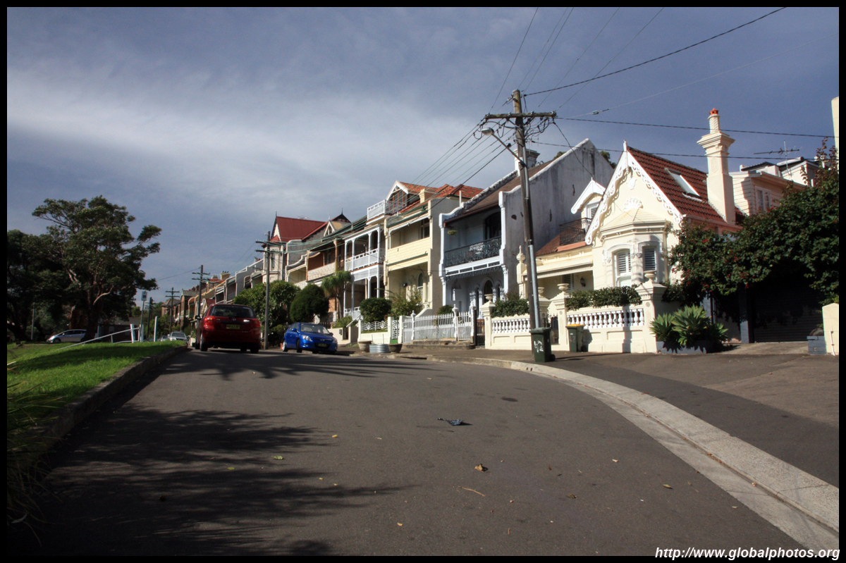 Balmain is surrounded by water. Here in Elkington Park, houses face the Parramatta River and Cockatoo Island in the distance.