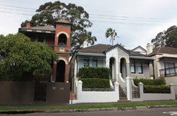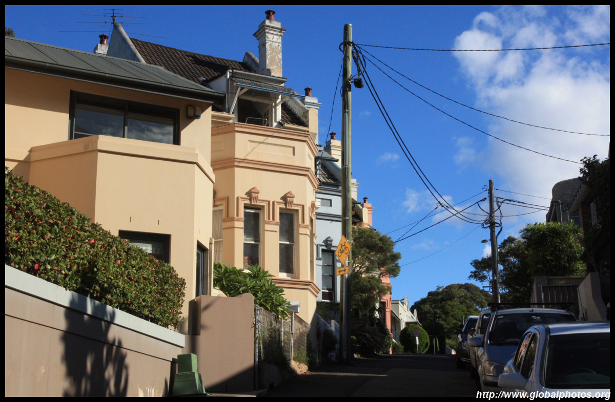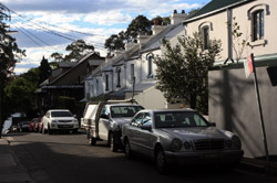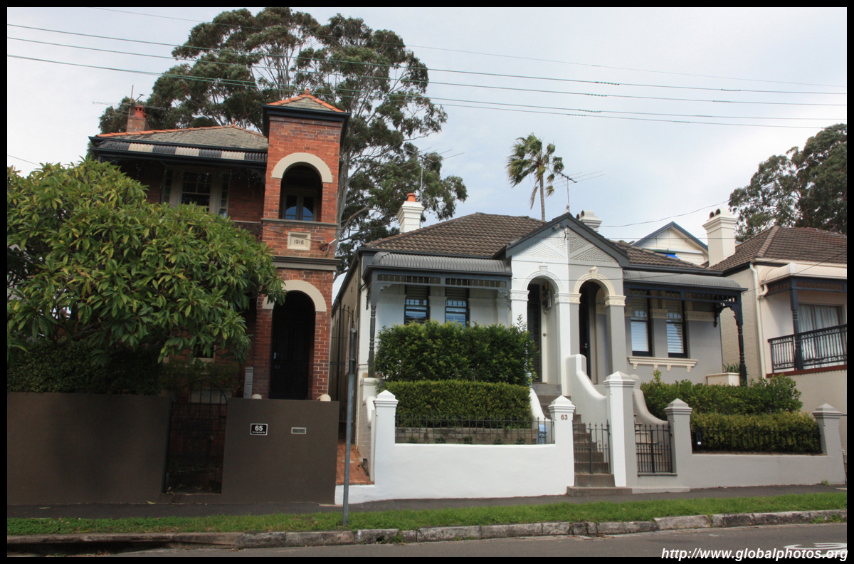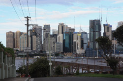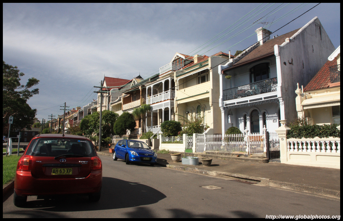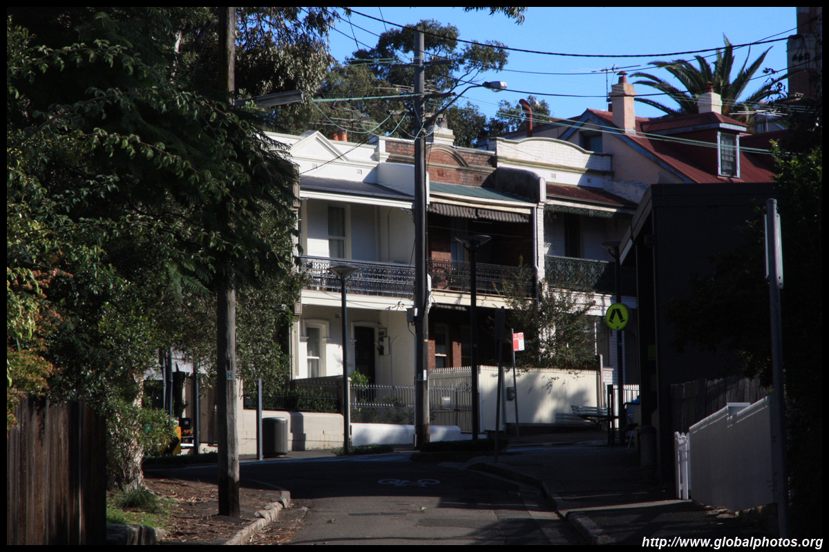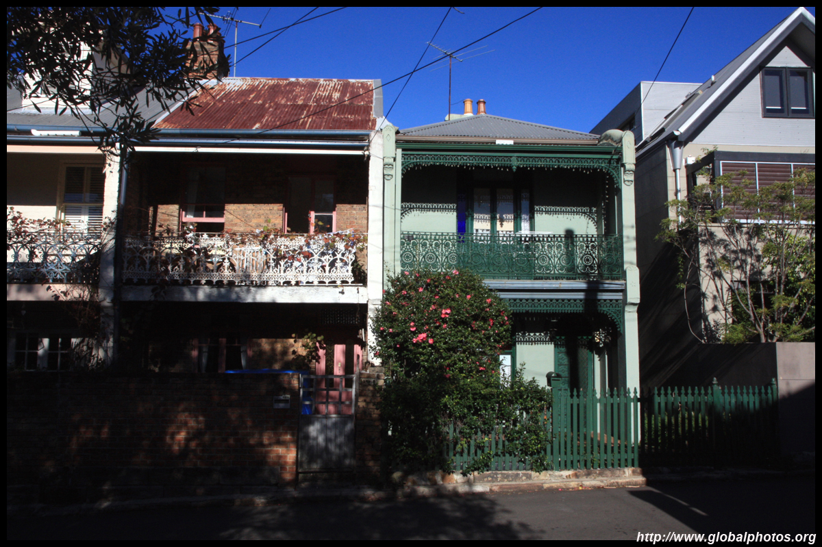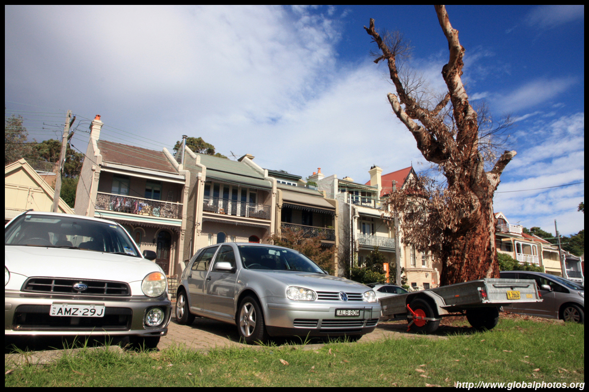 Balmain is surrounded by water. Here in Elkington Park, houses face the Parramatta River and Cockatoo Island in the distance.