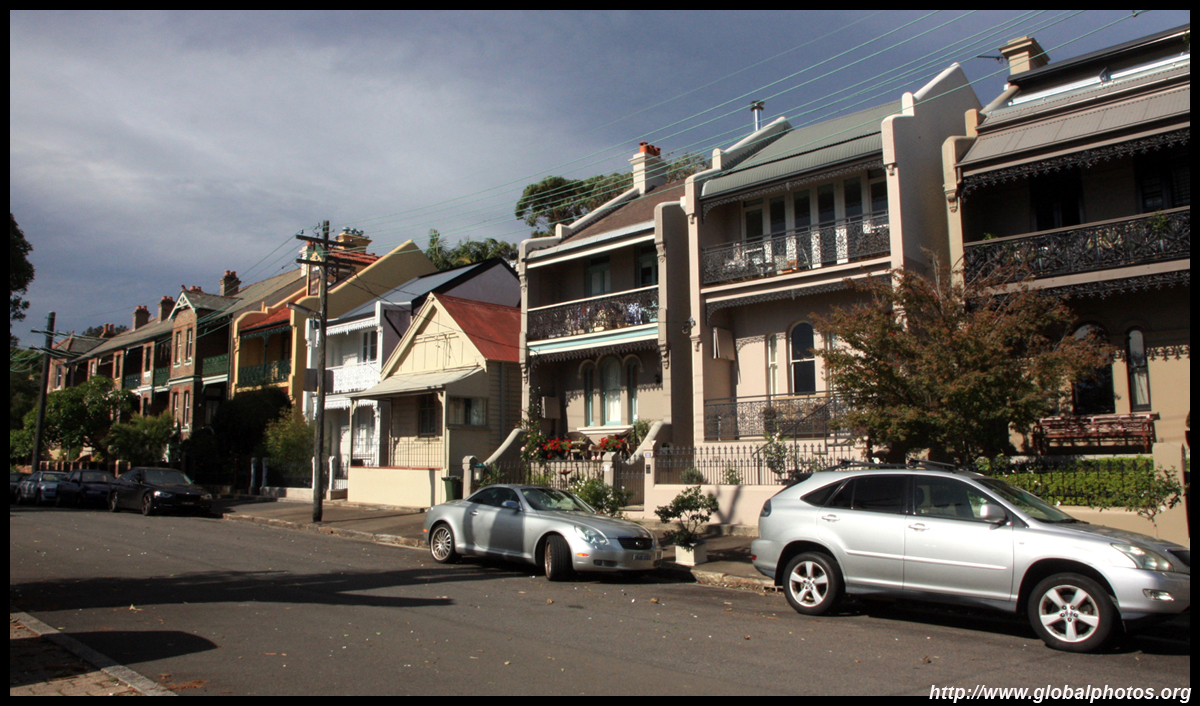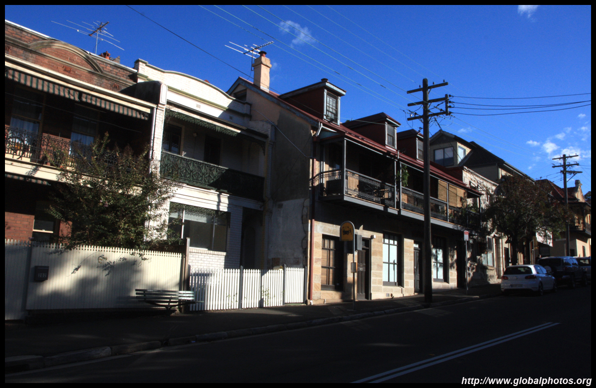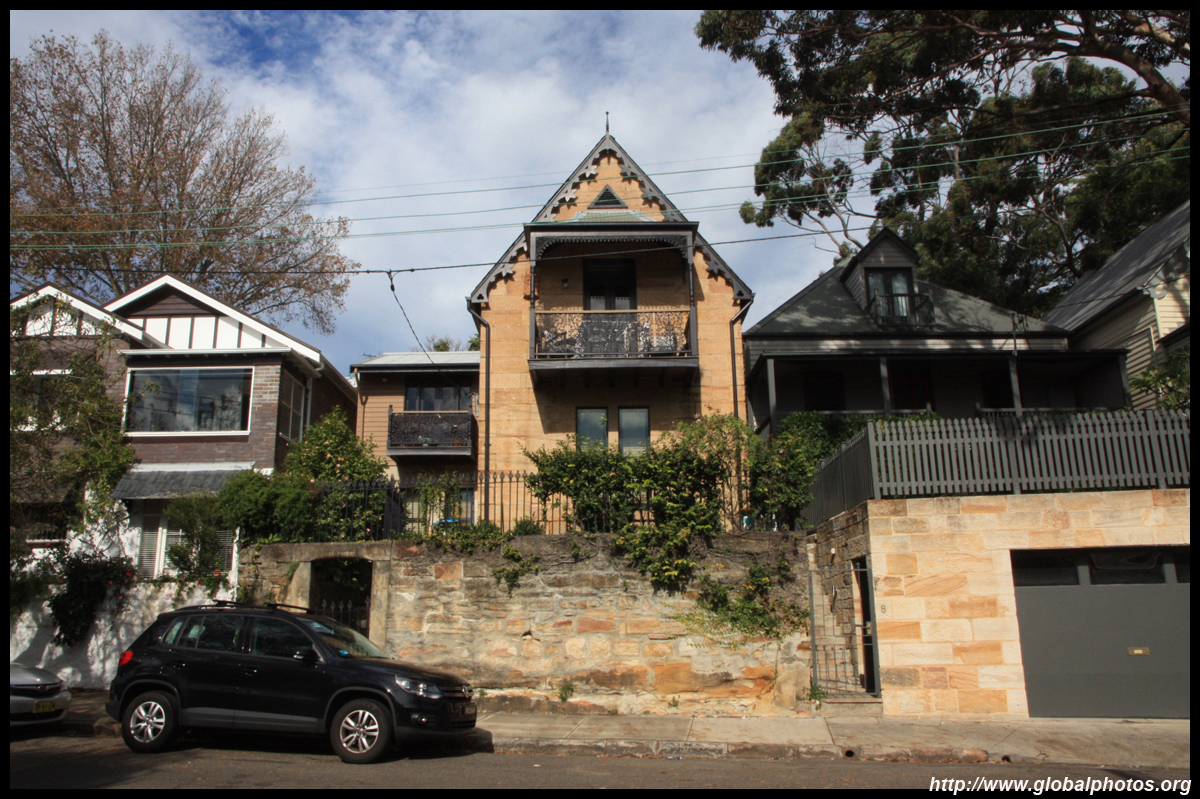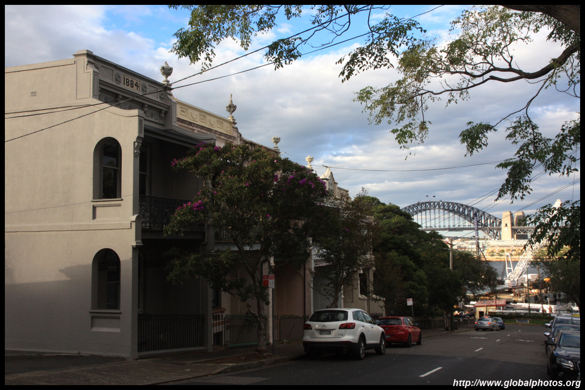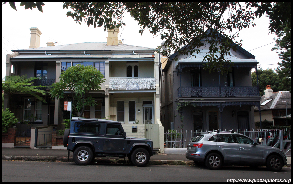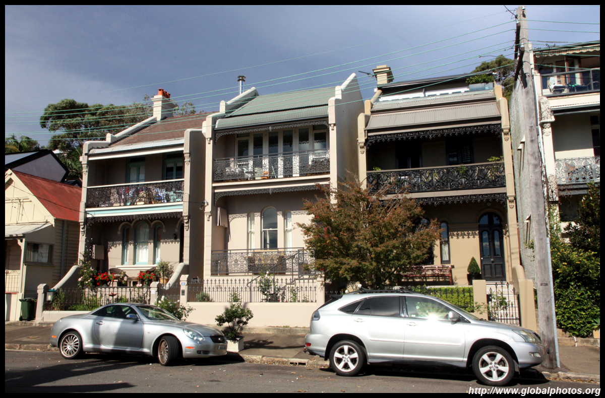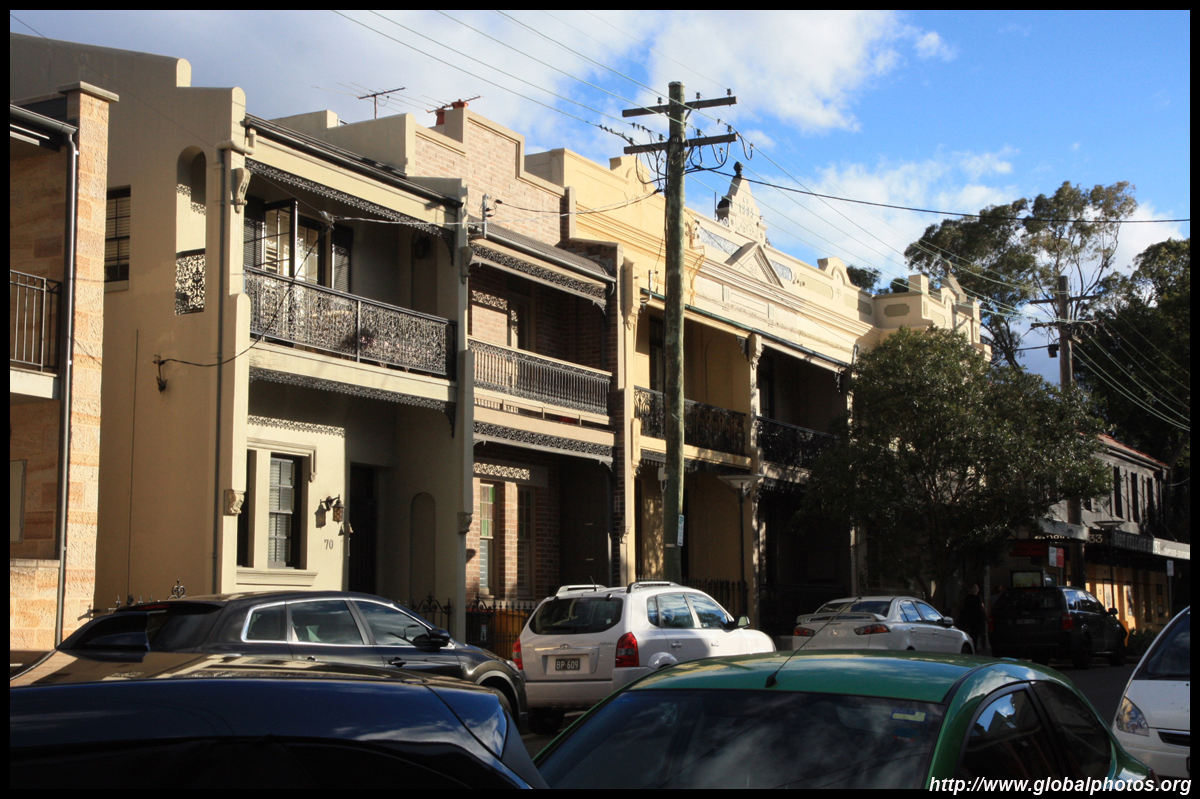 Balmain is surrounded by water. Here in Elkington Park, houses face the Parramatta River and Cockatoo Island in the distance.