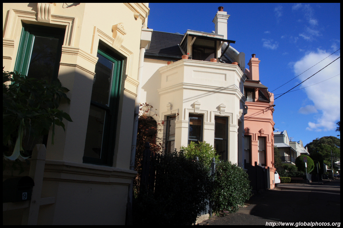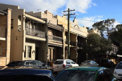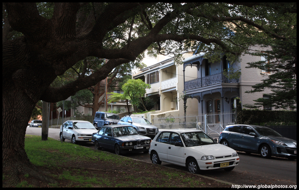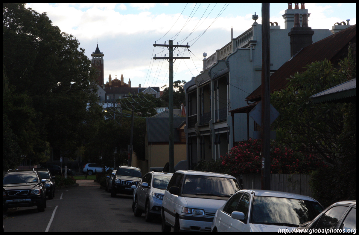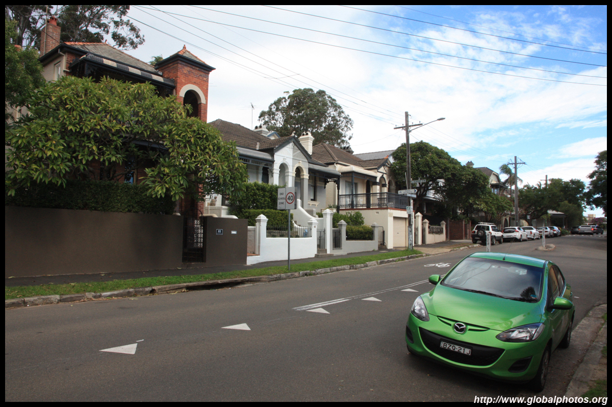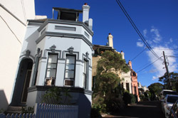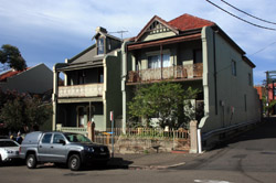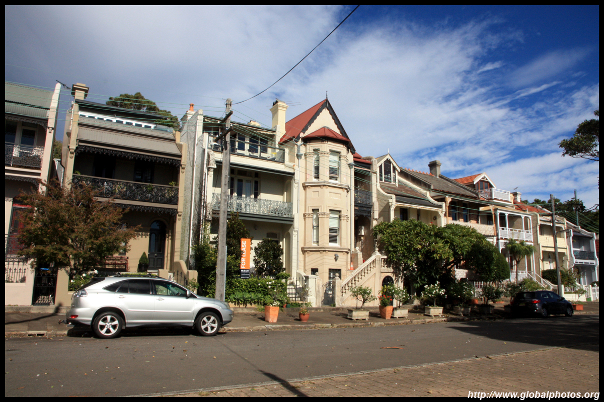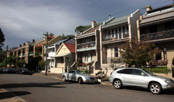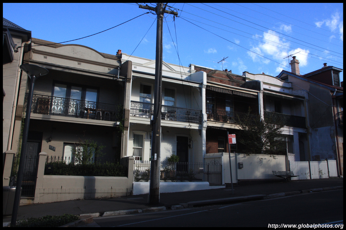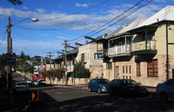 Balmain is surrounded by water. Here in Elkington Park, houses face the Parramatta River and Cockatoo Island in the distance.