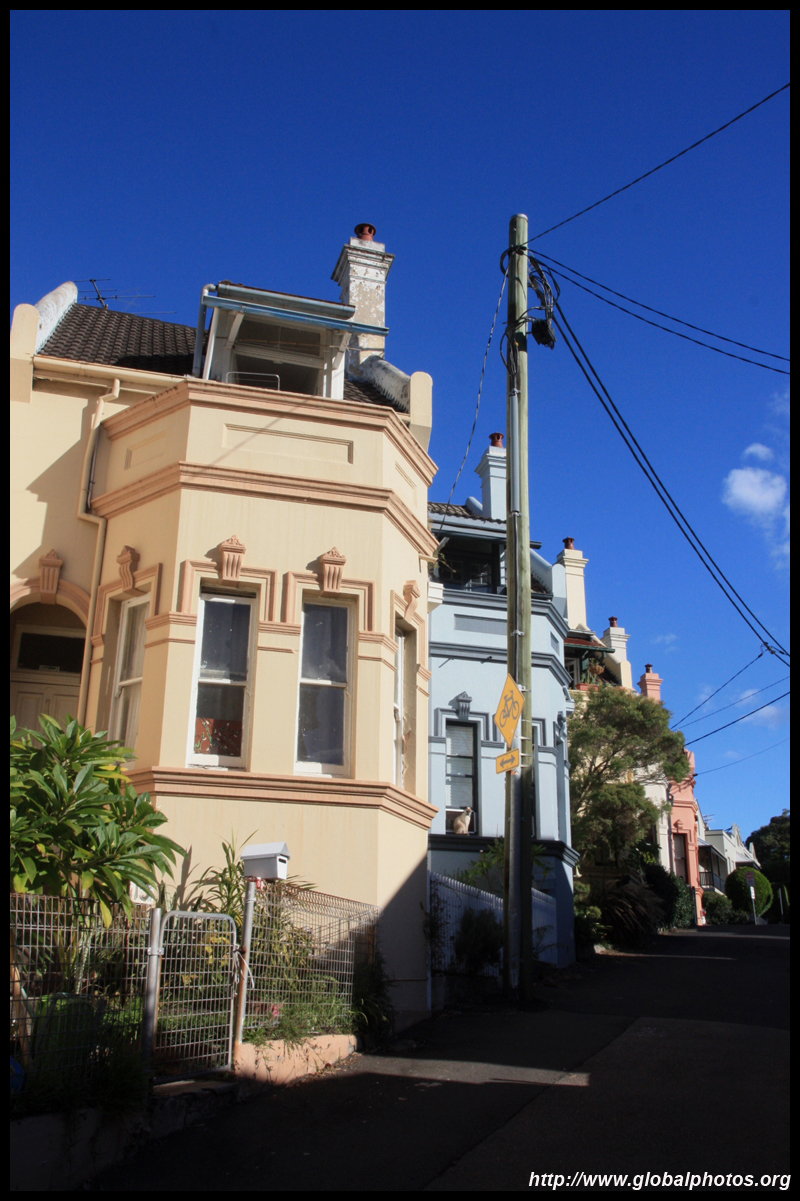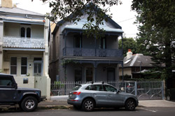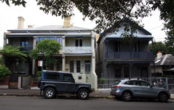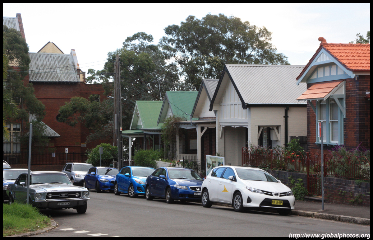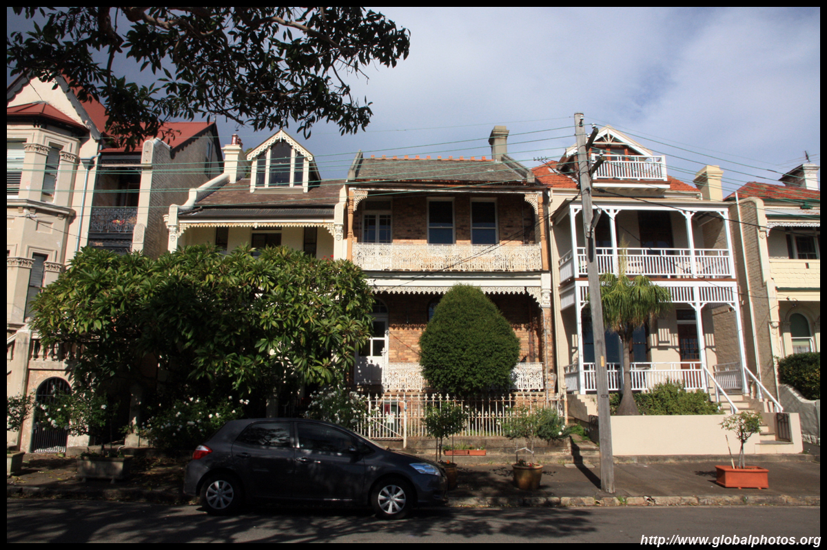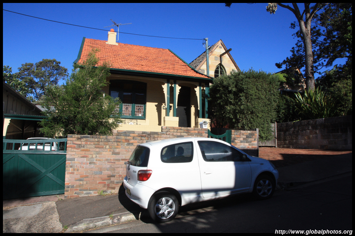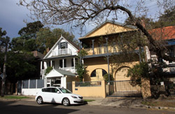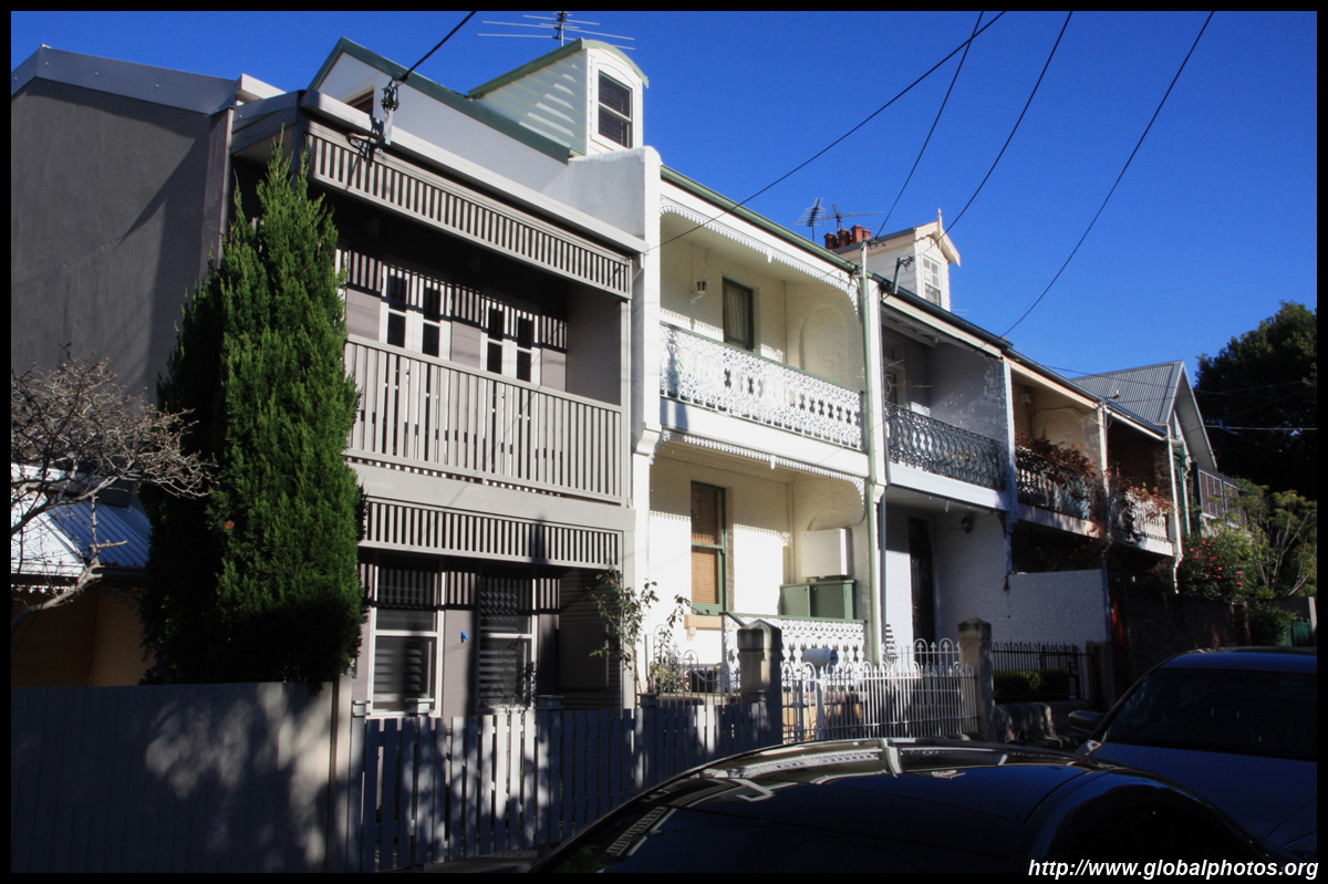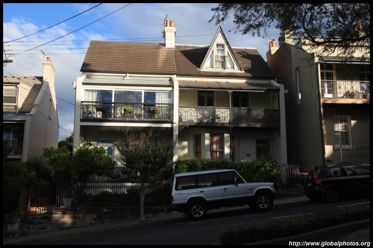Balmain is surrounded by water. Here in Elkington Park, houses face the Parramatta River and Cockatoo Island in the distance.