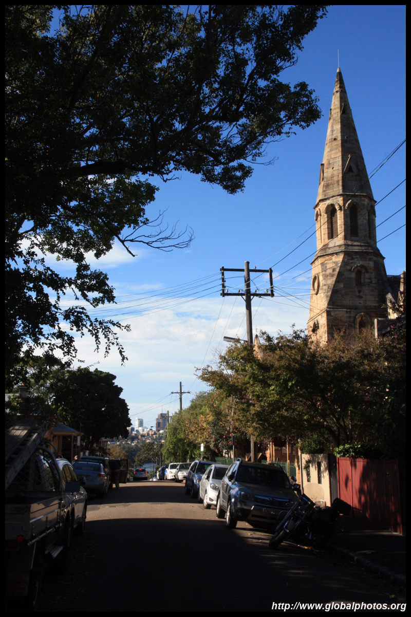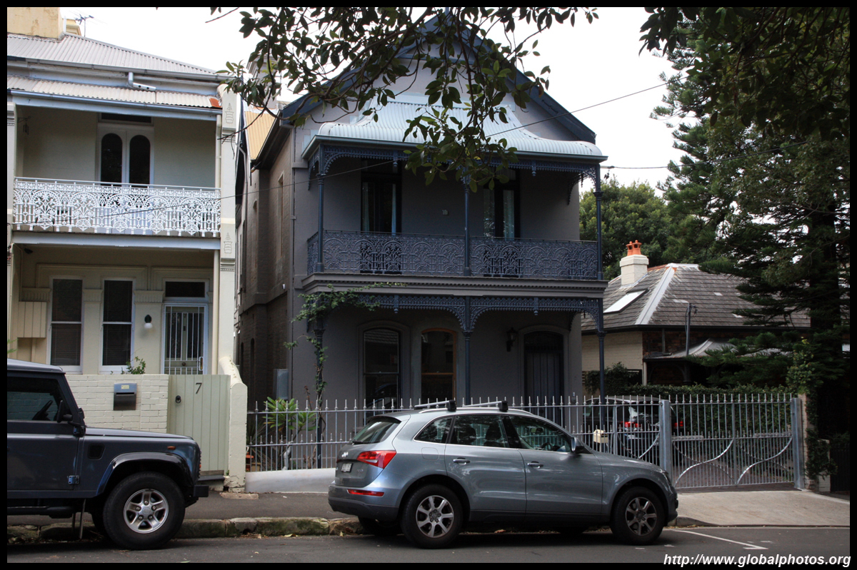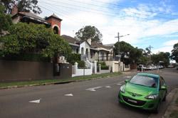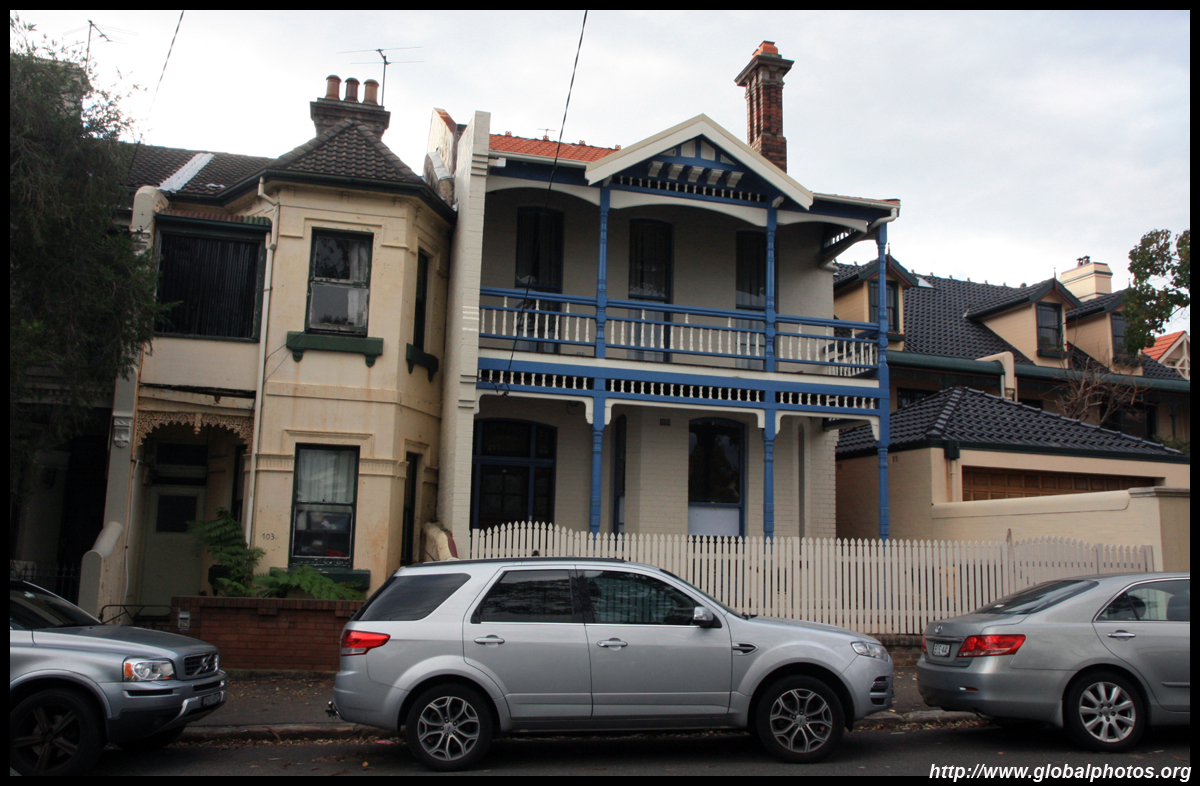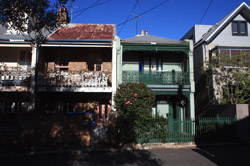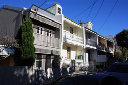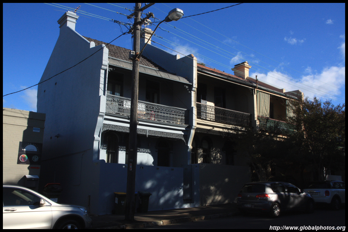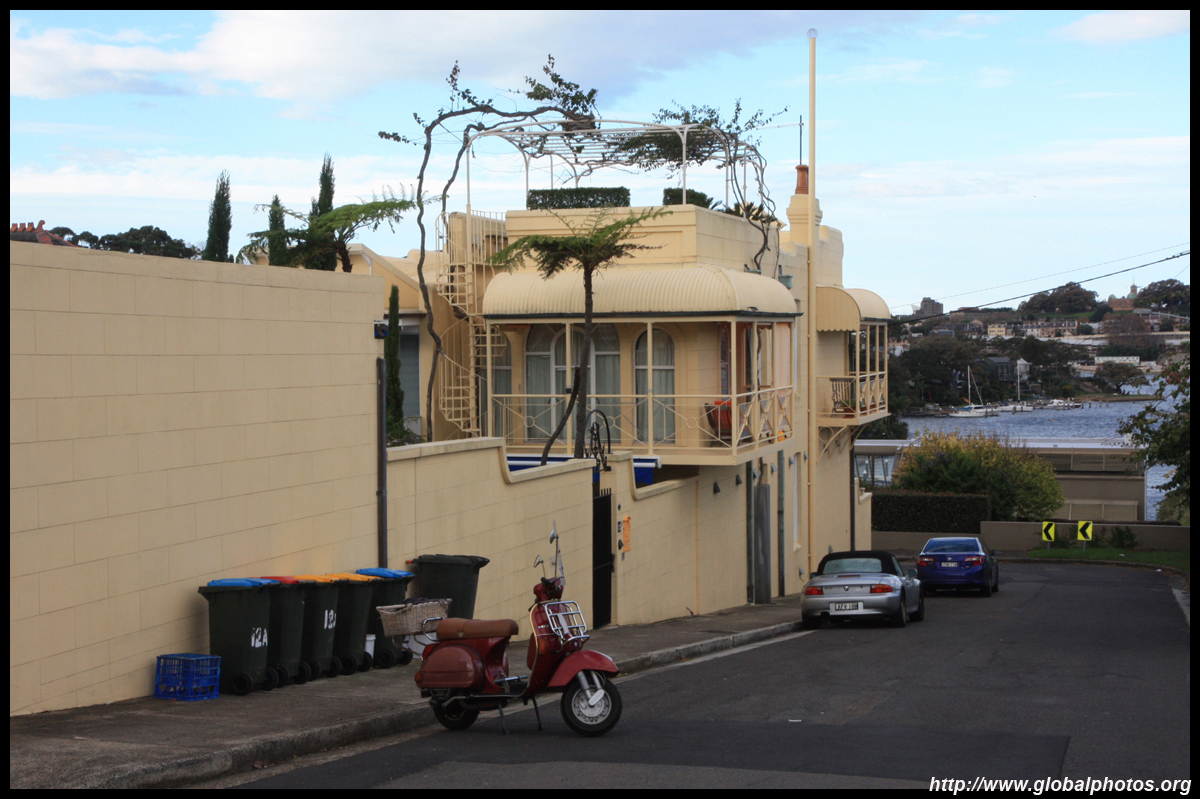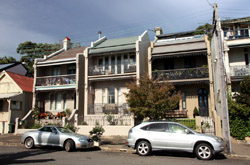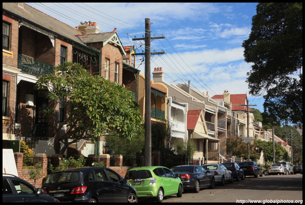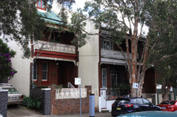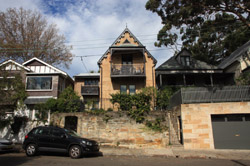 Balmain is surrounded by water. Here in Elkington Park, houses face the Parramatta River and Cockatoo Island in the distance.