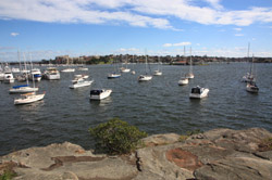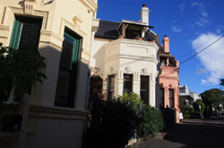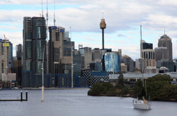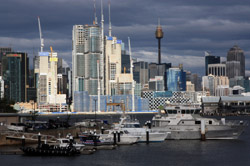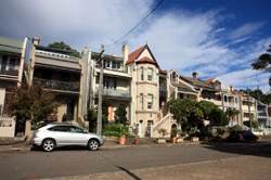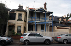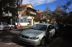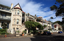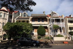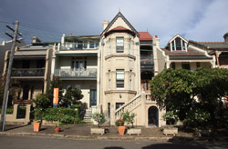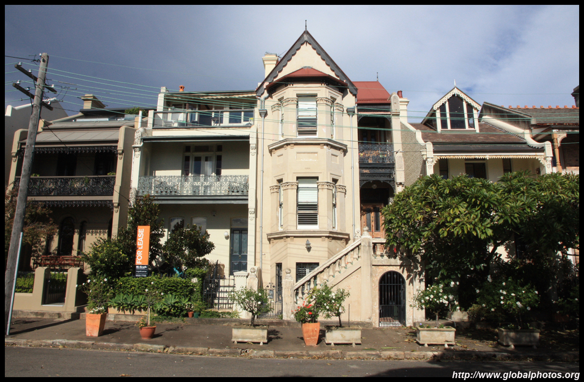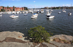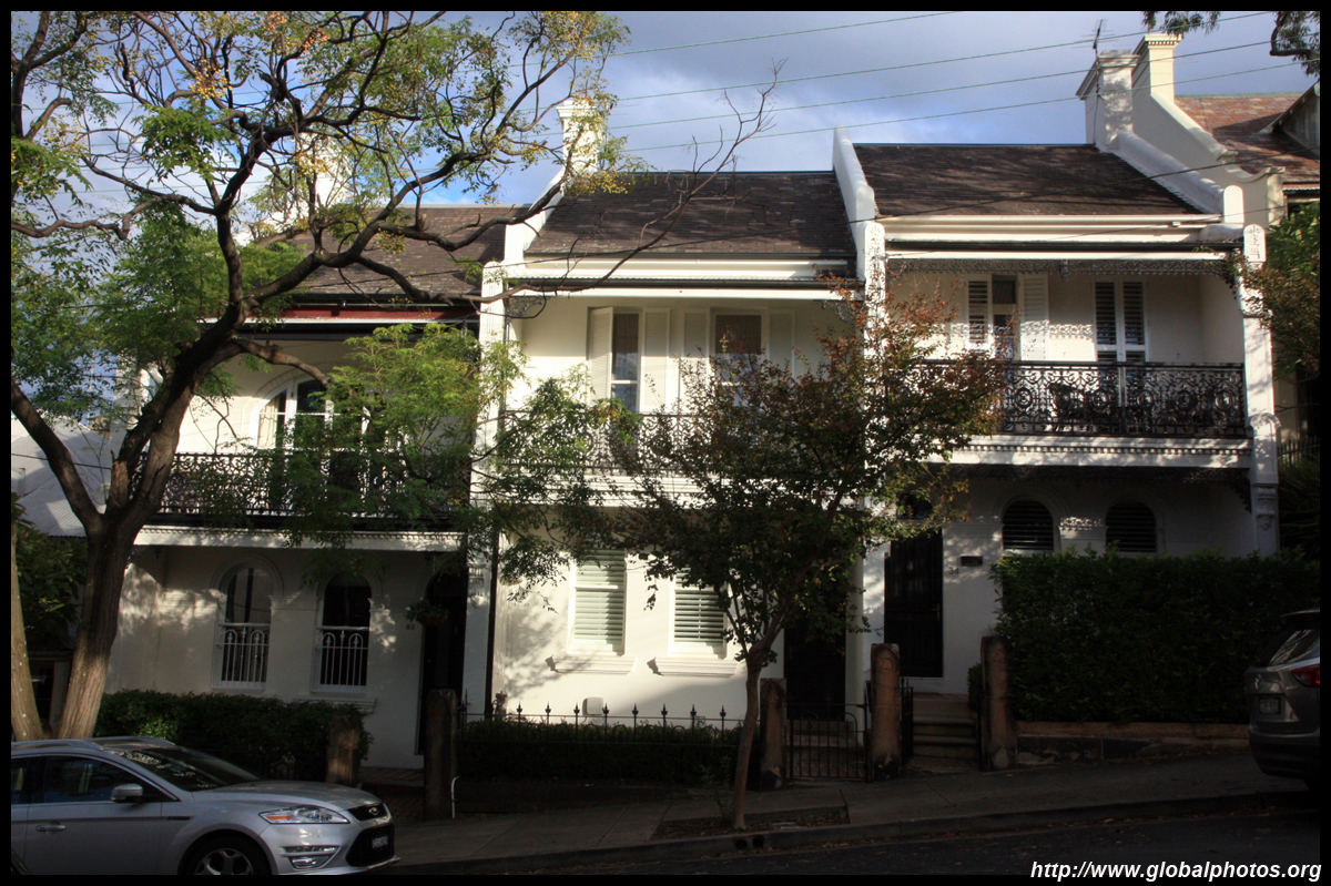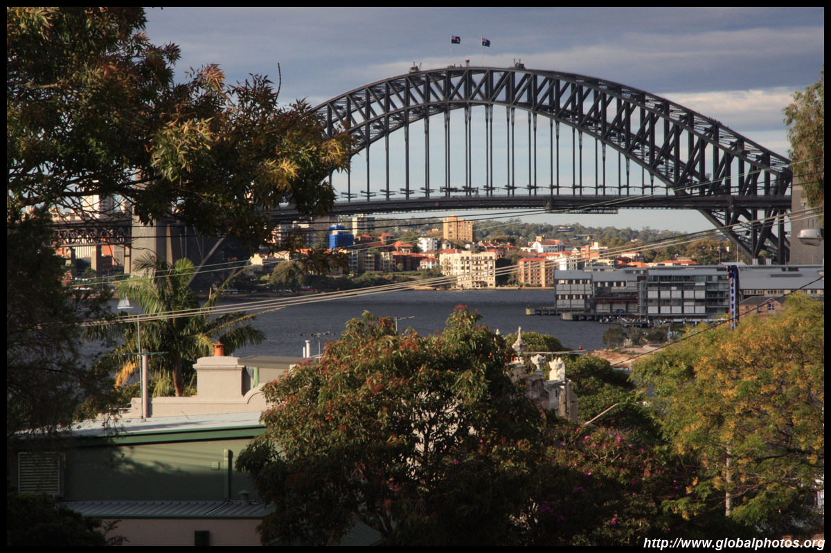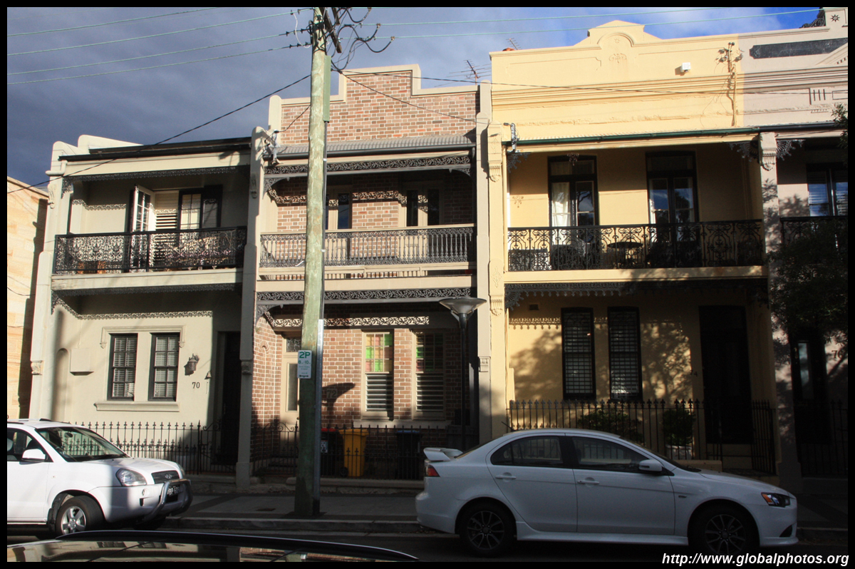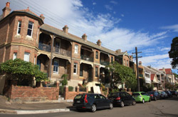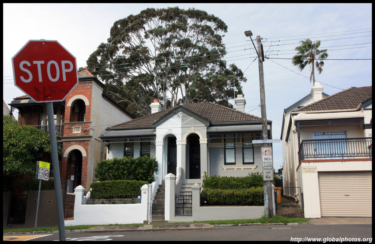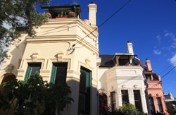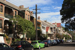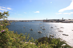 Balmain is surrounded by water. Here in Elkington Park, houses face the Parramatta River and Cockatoo Island in the distance.