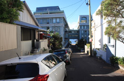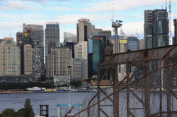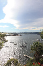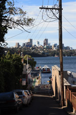 There is a ship repair facility on Mort Bay. Barricaded, it was hard to get a good photo of the ferries. The best I could do was from the rooftop parking lot. Would be great to have a house on here.