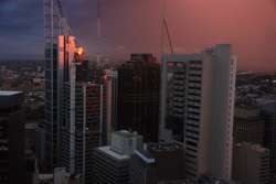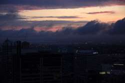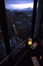 Expecting no sunset views, I focused on my steak for a little while. As the revolving restaurant made its way around at almost the 180-degree mark, the sun peeked out and it was a firery red sunset.